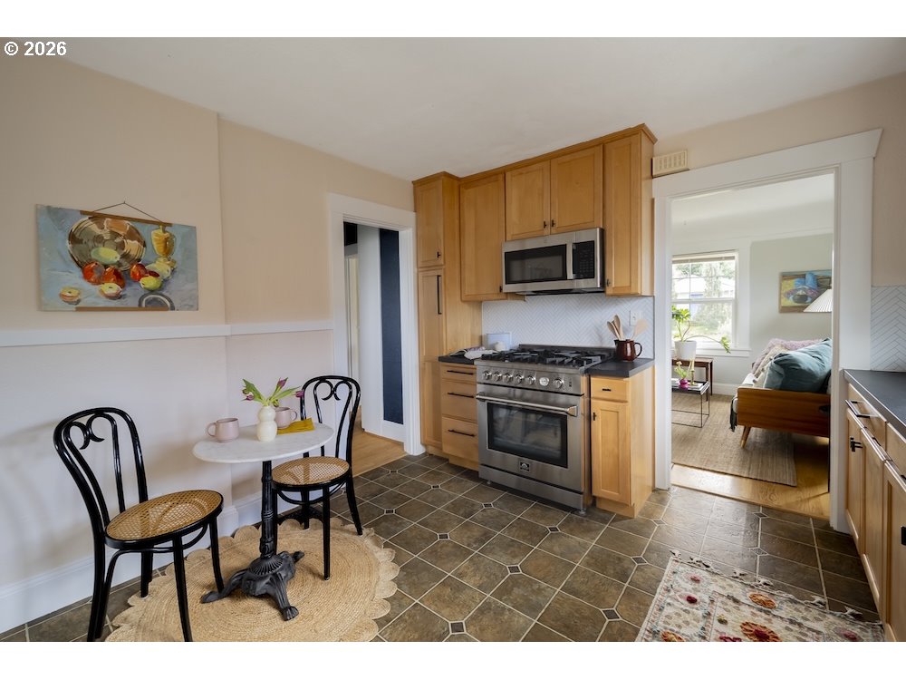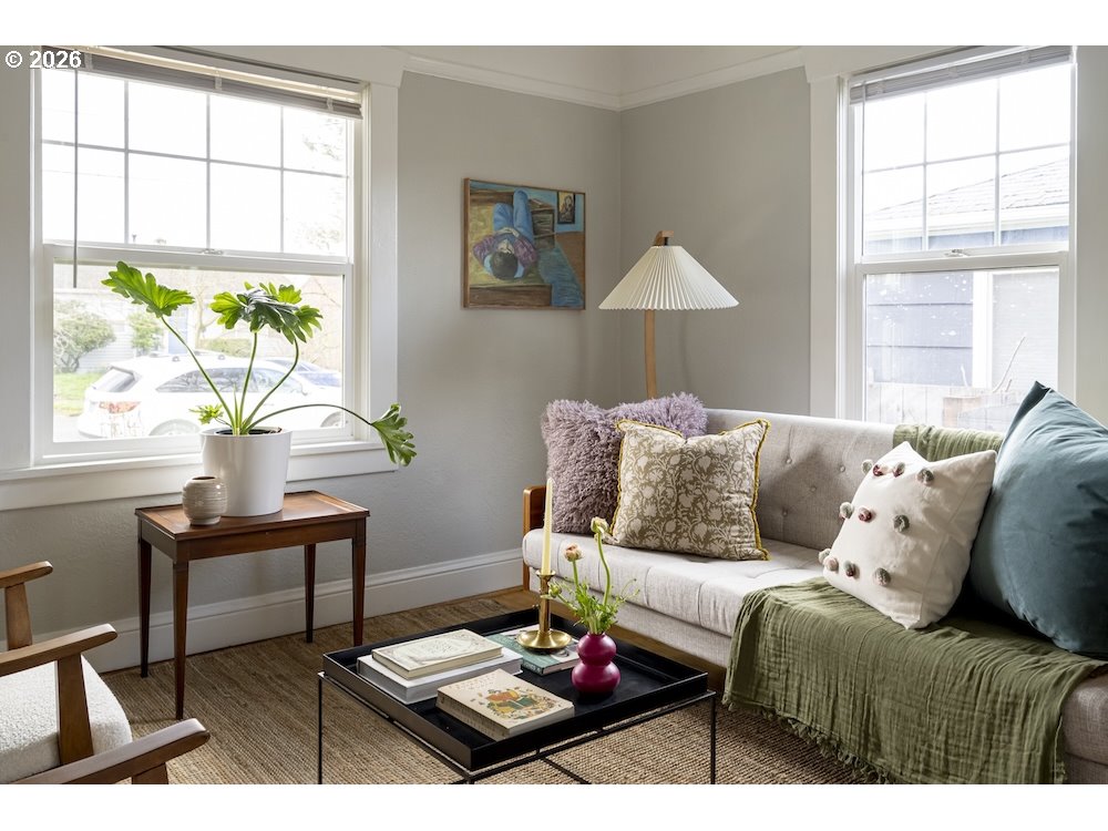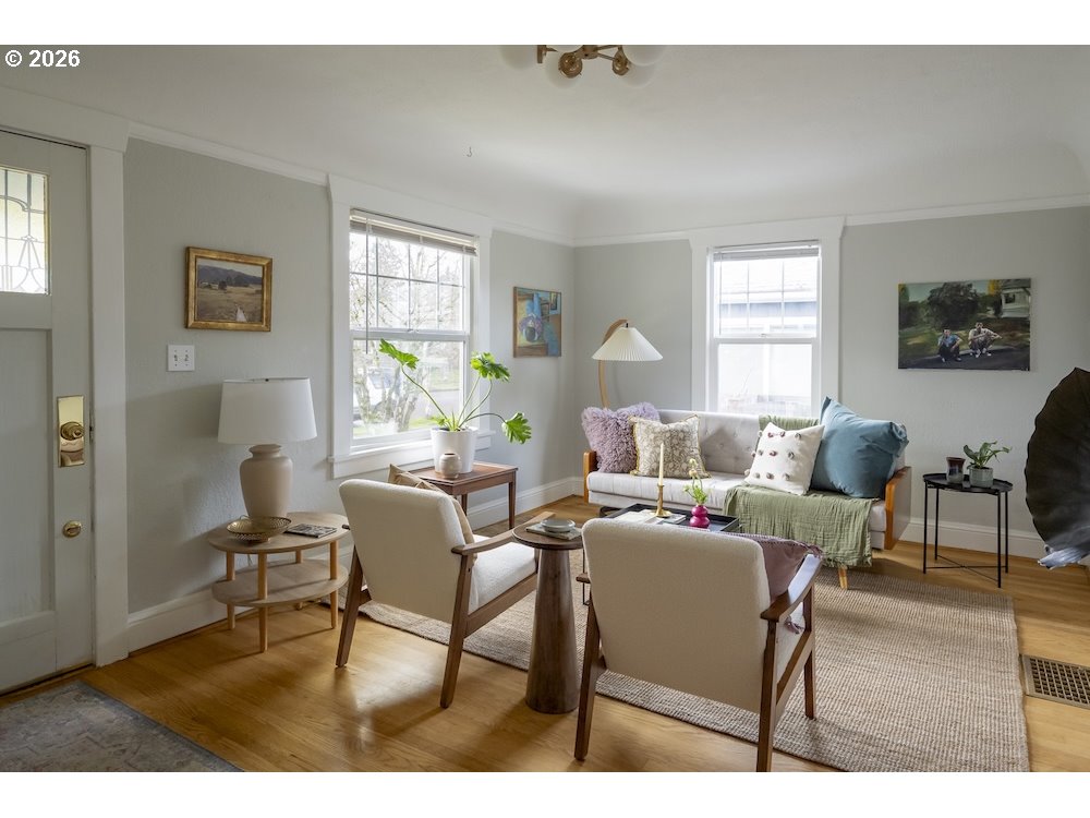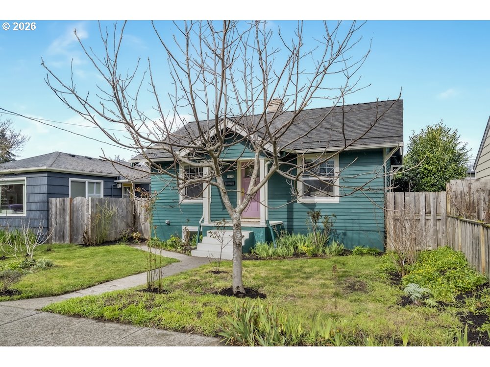 - Classic, cute, and set back from the street with an attractive frontage, this lil' banger of a PDX bungalow is perfectly positioned in a thriving community. Double pane windows let in the lovely light, reflecting off original hardwood floors and infusing the living spaces with a warm, calm atmosphere. Thoughtful attention to flow in the floor plan, and a surprising spaciousness within. The roomy kitchen offers stainless steel appliances, and lots of valuable cabinet space. There's vintage built-ins and hidden nooks that provide welcome pockets of storage throughout. Two inviting bedrooms on the main level, and a full bath as well. Downstairs, another bedroom for guests or creative pursuits, a handy half bath, laundry, and a very spacious family room that could transform your movie nights, or become a dream studio. The newer, fully fenced backyard is a perfect retreat from the world, and ready for your dog's best life. And how lucky are you to inherit the maturing wealth of established produce? Rainier cherry, Honeycrisp apple, plum...the entire fruit salad, all at your fingertips. A detached 1-car garage is great for secure parking, plus there's extra adjoining off-street parking for contractors (and longer visits by camper van besties). Set in the popular Mt. Scott-Arleta neighborhood - on the very cusp of Woodstock - and close to parks, schools, Heist food cart pod, and all the restaurant rows of SE Portland, you'll fit in perfectly here. [Home Energy Score = 7. HES Report at https://rpt.greenbuildingregistry.com/hes/OR10113682]