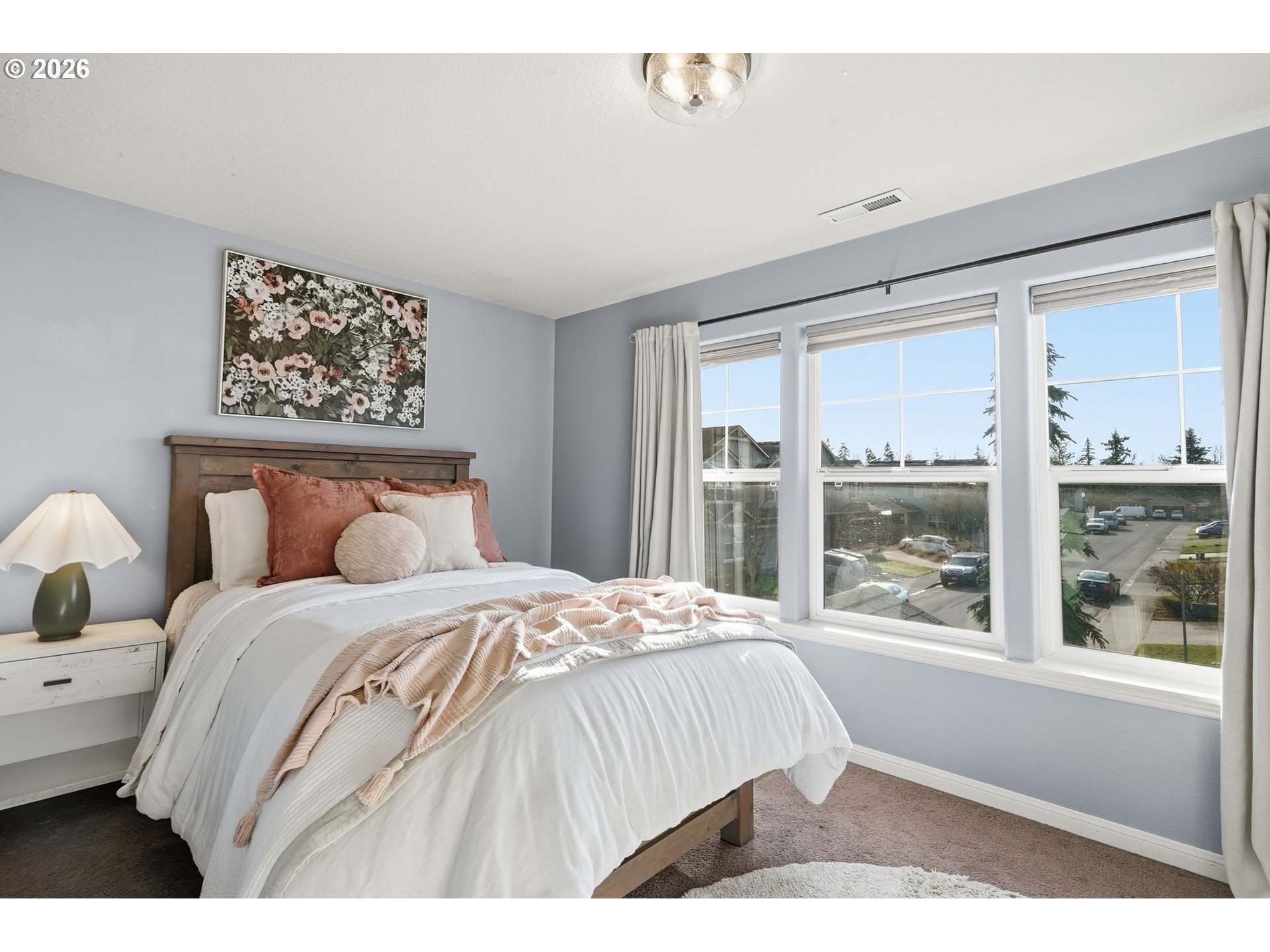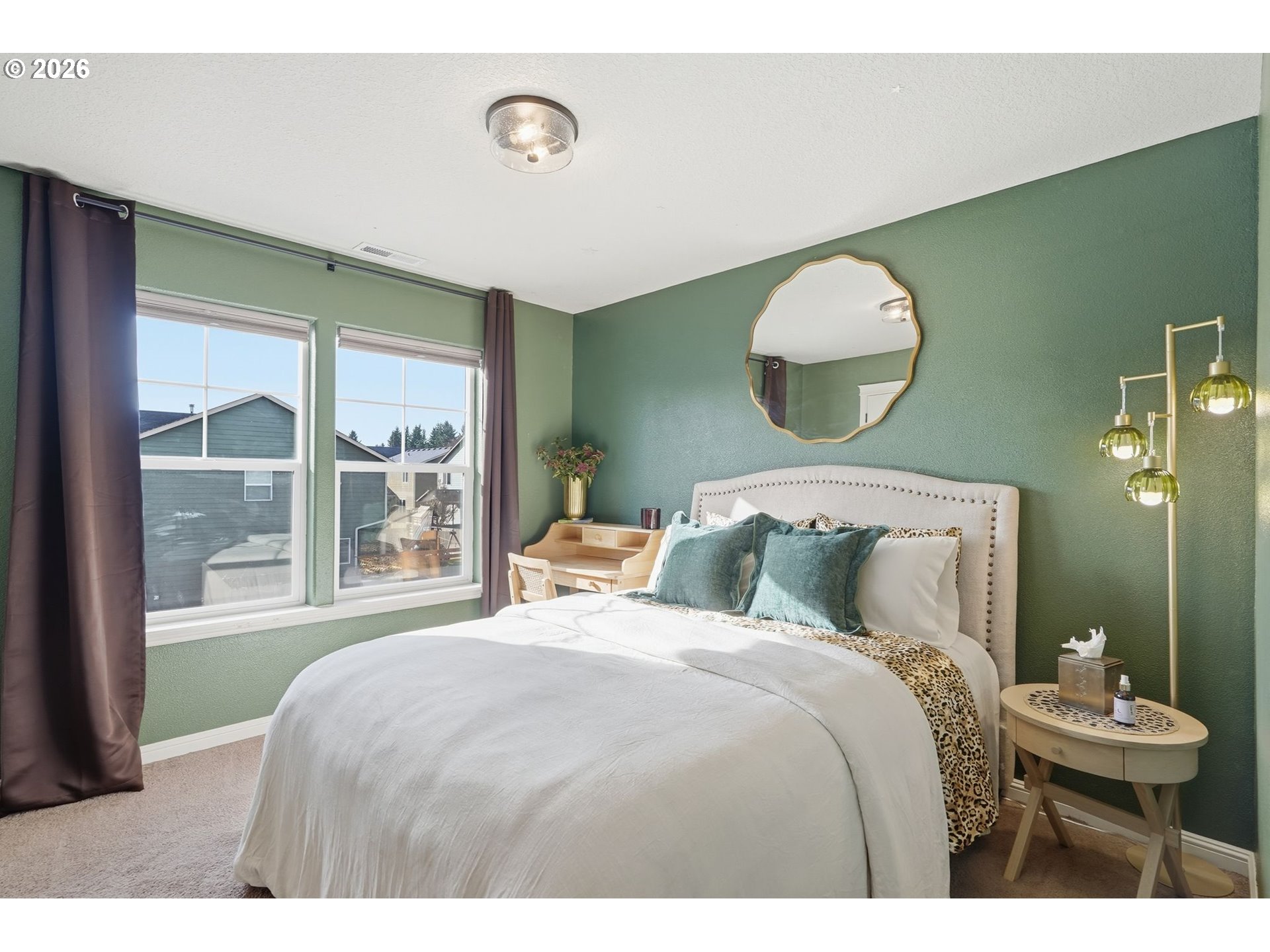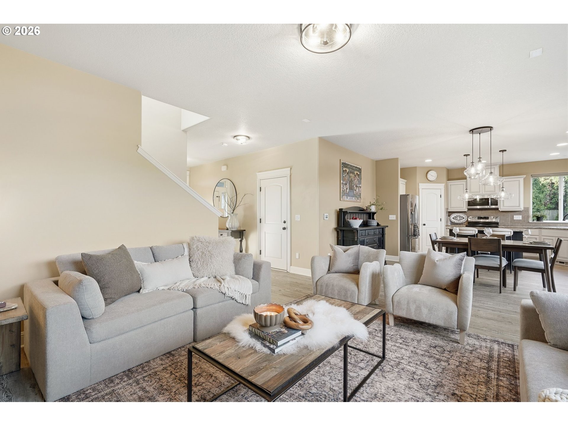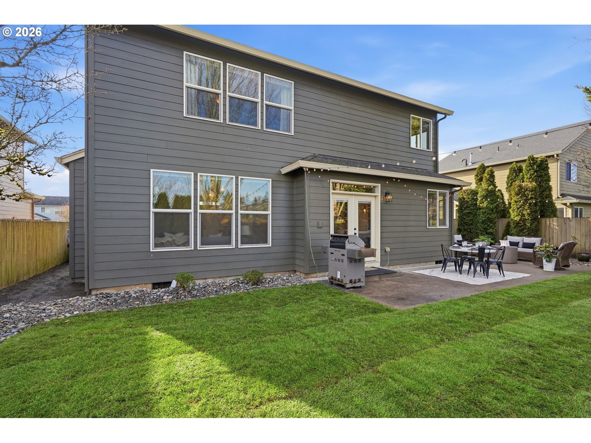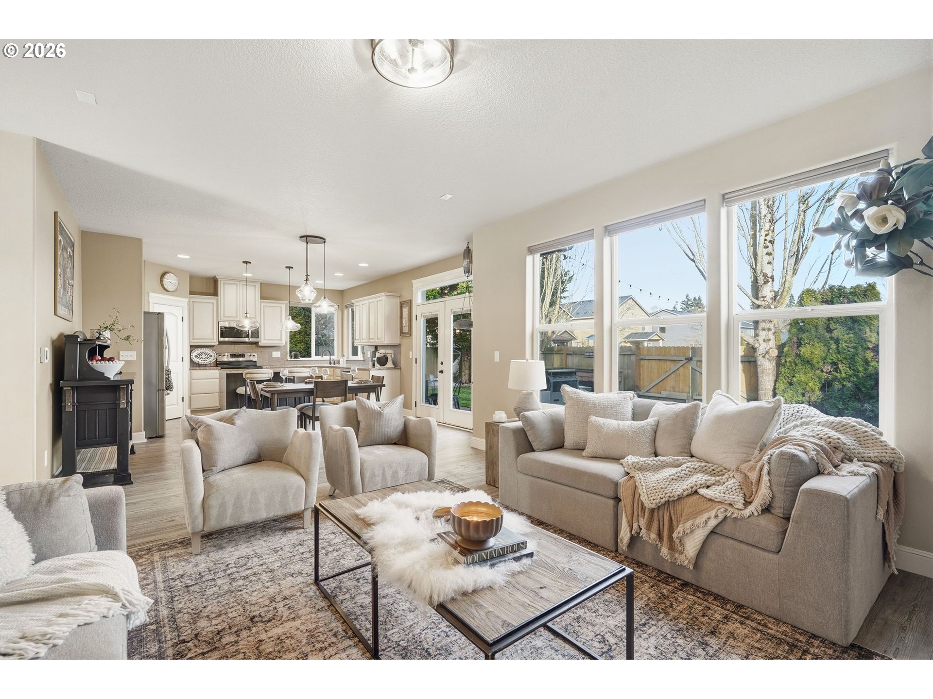 - Located in the desirable Village on the Glen neighborhood, this thoughtfully designed home offers flexible living spaces, access to outdoor amenities, and a convenient central location. Less than 20 minutes to PDX Airport and approximately 10 minutes to WSU Vancouver, with easy access to shopping, dining, and major commuter routes.The floor plan includes three bedrooms plus a den with a closet, offering the potential for a fourth bedroom, along with 2.5 bathrooms. The kitchen features newer stainless steel appliances, custom cabinetry, a large island, and a walk-in pantry, providing ample storage. French doors off the dining area open to a freshly landscaped backyard, ideal for gatherings and everyday enjoyment. The property also includes private gated access to an expansive green space with walking trails.Upstairs, double doors lead to the primary bedroom with an ensuite bathroom featuring dual vanities, a corner soaking tub, and a large walk-in closet with built-ins. Two additional bedrooms and a generously sized laundry room complete the upper level.An oversized three-car garage includes built-in shelving and a large storage loft in the third bay, offering exceptional storage options. The home is equipped with a central vacuum system throughout, including the kitchen, as well as a green UV air purification system in the air ducts for healthy living. Professionally designed interiors allow for the option to purchase the home fully furnished at an additional cost. Seller to provide a flooring allowance. Priced to sell at $575,000.