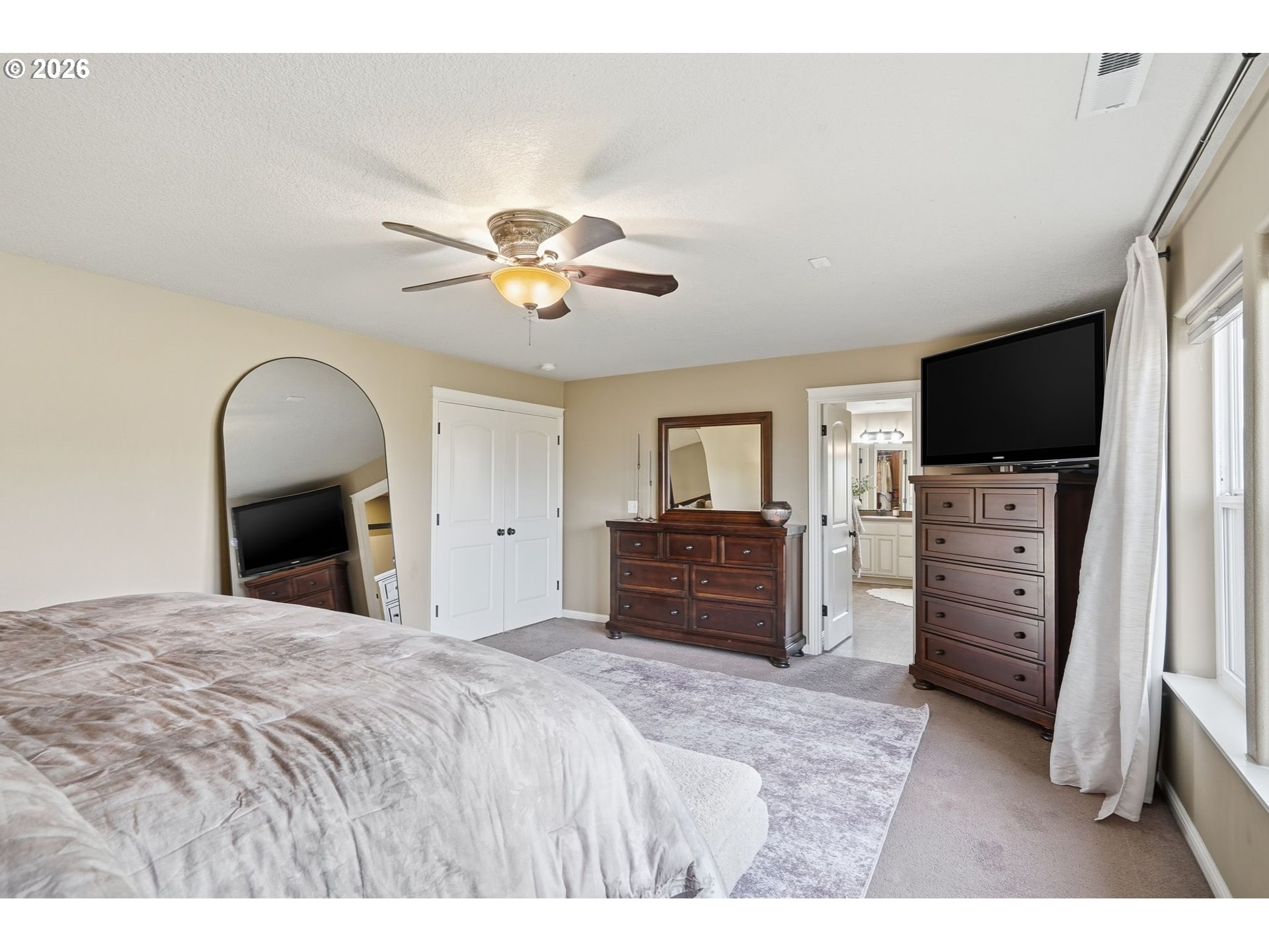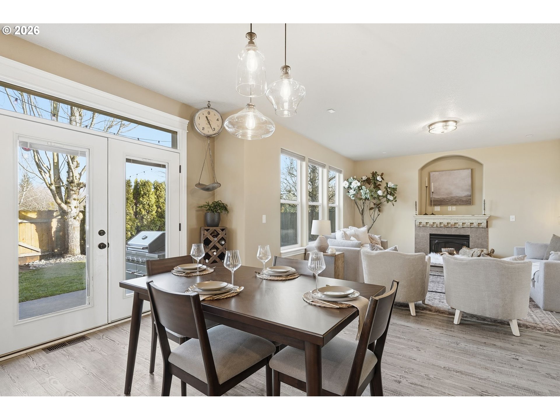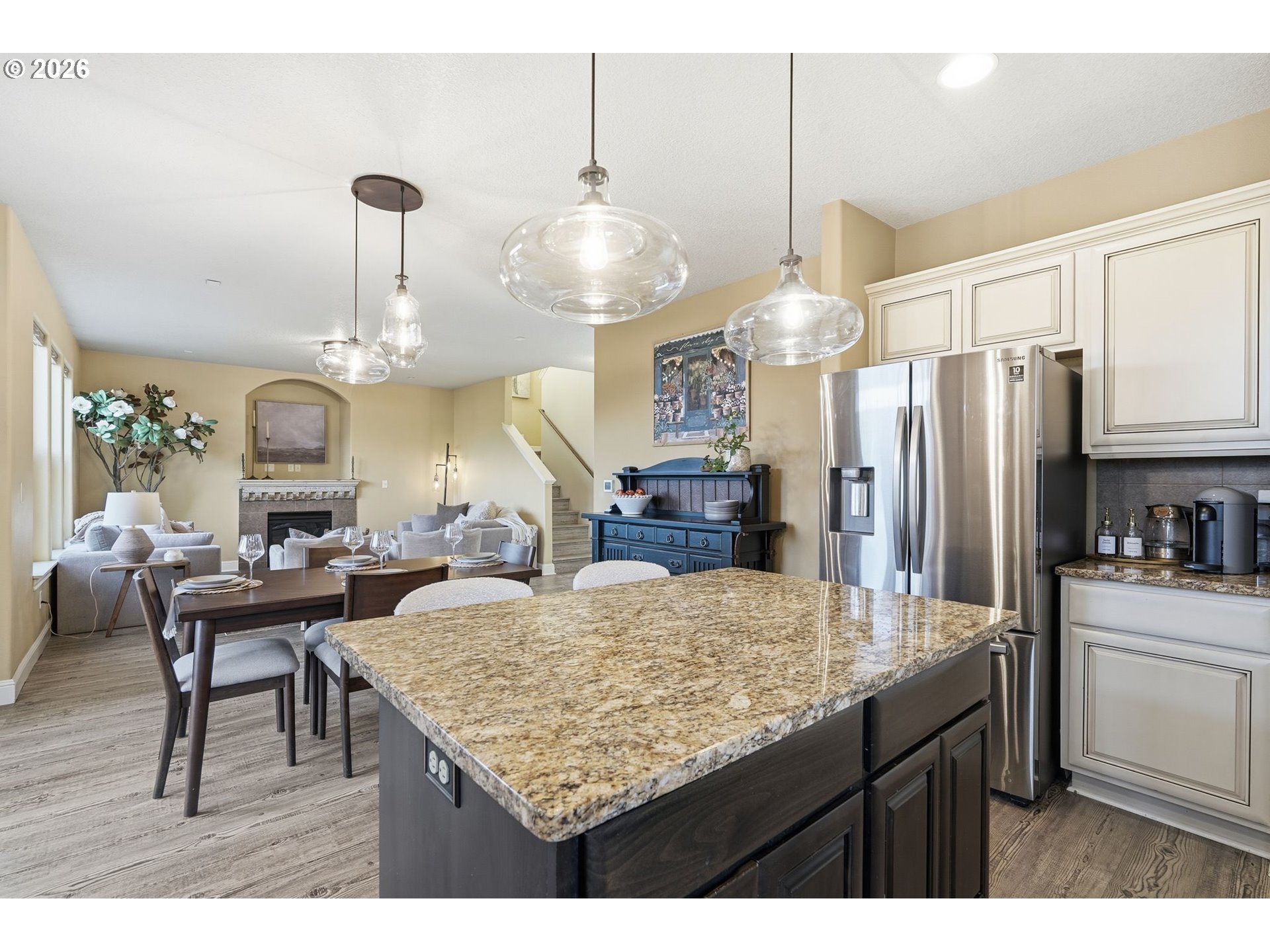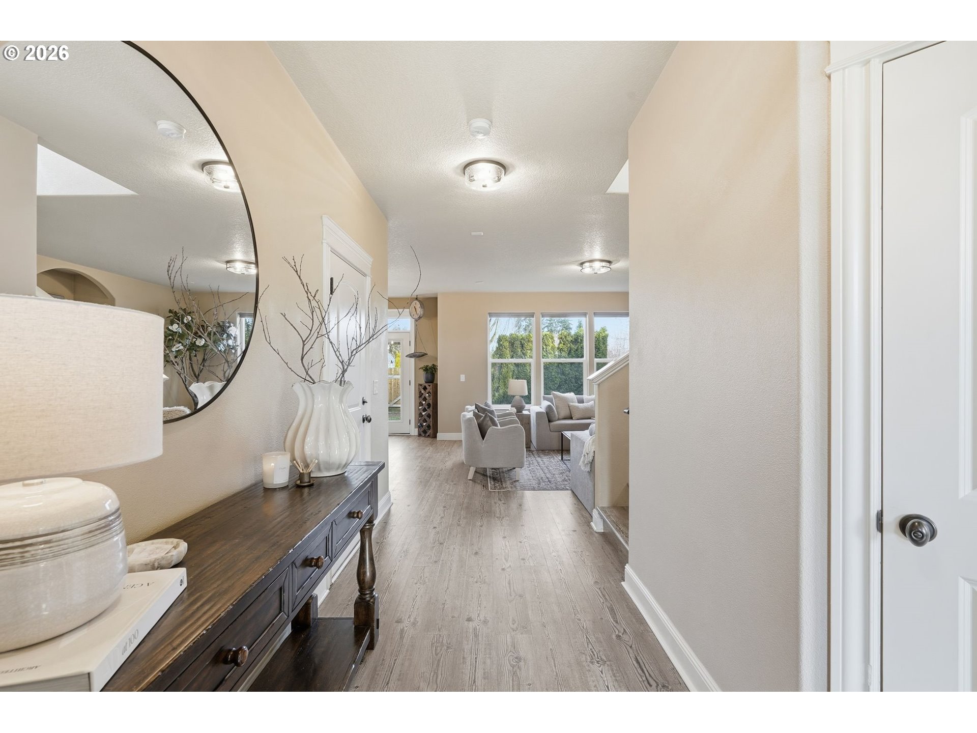 - Located in the desirable Village on the Glen neighborhood, this thoughtfully designed home offers flexible living spaces, access to outdoor amenities, and a convenient central location. Less than 20 minutes to PDX Airport and approximately 10 minutes to WSU Vancouver, with easy access to shopping, dining, and major commuter routes.The floor plan includes three bedrooms plus a den with a closet, offering the potential for a fourth bedroom, along with 2.5 bathrooms. The kitchen features newer stainless steel appliances, custom cabinetry, a large island, and a walk-in pantry, providing ample storage. French doors off the dining area open to a freshly landscaped backyard, ideal for gatherings and everyday enjoyment. The property also includes private gated access to an expansive green space with walking trails.Upstairs, double doors lead to the primary bedroom with an ensuite bathroom featuring dual vanities, a corner soaking tub, and a large walk-in closet with built-ins. Two additional bedrooms and a generously sized laundry room complete the upper level.An oversized three-car garage includes built-in shelving and a large storage loft in the third bay, offering exceptional storage options. The home is equipped with a central vacuum system throughout, including the kitchen, as well as a green UV air purification system in the air ducts for healthy living. Professionally designed interiors allow for the option to purchase the home fully furnished at an additional cost. Seller to provide a flooring allowance. Priced to sell at $575,000.