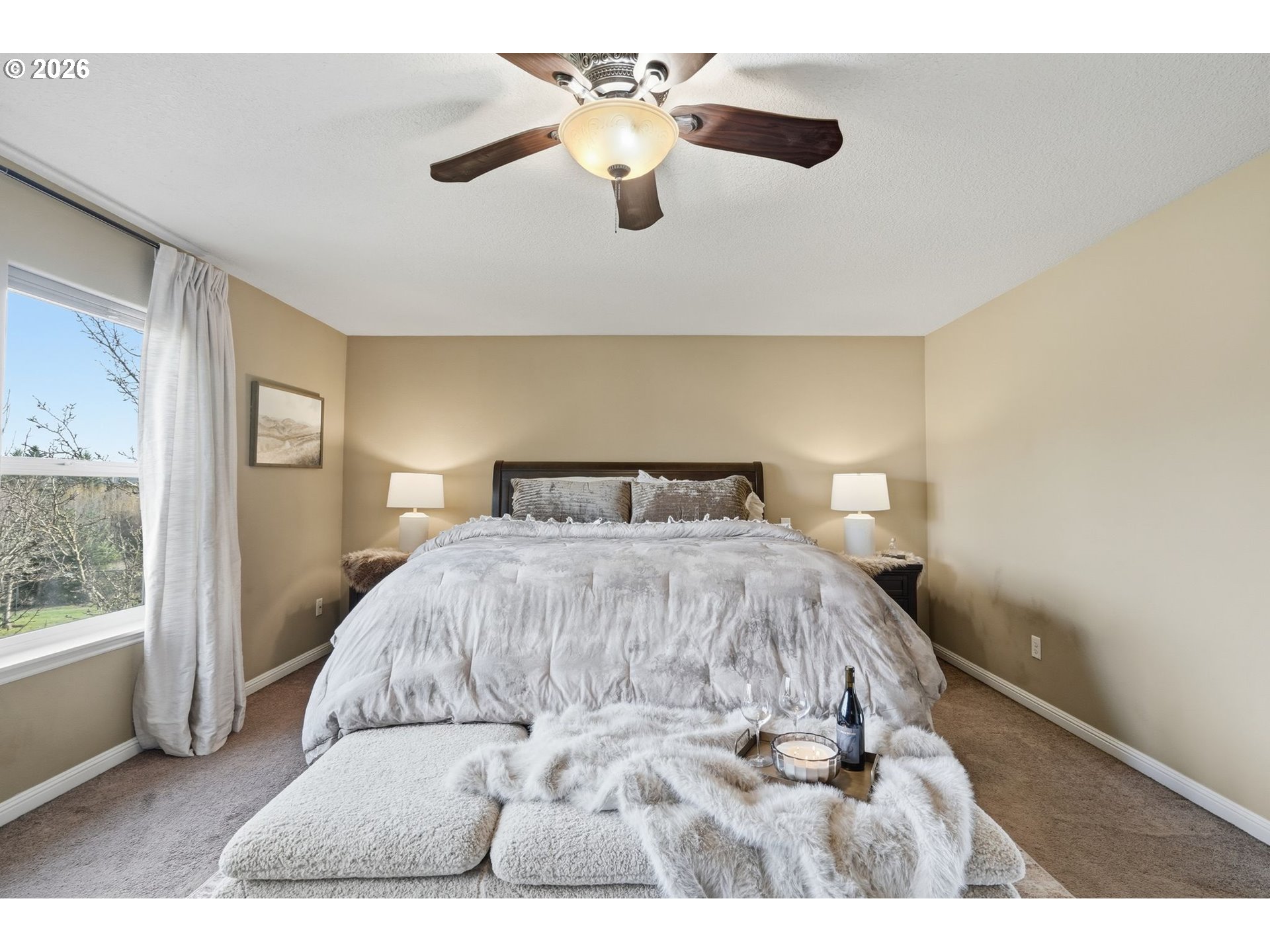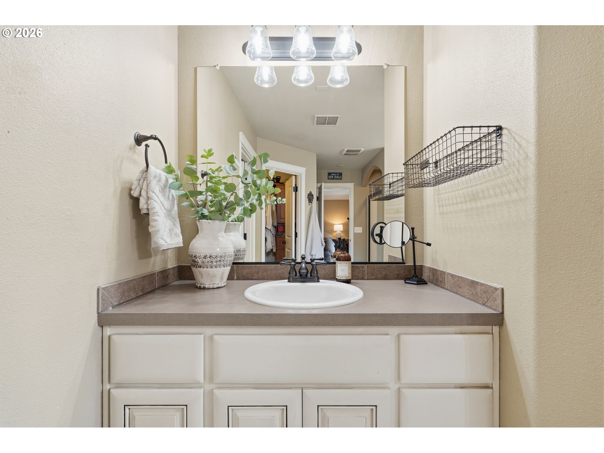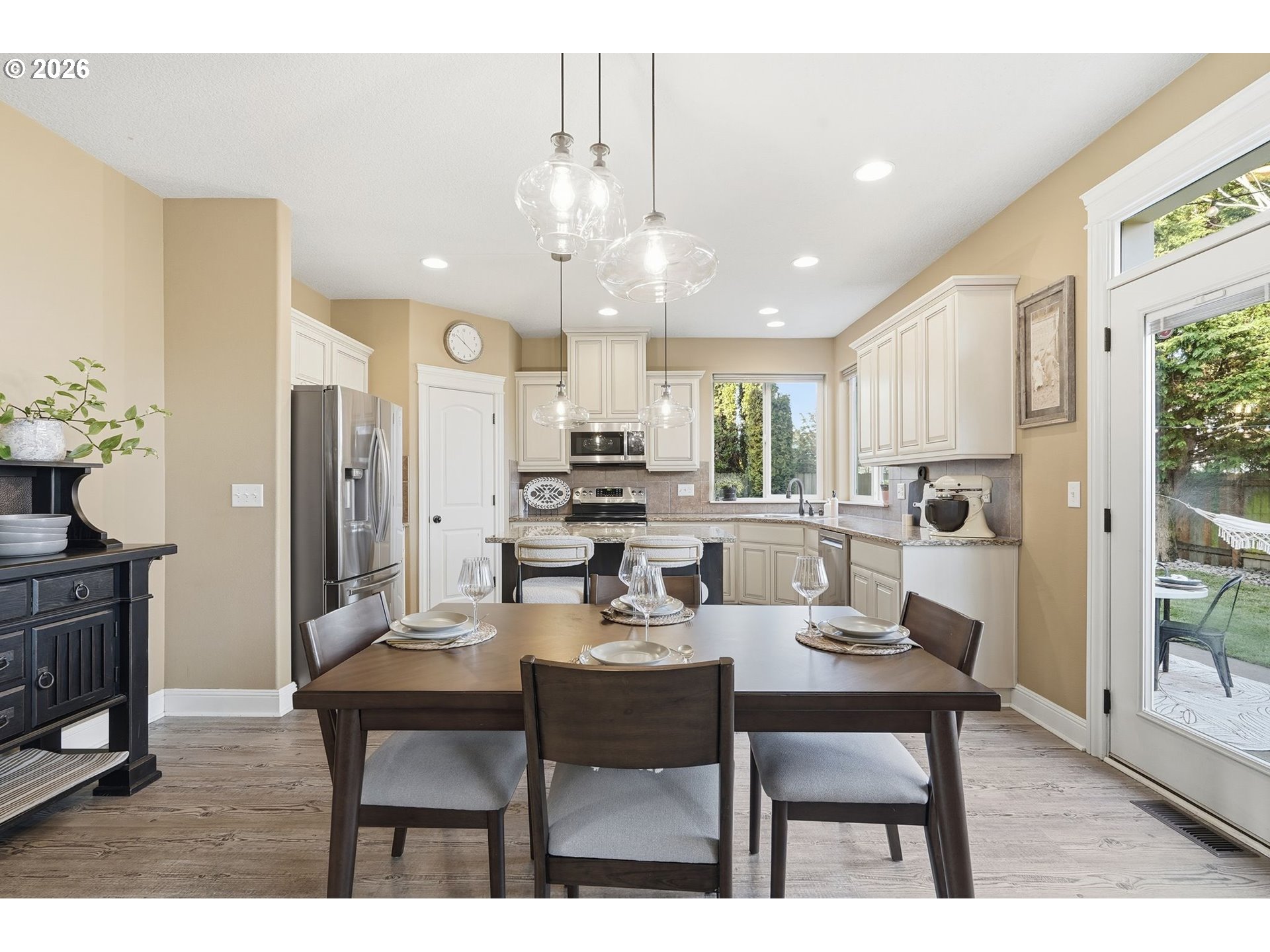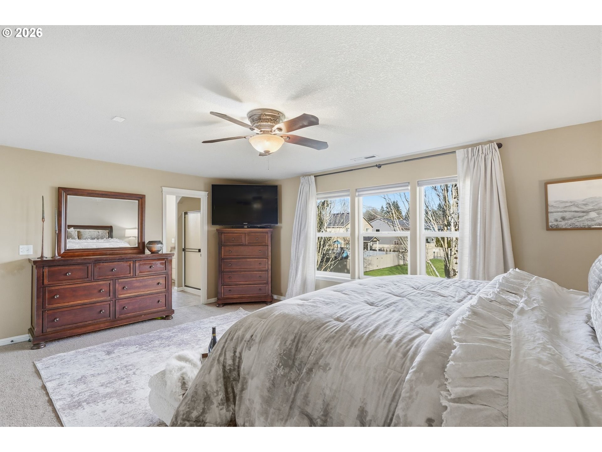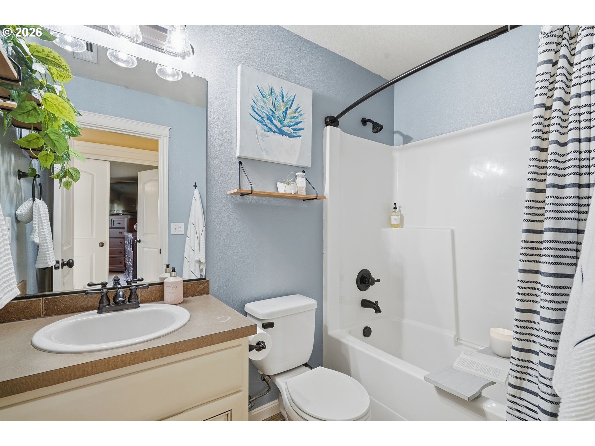 - Located in the desirable Village on the Glen neighborhood, this thoughtfully designed home offers flexible living spaces, access to outdoor amenities, and a convenient central location. Less than 20 minutes to PDX Airport and approximately 10 minutes to WSU Vancouver, with easy access to shopping, dining, and major commuter routes.The floor plan includes three bedrooms plus a den with a closet, offering the potential for a fourth bedroom, along with 2.5 bathrooms. The kitchen features newer stainless steel appliances, custom cabinetry, a large island, and a walk-in pantry, providing ample storage. French doors off the dining area open to a freshly landscaped backyard, ideal for gatherings and everyday enjoyment. The property also includes private gated access to an expansive green space with walking trails.Upstairs, double doors lead to the primary bedroom with an ensuite bathroom featuring dual vanities, a corner soaking tub, and a large walk-in closet with built-ins. Two additional bedrooms and a generously sized laundry room complete the upper level.An oversized three-car garage includes built-in shelving and a large storage loft in the third bay, offering exceptional storage options. The home is equipped with a central vacuum system throughout, including the kitchen, as well as a green UV air purification system in the air ducts for healthy living. Professionally designed interiors allow for the option to purchase the home fully furnished at an additional cost. Seller to provide a flooring allowance. Priced to sell at $575,000.