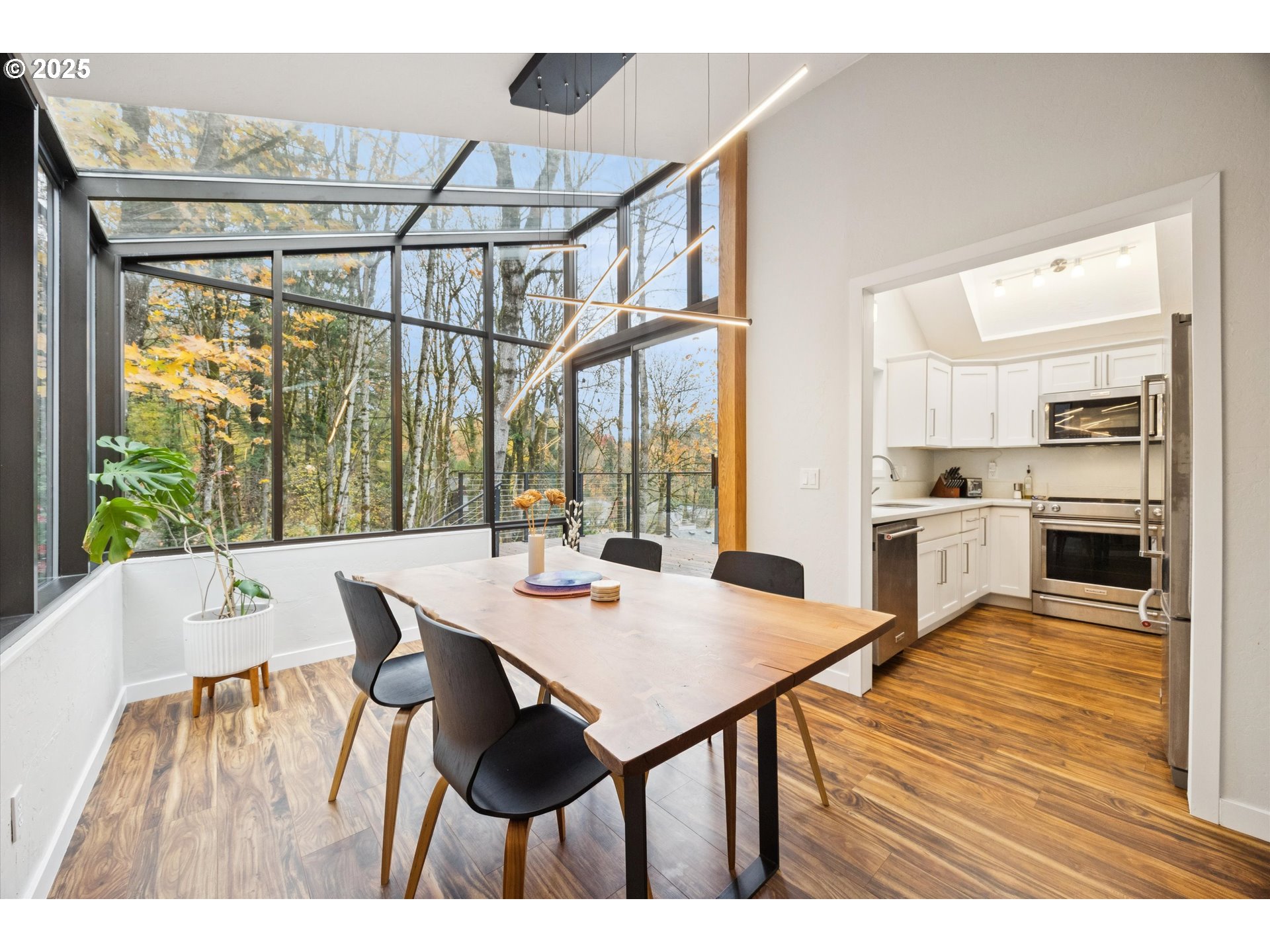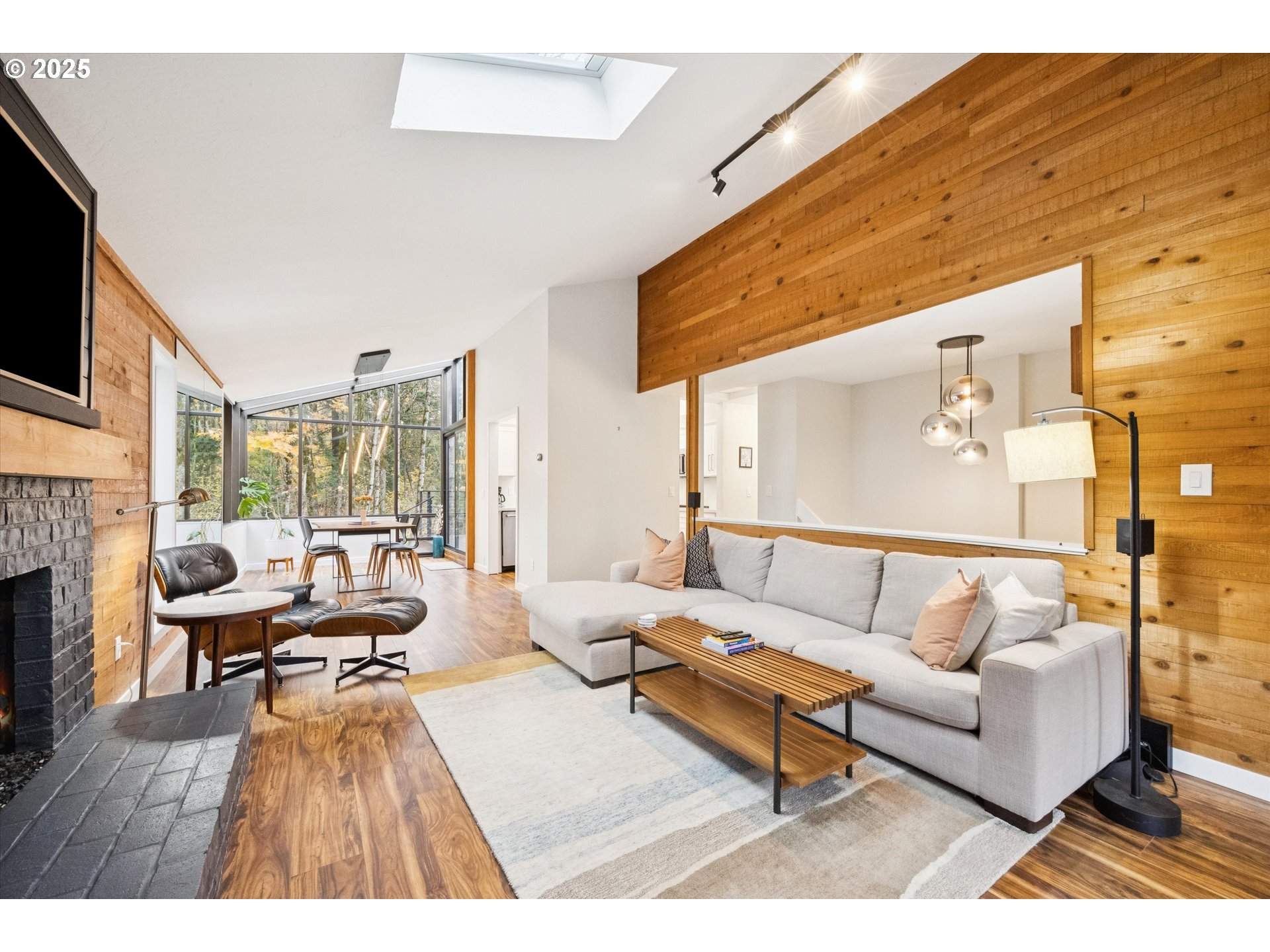 - Architectural Digest–worthy mid-century modern home in desirable Lake Oswego! Nestled among the trees, this beautifully updated 3-bedroom, 2-bath residence offers elevated modern living with a primary bedroom on the main level and serene forest views. Renovated with style and function in mind, the home features quartz countertops in the kitchen and bathrooms, new engineered hardwoods, new carpet, new furnace and A/C, and fresh interior trim on the main floor.Expansive walls of windows flood the space with natural light. Enjoy true indoor–outdoor living with two large decks that flow into a private setting complete with a hot tub and fire pit, creating an inviting atmosphere perfect for relaxing or entertaining.Located in the coveted Mountain Park community, residents enjoy access to the Mountain Park Recreation Center with gym and pool. This home shows beautifully inside and out!