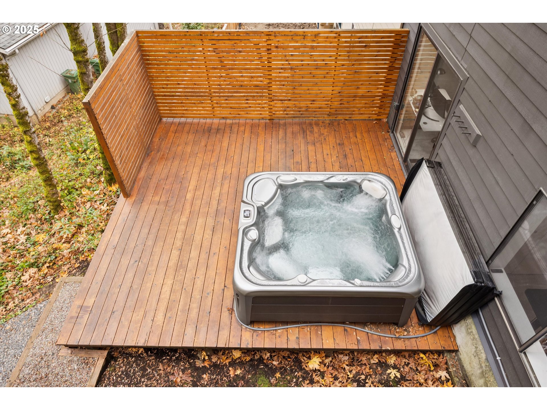 - Deck, Fire Pit, Free-Standing Hot Tub, Raised Beds
