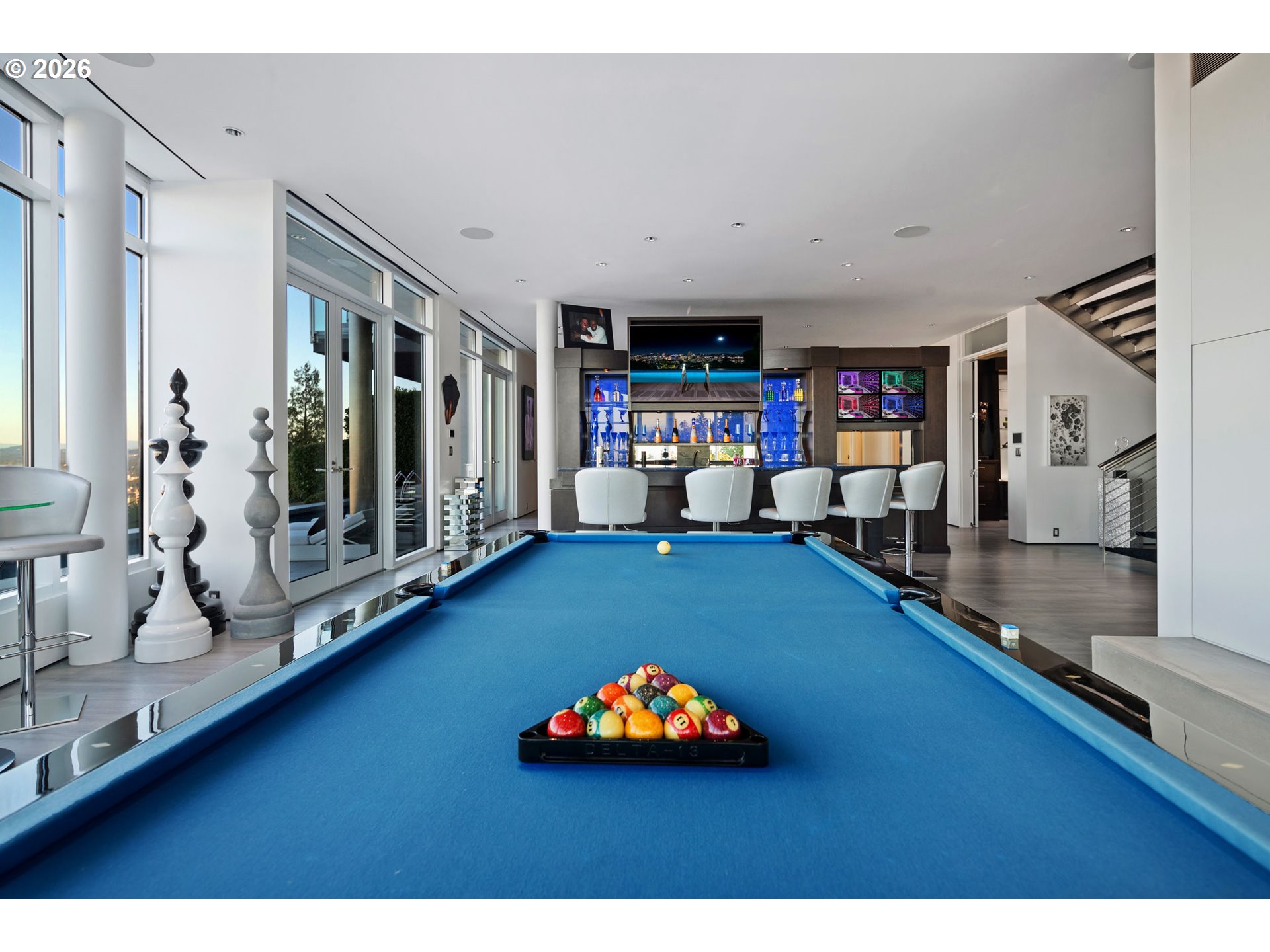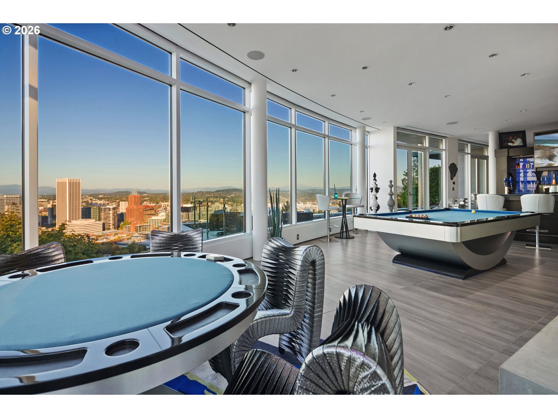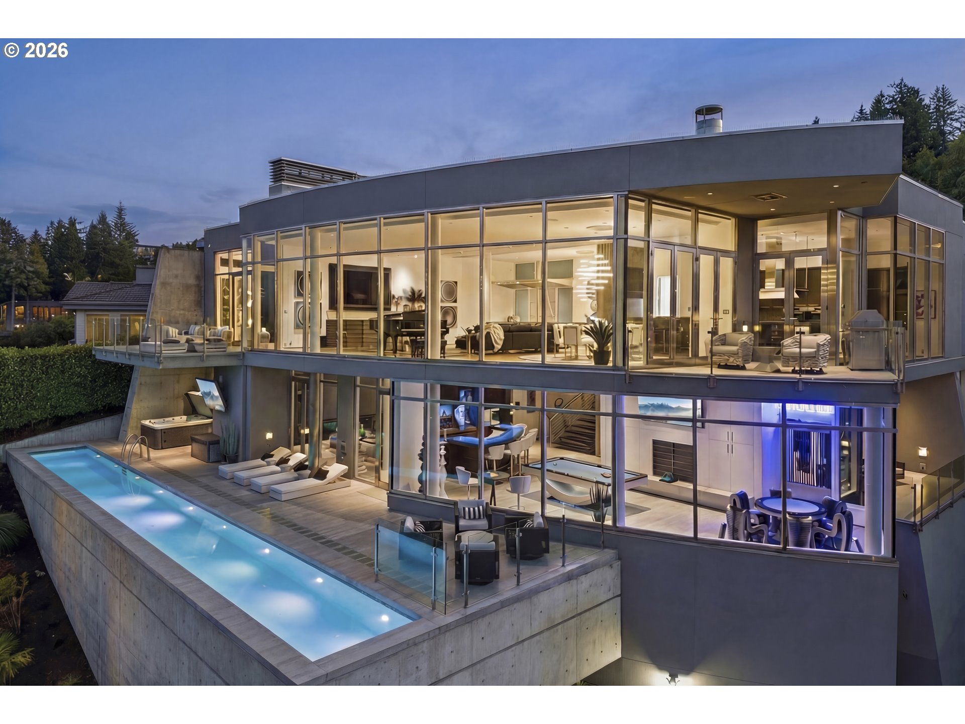 - Perched high above Portland with one of the city’s most commanding panoramas, this Iconic ultra-modern masterpiece designed by renowned architect Bob Thompson delivers an epic blend of architecture, light, and cinematic indoor/outdoor living. Walls of glass capture a sweeping 270-degree view of the skyline, river, and the Cascade mountain range, while multiple terraces, a dramatic 75-foot lap pool, and refined contemporary interiors create a lifestyle centered on spectacle and serenity. Nearly 7,300 square feet of meticulously updated living space offer grand entertaining areas, a luxe main-level suite, a chef’s kitchen with Italian stone and Arclinea cabinetry, and resort-style amenities including a screening room, multi-level elevator, 3 car garage with a bar/TV with a oversized level and gated motor court, wine lounge, gym, and game room. With a seven-figure investment in recent upgrades, this home stands as one of Portland’s most extraordinary, view-driven offerings and an unmatched opportunity for buyers seeking a truly iconic vantage point.