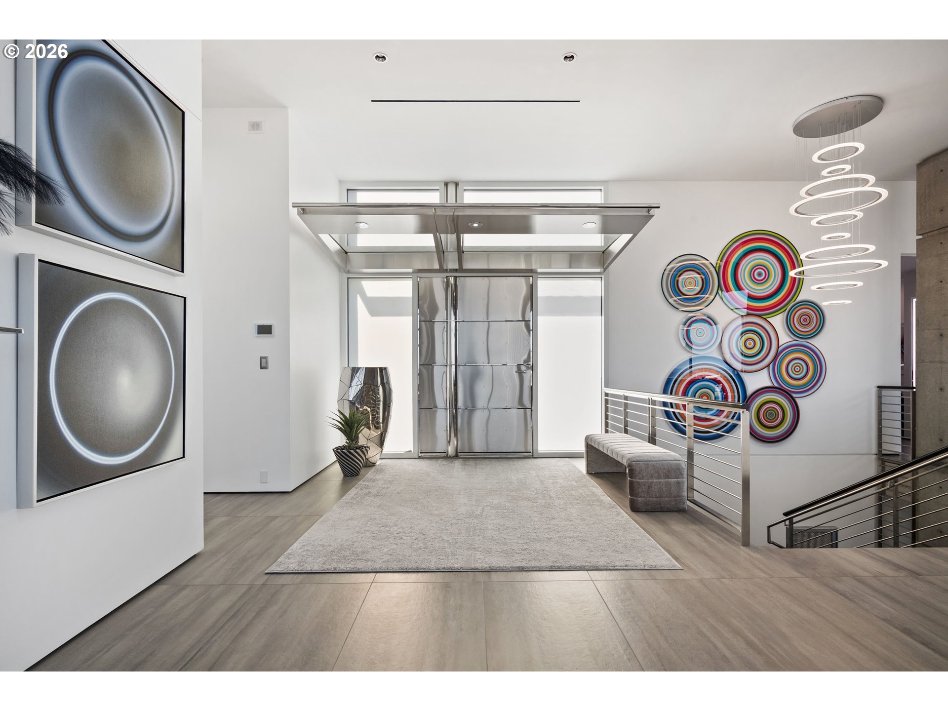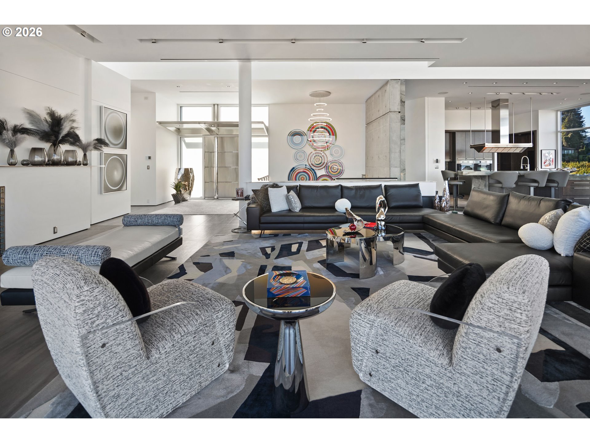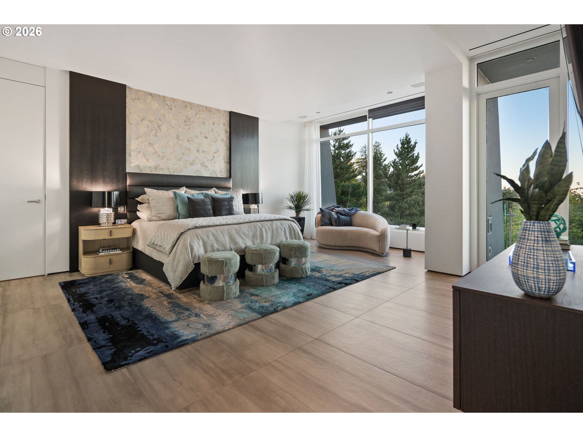 - Perched high above Portland with one of the city’s most commanding panoramas, this Iconic ultra-modern masterpiece designed by renowned architect Bob Thompson delivers an epic blend of architecture, light, and cinematic indoor/outdoor living. Walls of glass capture a sweeping 270-degree view of the skyline, river, and the Cascade mountain range, while multiple terraces, a dramatic 75-foot lap pool, and refined contemporary interiors create a lifestyle centered on spectacle and serenity. Nearly 7,300 square feet of meticulously updated living space offer grand entertaining areas, a luxe main-level suite, a chef’s kitchen with Italian stone and Arclinea cabinetry, and resort-style amenities including a screening room, multi-level elevator, 3 car garage with a bar/TV with a oversized level and gated motor court, wine lounge, gym, and game room. With a seven-figure investment in recent upgrades, this home stands as one of Portland’s most extraordinary, view-driven offerings and an unmatched opportunity for buyers seeking a truly iconic vantage point.