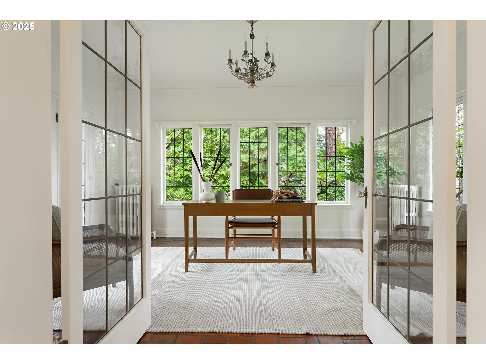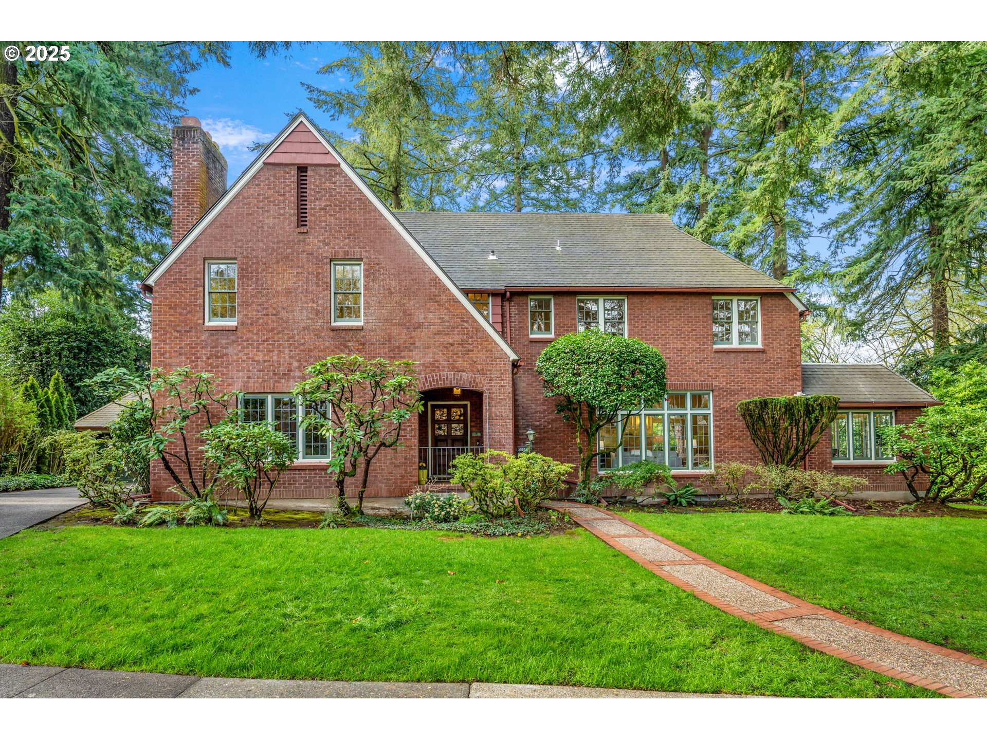 - Set in the idyllic Eastmoreland neighborhood, this stunning English Tudor Revival estate is a rare opportunity to own an iconic piece of Portland’s history. Discover this urban sanctuary with lush mature landscaping on a generous .65 acre lot adjacent to the historic Eastmoreland Golf Course. Enter the stately foyer, where soaring ceilings and refined architectural details evoke an immediate sense of grandeur and timeless sophistication. Features include intricate stained glass, built-ins, leaded glass windows, vintage tiled bathrooms, original hardwood floors, and exquisite craftsmanship throughout. The grand living room, fit for dignitaries, impresses with its refined, spacious elegance. A formal dining room, reminiscent of a bygone era, is perfect for entertaining, while the large study, adorned with classic mahogony paneling, offers a distinguished workspace. The sunroom seamlessly connects to the backyard, inviting natural light and integrating indoor comfort with outdoor beauty.The grand staircase leads to the upper level, featuring lofty ceilings, four bedrooms, two bathrooms, two fireplaces, and two sundecks. The spacious primary bedroom with gorgeous views of the surrounding greenery is a splendid sanctuary from the bustle of life. With its brick façade, majestic staircase, and stately presence, this home is a rare blend of history and elegance, waiting to be rediscovered.All measurements are approximate, buyers to do their own due diligence. BRAND NEW 400 amp electric panel, new french drain and dry well. [Home Energy Score = 1. HES Report at https://rpt.greenbuildingregistry.com/hes/OR10236834]