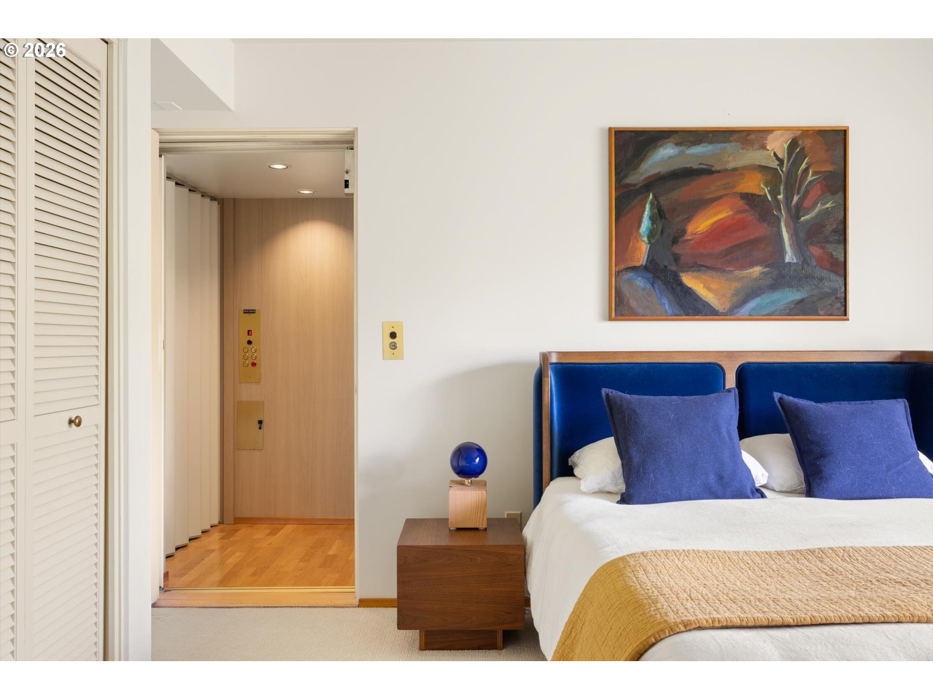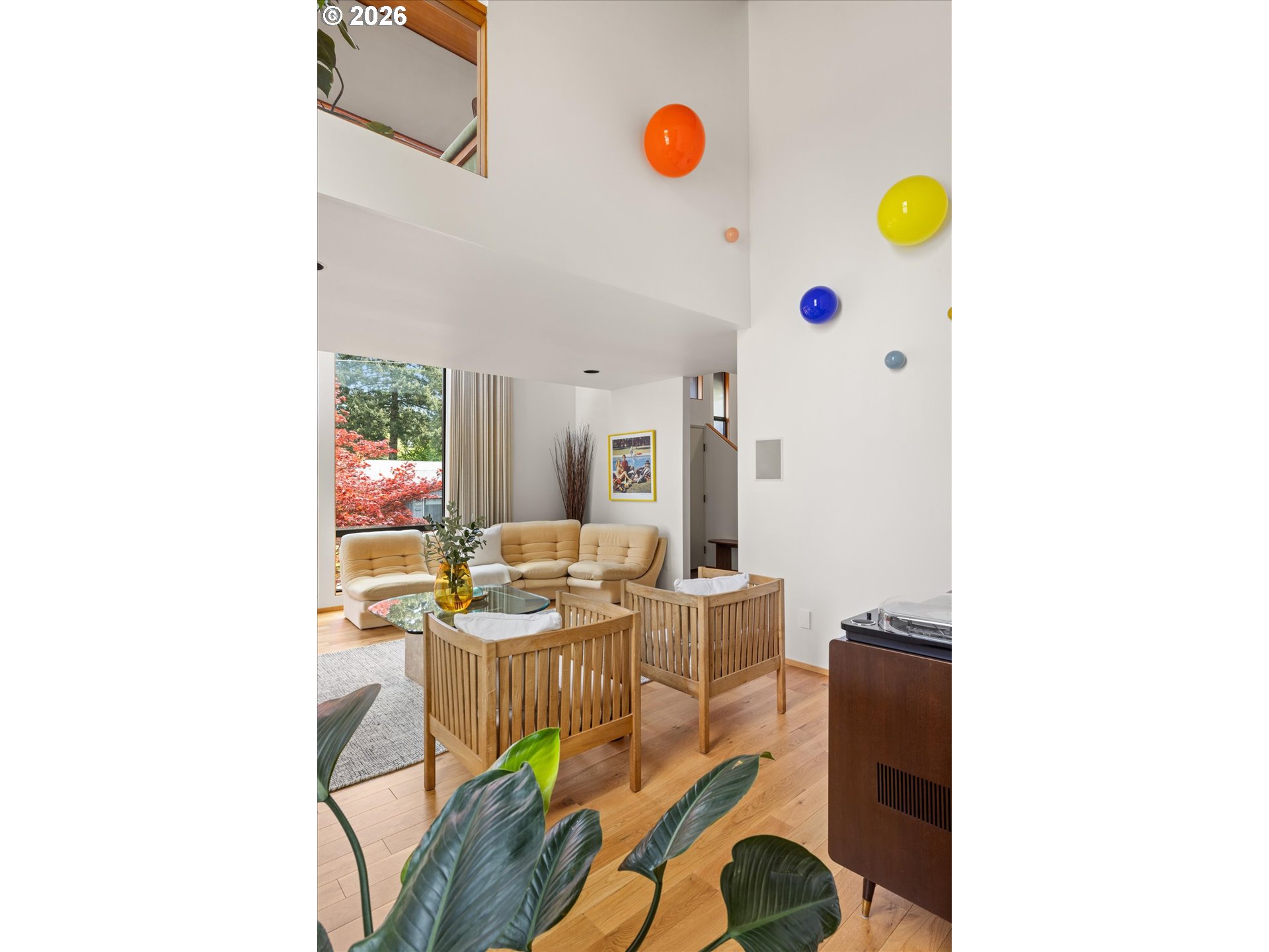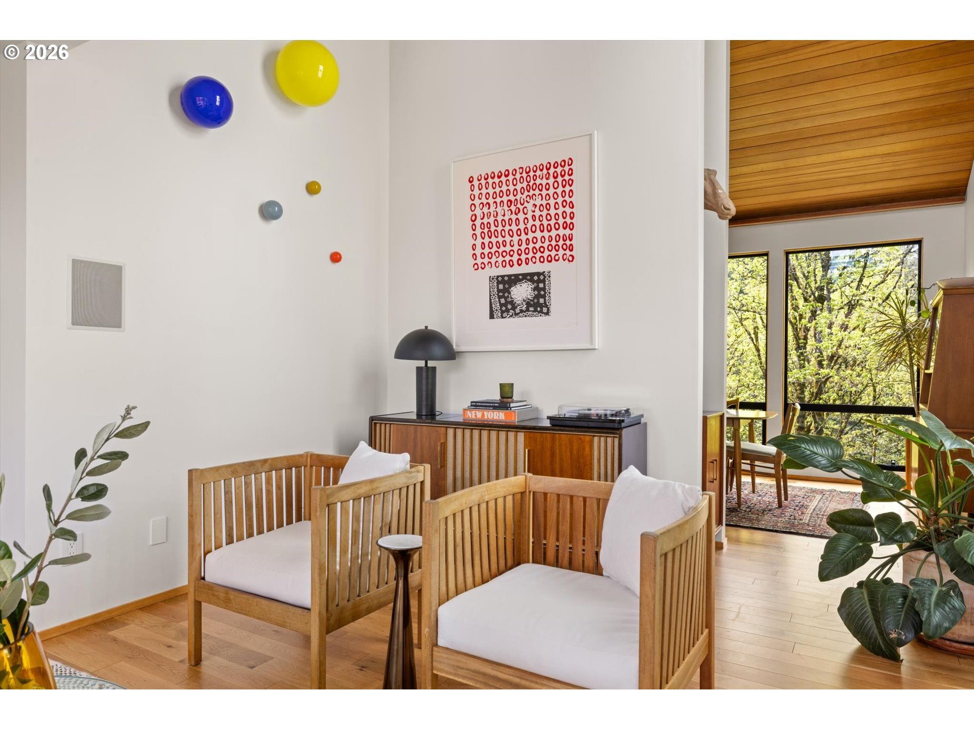 - ** OPEN HOUSE Sat 4/25 12-3pm. Private tours for buyers without agent representation can be booked at calendly.com/tour-time ** Designed by architectural team of York & Yodogawa & originally built for H. Chik M. Erzurumlu, a structural engineer & longtime Portland State professor, this home reflects a clear understanding of how space, light, & structure come together over time. When his wife fell ill, an elevator was added to connect each floor and the garage, allowing them to remain in the home they had created together. Set at the end of a quiet cul-de-sac, this one-of-a-kind home is grounded in its setting, balancing open outlooks with a sense of privacy among the surrounding trees. Natural light pours through expansive windows, including a dramatic two-story living room with floor to ceiling glass that frames Mt. St. Helens and layered views. A series of levels, loft space, & decks create moments for gathering & retreat, with a dedicated formal dining area positioned to take in the forest outlook. The kitchen is complete with Bertazzoni oven and Bosch refrigerator. A vaulted cedar ceiling brings warmth and scale to the main living areas, complemented by a gas fireplace, 4-inch oak floors underfoot, & custom cabinetry that carries throughout the home. Bathrooms are finished in imported travertine and Ann Sacks tile. The lower level is dedicated to three bedrooms, each with generous picture windows that look directly into the surrounding forest. The loft, complete with a wet bar & private deck, offers a more tucked away place to retreat, with generous storage thoughtfully integrated. With a high efficiency gas furnace, a whole house generator, & low maintenance grounds, the home is as considered in function as it is in feeling. In a setting where multi-level homes are often the norm, the elevator to every level, including the garage, offers long term ease and flexibility, all just moments from OHSU, nearby parks, trailheads, and a quick connection into the city.