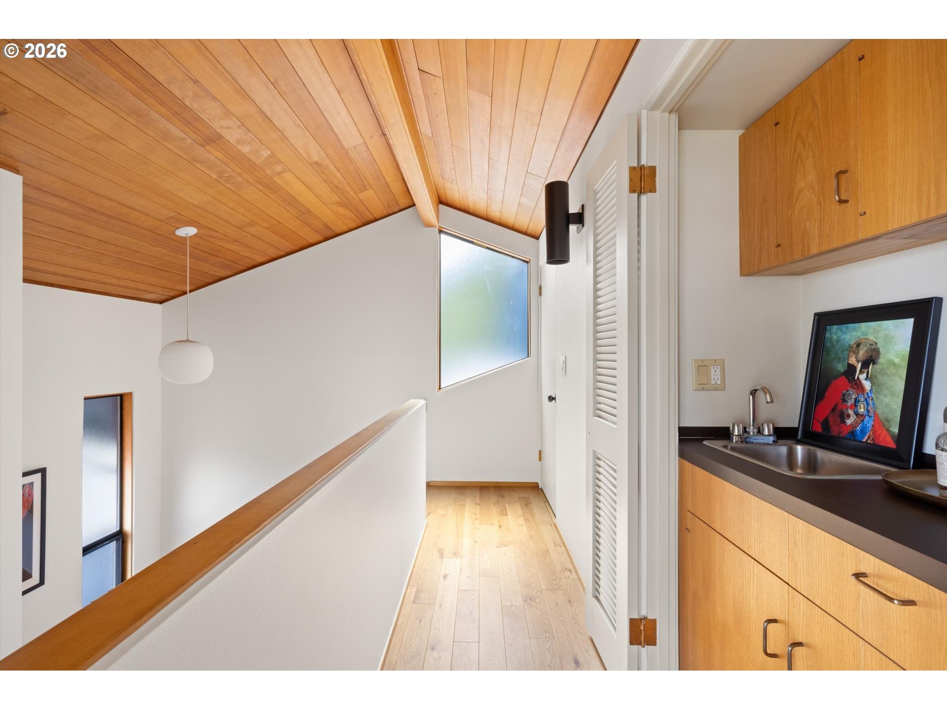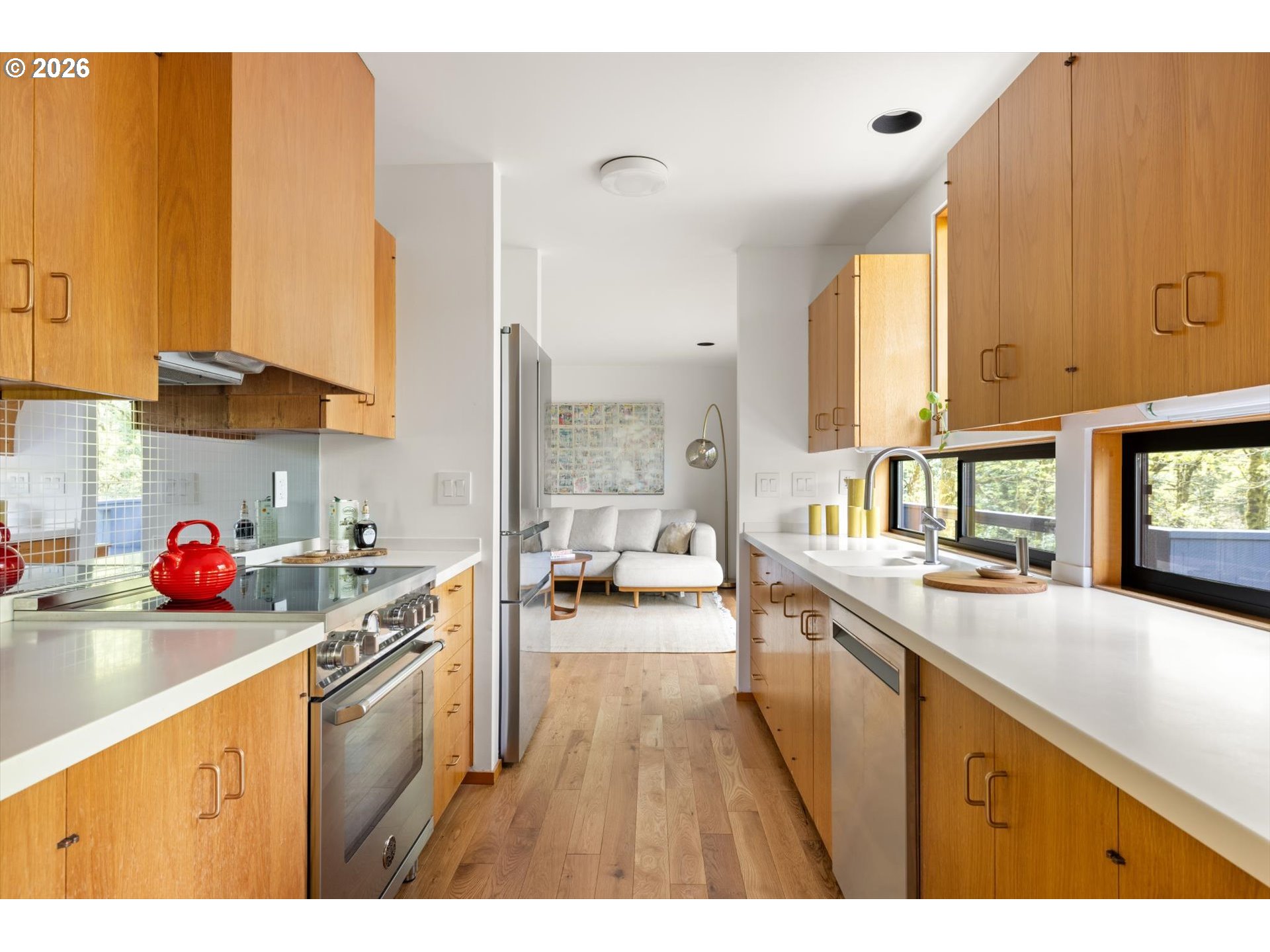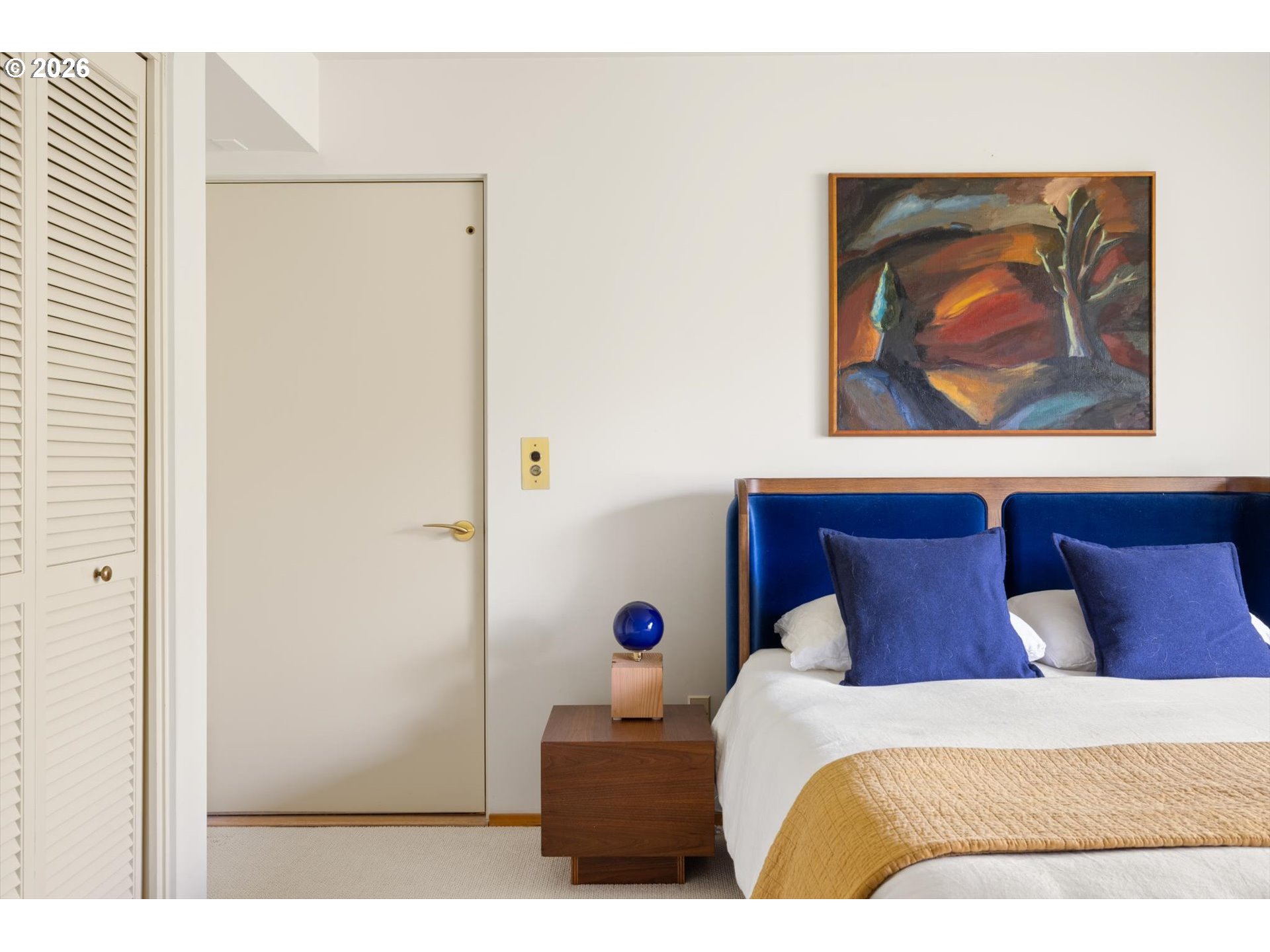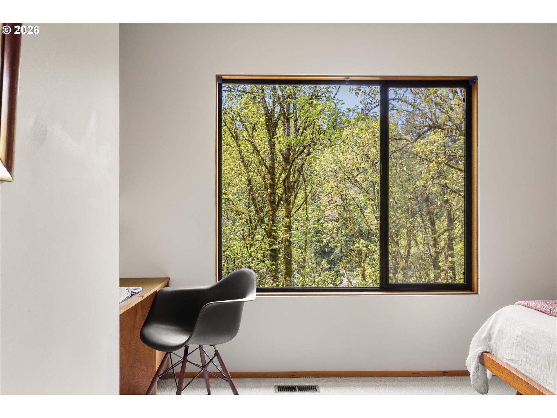 - ** OPEN HOUSE Sat 4/25 12-3pm. Private tours for buyers without agent representation can be booked at calendly.com/tour-time ** Designed by architectural team of York & Yodogawa & originally built for H. Chik M. Erzurumlu, a structural engineer & longtime Portland State professor, this home reflects a clear understanding of how space, light, & structure come together over time. When his wife fell ill, an elevator was added to connect each floor and the garage, allowing them to remain in the home they had created together. Set at the end of a quiet cul-de-sac, this one-of-a-kind home is grounded in its setting, balancing open outlooks with a sense of privacy among the surrounding trees. Natural light pours through expansive windows, including a dramatic two-story living room with floor to ceiling glass that frames Mt. St. Helens and layered views. A series of levels, loft space, & decks create moments for gathering & retreat, with a dedicated formal dining area positioned to take in the forest outlook. The kitchen is complete with Bertazzoni oven and Bosch refrigerator. A vaulted cedar ceiling brings warmth and scale to the main living areas, complemented by a gas fireplace, 4-inch oak floors underfoot, & custom cabinetry that carries throughout the home. Bathrooms are finished in imported travertine and Ann Sacks tile. The lower level is dedicated to three bedrooms, each with generous picture windows that look directly into the surrounding forest. The loft, complete with a wet bar & private deck, offers a more tucked away place to retreat, with generous storage thoughtfully integrated. With a high efficiency gas furnace, a whole house generator, & low maintenance grounds, the home is as considered in function as it is in feeling. In a setting where multi-level homes are often the norm, the elevator to every level, including the garage, offers long term ease and flexibility, all just moments from OHSU, nearby parks, trailheads, and a quick connection into the city.
