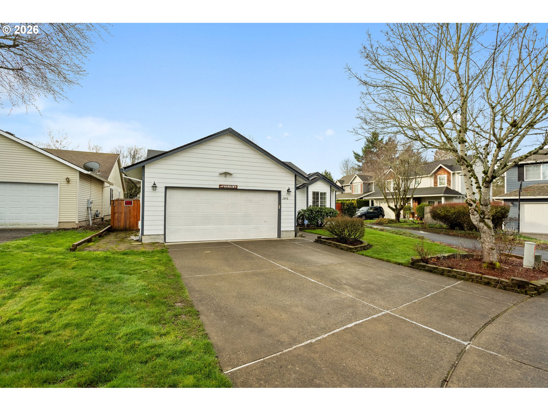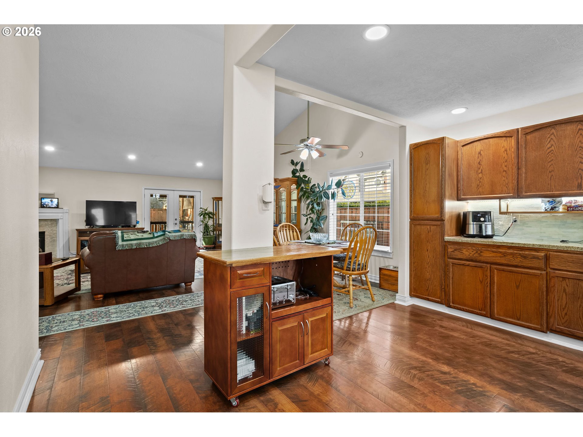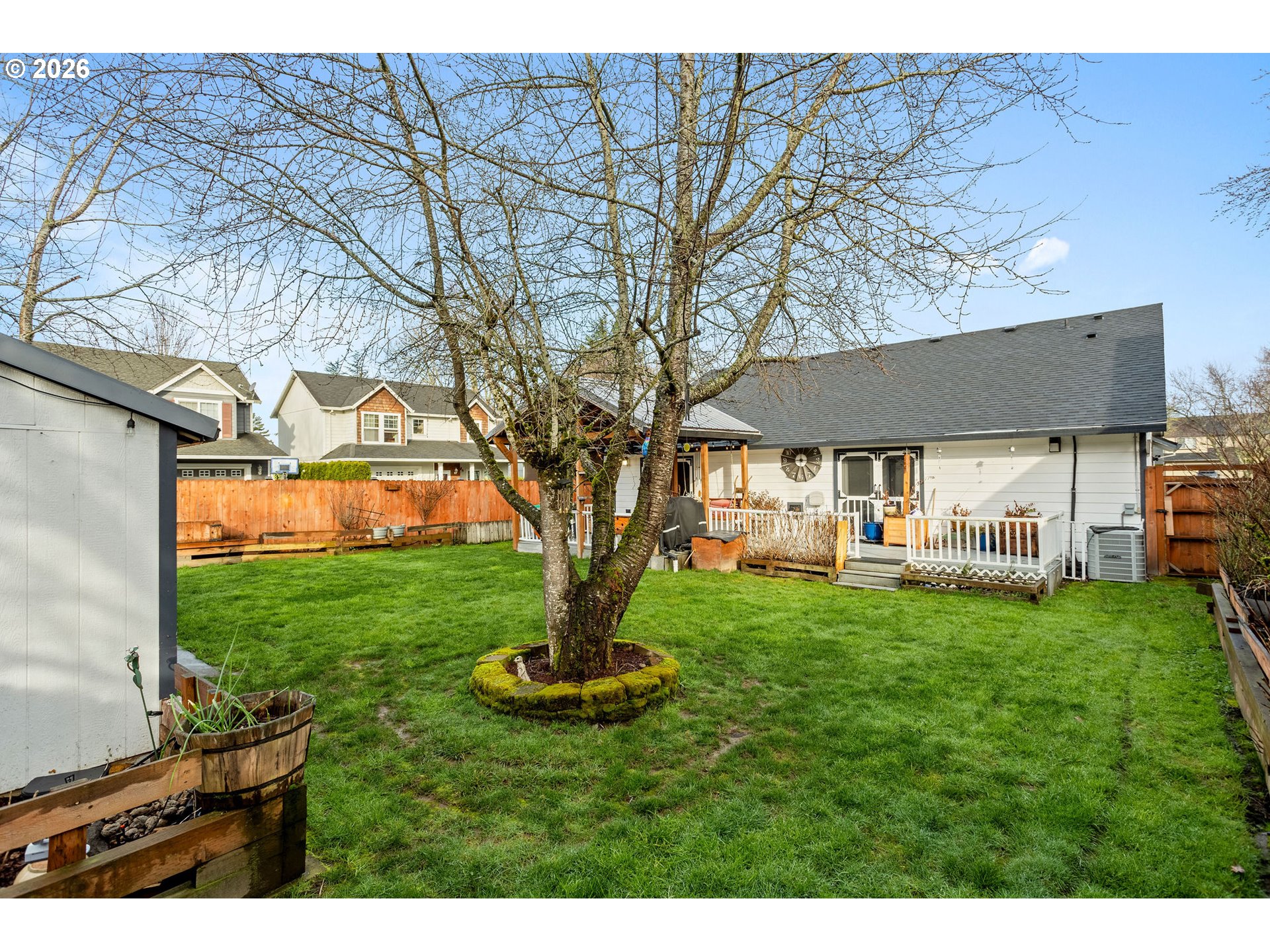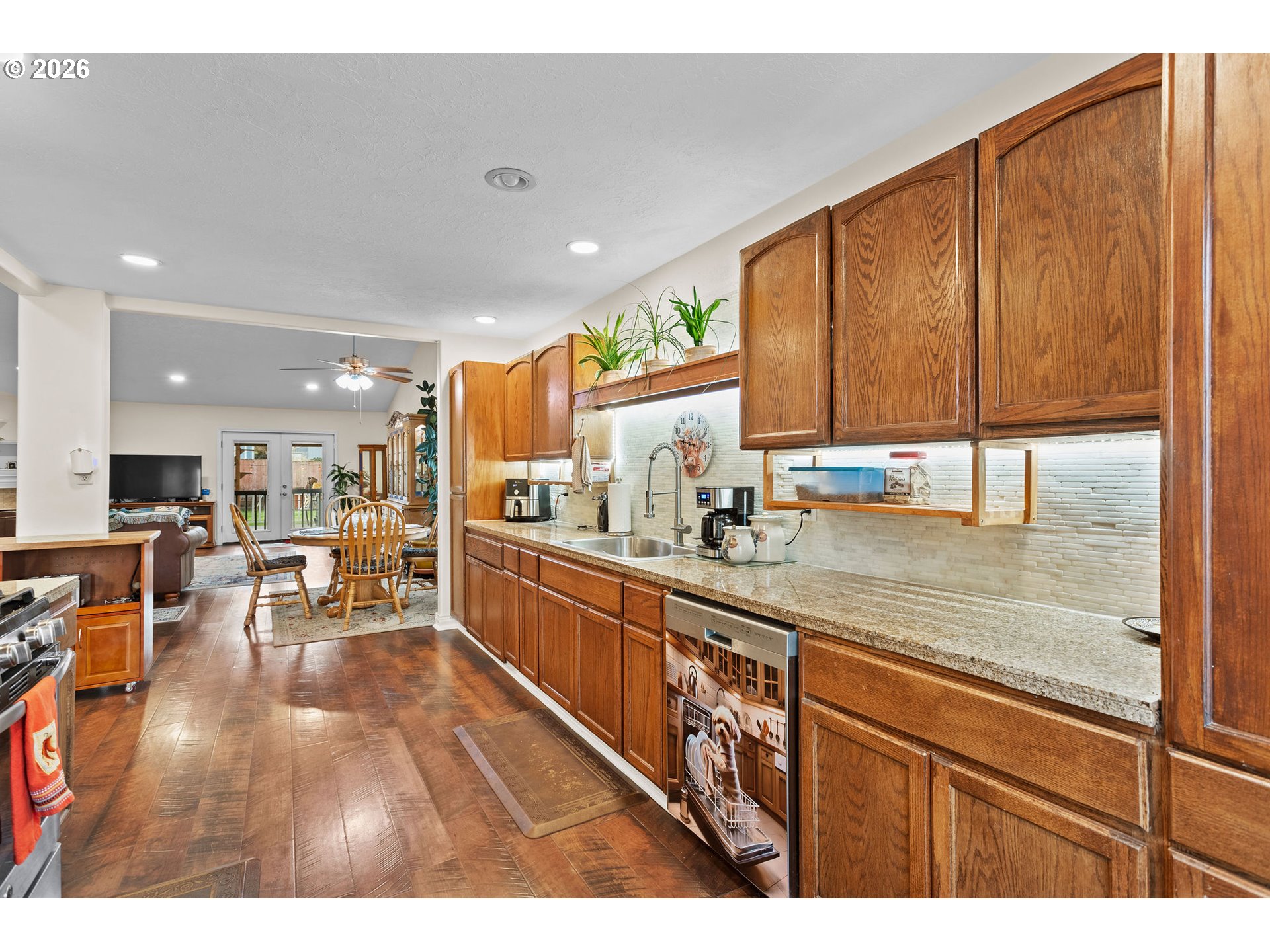 - Open Sunday 10am-Noon. Quiet Cul-de-Sac Living Meets Modern Comfort in this Single-Level Ranch! This impeccably maintained, single-level ranch features a sought-after great room floor plan with extensive recent updates throughout. Tucked away in a quiet, well-kept cul-de-sac, the home is just a half-mile stroll from the 32-acre Gradin Community Sports Park, offering easy access to the Gresham Arboretum’s paved trails, pickleball courts, a dedicated dog park, and stunning views of the local buttes.Inside, the home feels airy and expansive thanks to vaulted ceilings and newer laminate flooring that flows through every room. The heart of the home is the light-filled great room, anchored by a cozy gas fireplace and elegant French doors. The kitchen is equipped with granite countertops and stainless steel appliances, while the primary suite serves as a private retreat featuring a walk-in closet, walk-in shower, and its own set of French doors leading directly to the deck.Designed for longevity, the home features a new roof and covered Trex deck with a durable metal roof installed just 3 years ago, while the Hardiplank siding, furnace, AC, and interior/exterior paint have all been updated within the last 7 years. The private, fully fenced backyard is built for year-round use and comes complete with a sprinkler system, a tool shed, and vibrant rhododendrons that bloom in the spring. Additional storage is easily accessible in the attached two-car garage, which includes convenient attic space.