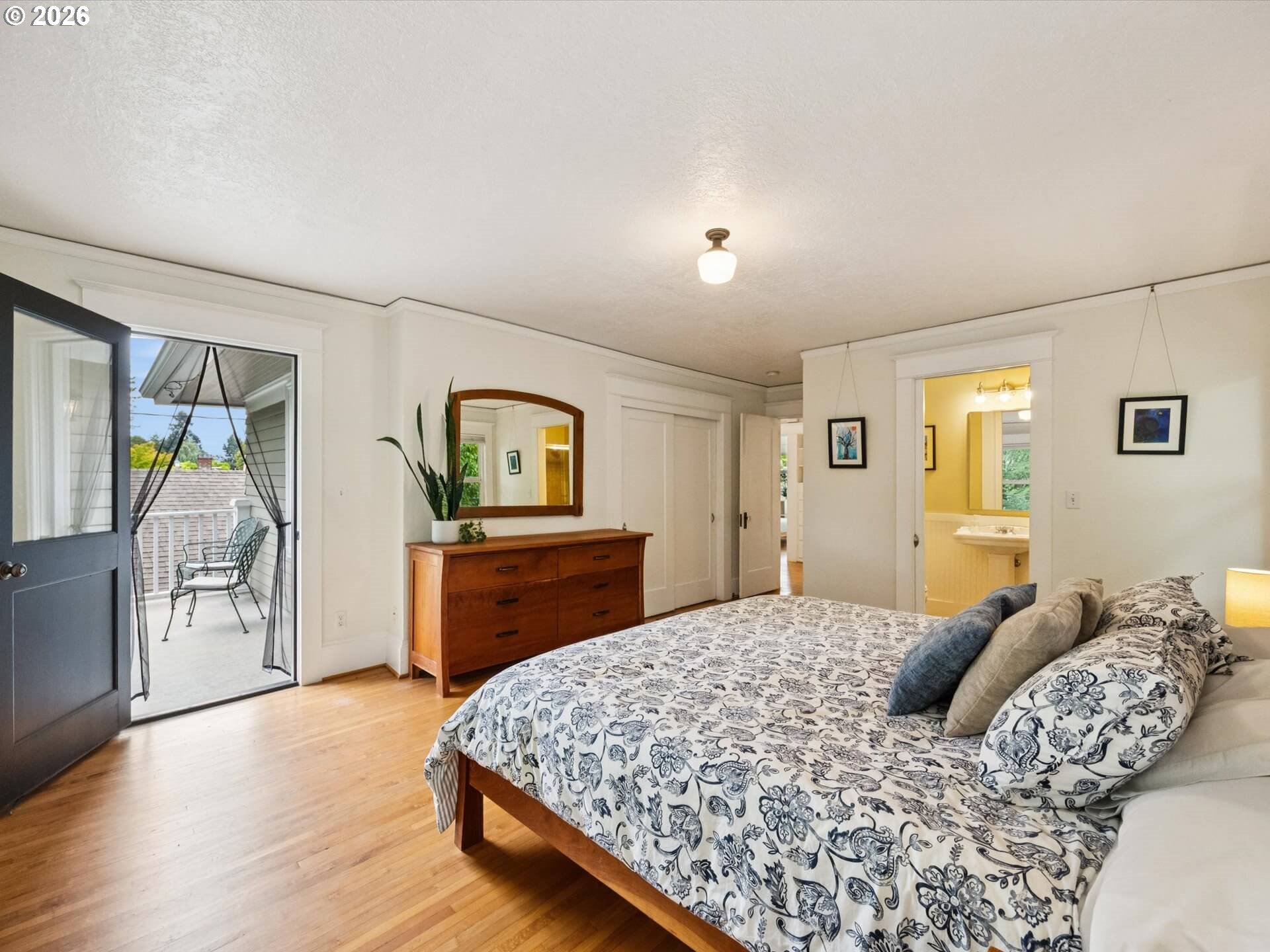 - Irvington Opportunity: This early 20th-century American Foursquare offers over 3,200 sq. ft. of timeless character and modern updates in one of Portland’s most sought-after neighborhoods. A gracious formal entry opens to elegant living and dining rooms with bi-fold French doors, hardwood floors, and a fireplace enhanced by contemporary sconces. The spacious kitchen features a large island, gas cooktop, new double ovens, and stainless appliances. Upstairs, four bedrooms and two full baths include a primary ensuite with private balcony. Flexible family room (or 5th bedroom) on the main with private patio, plus a generous basement with exterior access. Double-pane windows, new water main, new sewer, new 200-amp electrical panel, PEX plumbing, upgraded insulation, and a rare two-car garage complete this exceptional home. Less than a block to Irvington Elem covered-playground and field. Room to roam and play, inside and out! [Home Energy Score = 1. HES Report at https://rpt.greenbuildingregistry.com/hes/OR10241612]