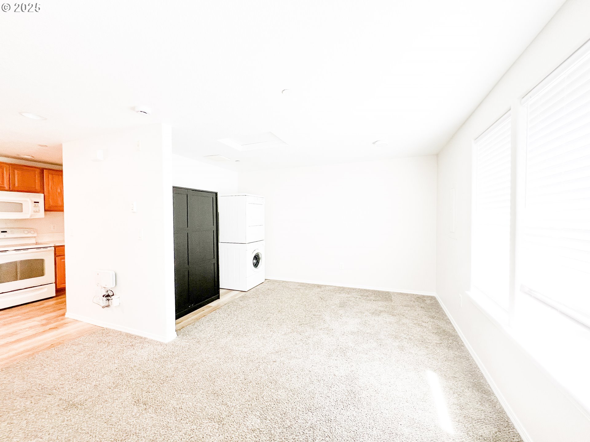 Welcome to Ash Court Condominiums Unit 5! The community boasts a high percentage of long-term, on-site homeowners. For instance, the neighbor directly across the patio has resided here for five years, and numerous other residents have maintained ownership within the complex for several years. This sunny, bright upper-level condo is move-in ready. It offers a private and well-designed floor plan that has everything you need. The open-concept layout provides all the essentials for you or your future tenant. Washer and dryer included in the unit. With fresh interior paint and new carpet throughout, the space feels brand new. The sunlit kitchen is a delight, offering plenty of natural light and a warm, inviting atmosphere for preparing your favorite meals- features a new vinyl floor and updated countertops, providing plenty of room for cooking, food prep and storage! The generously sized bathroom provides ample space and functionality, Two blocks to MAX and close to groceries and restaurants. Easy access to I84 and PDX Airport. Walk to Ventura Park. Easy to park on the street beside the condo. Great place to live with a car or no car! Very well-maintained grounds. Low HOA. Live in it or rent it out. No rental cap.
