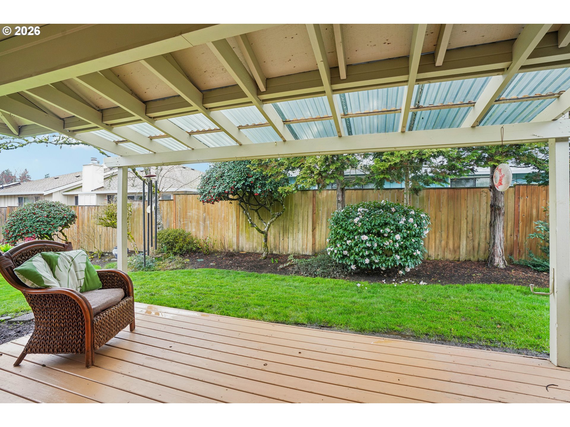 - Rare Monterey end-unit in Summerfield golf community with a private backyard and expansive covered deck—turnkey and beautifully updated for effortless indoor-outdoor living. A charming private courtyard entry welcomes you with space for gardening, potted plants, or a peaceful sitting area to enjoy the sunshine. Inside, the home opens to a spacious great-room layout featuring a cozy gas fireplace, generous dining area, and luxury wide-plank LVP flooring that flows seamlessly throughout the main living areas. The well-appointed kitchen blends style and function with Quartz countertops, Travertine backsplash, stainless steel KitchenAid appliances, and rich Alder cabinetry with pull-outs & soft-close features. A bright bay window breakfast nook provides the perfect setting for casual dining or morning coffee. Step outside to the expansive covered deck overlooking the private fenced backyard, creating an ideal space for relaxing, entertaining, or enjoying peaceful outdoor living year-round. Large windows and recessed lighting fill the home with natural light, creating a warm and inviting atmosphere throughout. Both bedrooms feature double closets with California Closet systems and newer carpet for comfort. The versatile second bedroom includes a Murphy bed with built-in desk and cabinetry, perfect for guests or a home office. Matching cabinetry throughout the home provides a cohesive custom feel and excellent storage. Both bathrooms offer Quartz countertops & walk-in showers. Major updates include new HVAC with iWave air purification system (2022), new water heater (2023), and new roof (2023)—providing peace of mind for years to come. Designed for easy, low-maintenance living, this beautifully updated home allows you to spend more time enjoying the vibrant Summerfield lifestyle and less time on home projects. Extremely quiet and peaceful neighborhood with many social activities. Mortgage savings may be available for buyers of this listing.