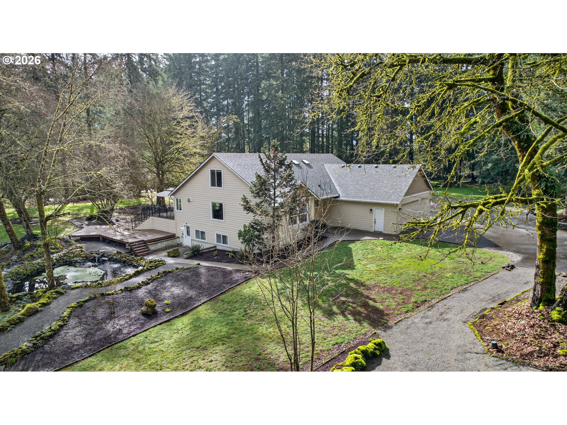 - Beautifully remodeled estate featuring a spacious ADU on over 2.27 private, park-like acres. The main residence offers desirable single-level living with a generous laundry room, two bedrooms plus a versatile third bedroom or office, formal dining, and an updated kitchen with breakfast nook. Luxury vinyl plank flooring and a cozy woodstove adding both style and warmth. A private upper level includes an additional two-bedrooms, one-bath retreat—ideal for guests or extended living. The lower-level ADU provides excellent flexibility with a separate entrance, two non-conforming bedrooms, 1.5 baths, and its own laundry—perfect for multigenerational living or income potential. Outside, the meticulously maintained grounds create a true lifestyle property, complete with multiple fire pit areas, raised garden beds, garden shed, koi pond, multi-tiered entertaining deck, and a two-bay shop. All of this is set against a serene, forested backdrop and walking trails, offering exceptional privacy and tranquility. OPEN HOUSE SATURDAY 3/7/2026 11am - 2pm