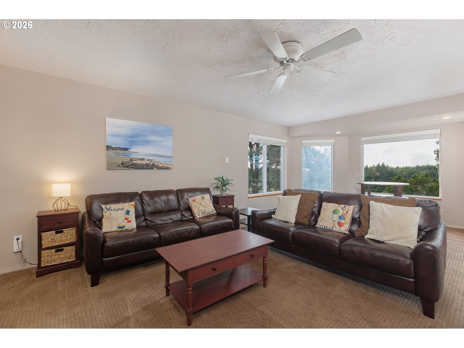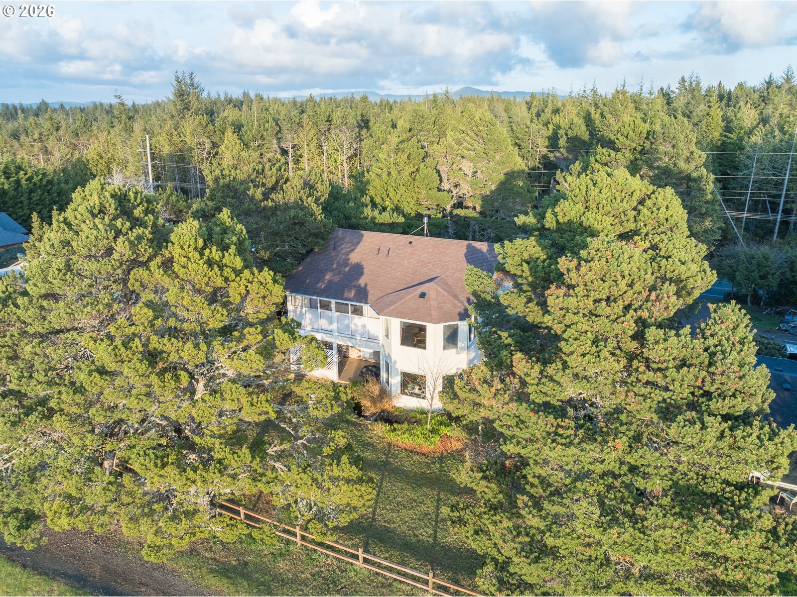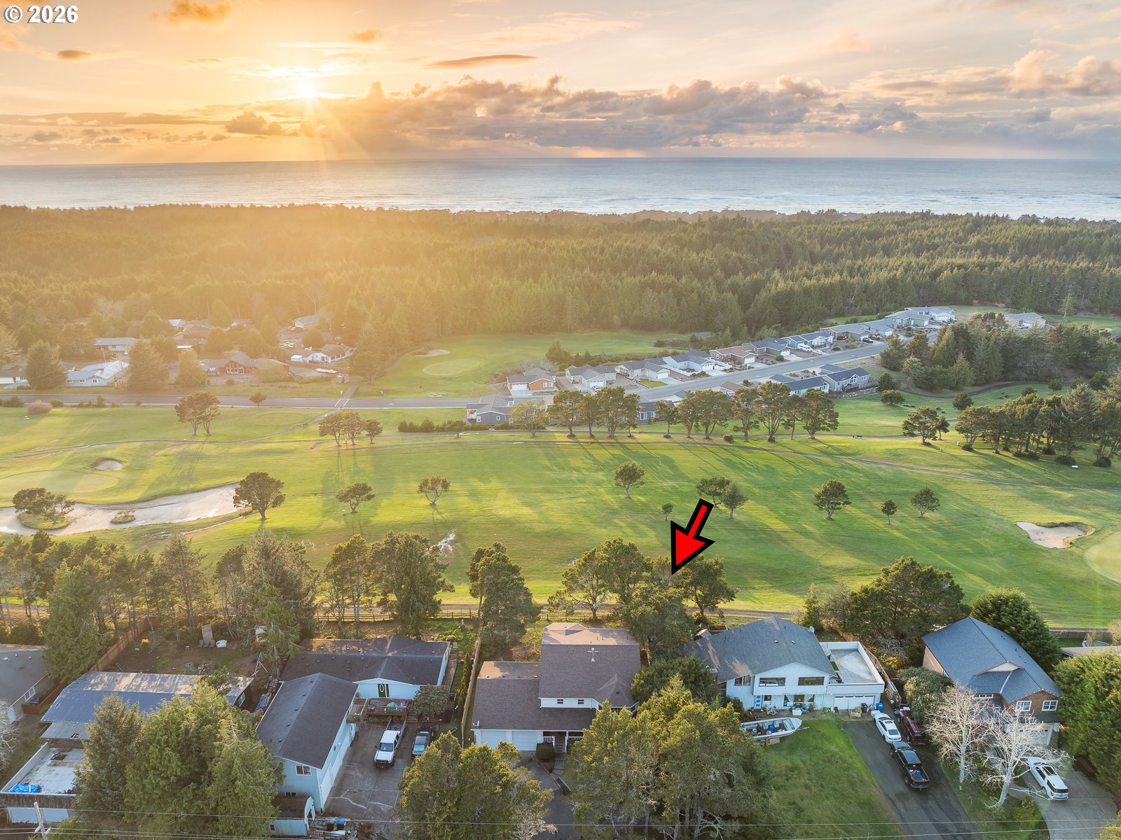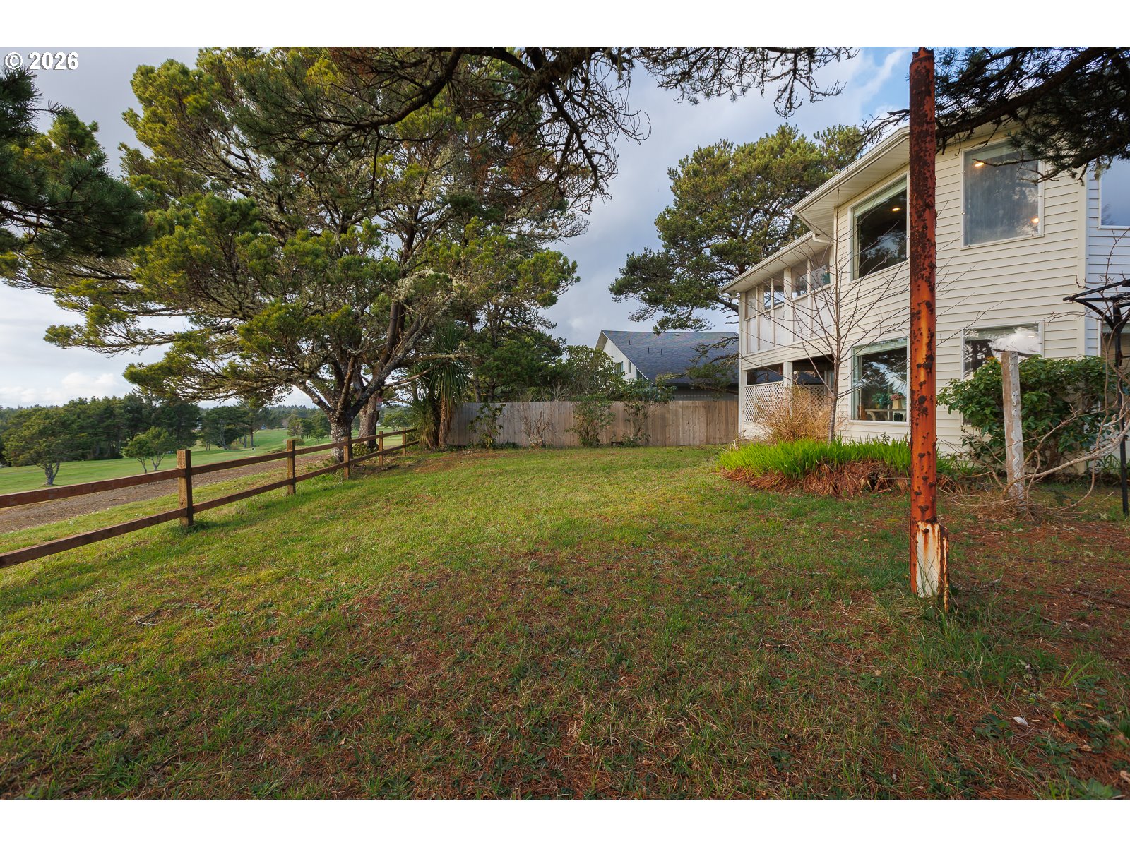 - Experience superb coastal living and STR Investment Potential with this active vacation rental overlooking Crestview Golf Course in Waldport. Offering a spacious gathering place, a full-time coastal retreat, or a turn-key nightly rental, this home offers flexibility and income opportunity. Sold fully furnished, ready for you to enjoy immediately.Nestled among the trees and backed by the fairway in a peaceful setting just a short drive to the beach, hiking trails, crabbing and fishing adventures. A private driveway entry leads to ample parking and an oversized tandem 4 car garage with extra tall doors. The welcoming covered front porch opens into the main-level living space featuring soaring ceilings, comfortable seating areas, and a cozy gas fireplace that creates the perfect atmosphere for relaxing after a day at the beach.A well-equipped kitchen with granite counters connects to the dining area where large windows frame views of the backyard and golf course. Just outside, the covered rear deck invites you to enjoy quiet moments while surrounded by nature.The spacious main-level primary suite with a charming window seat, offers a walk-in closet, large vanity with dual sinks, and an ensuite bath featuring a soaking tub and separate shower. A guest powder room and laundry room with sink and storage are conveniently located on the main level.Upstairs, a generous family room highlights beautiful west-facing views across the golf course. The second bedroom offers comfortable space and its own built-in window seat, and the third bedroom is equally spacious. Both the family room and third bedroom open to an enclosed Sun Room with inviting seating and sweeping views.With multiple living areas, indoor and outdoor gathering spaces, and an unbeatable location near the coast, this home offers the perfect setting to relax, entertain, and create lasting memories—while also providing the opportunity for continued vacation rental income.