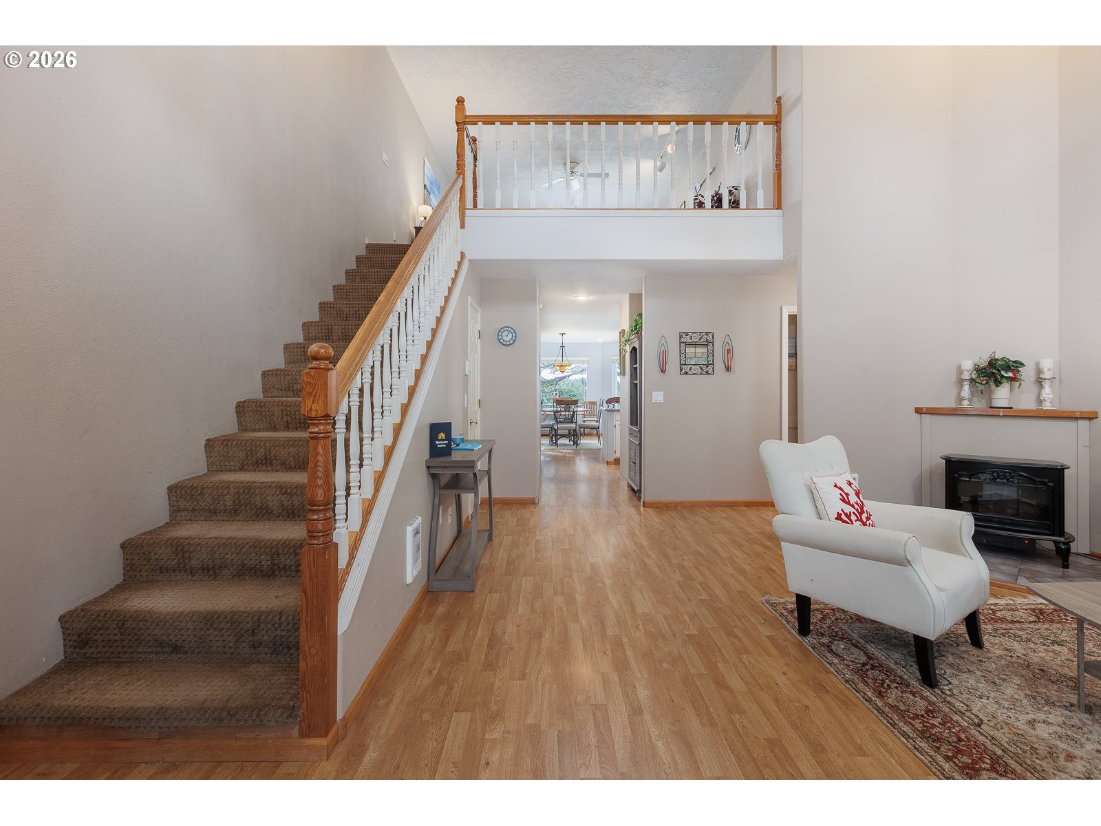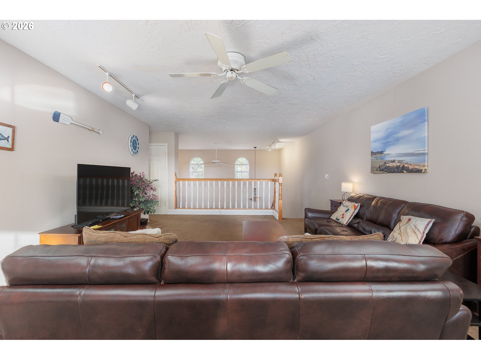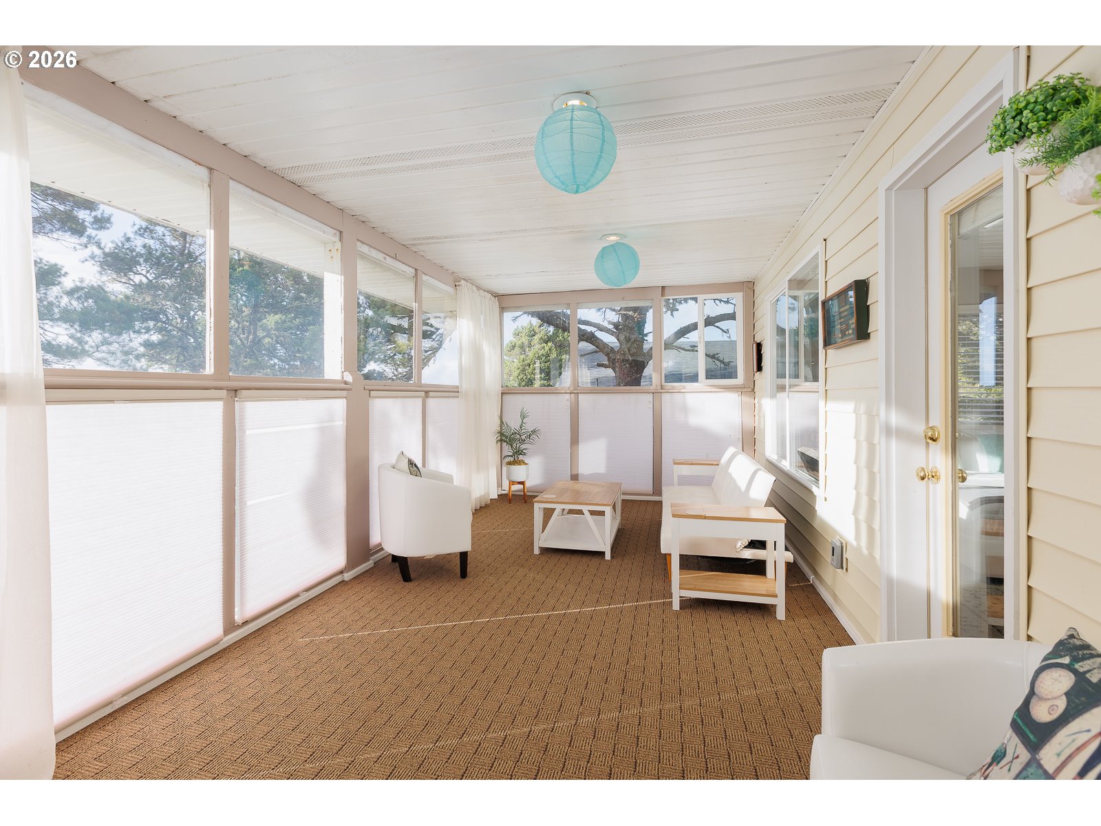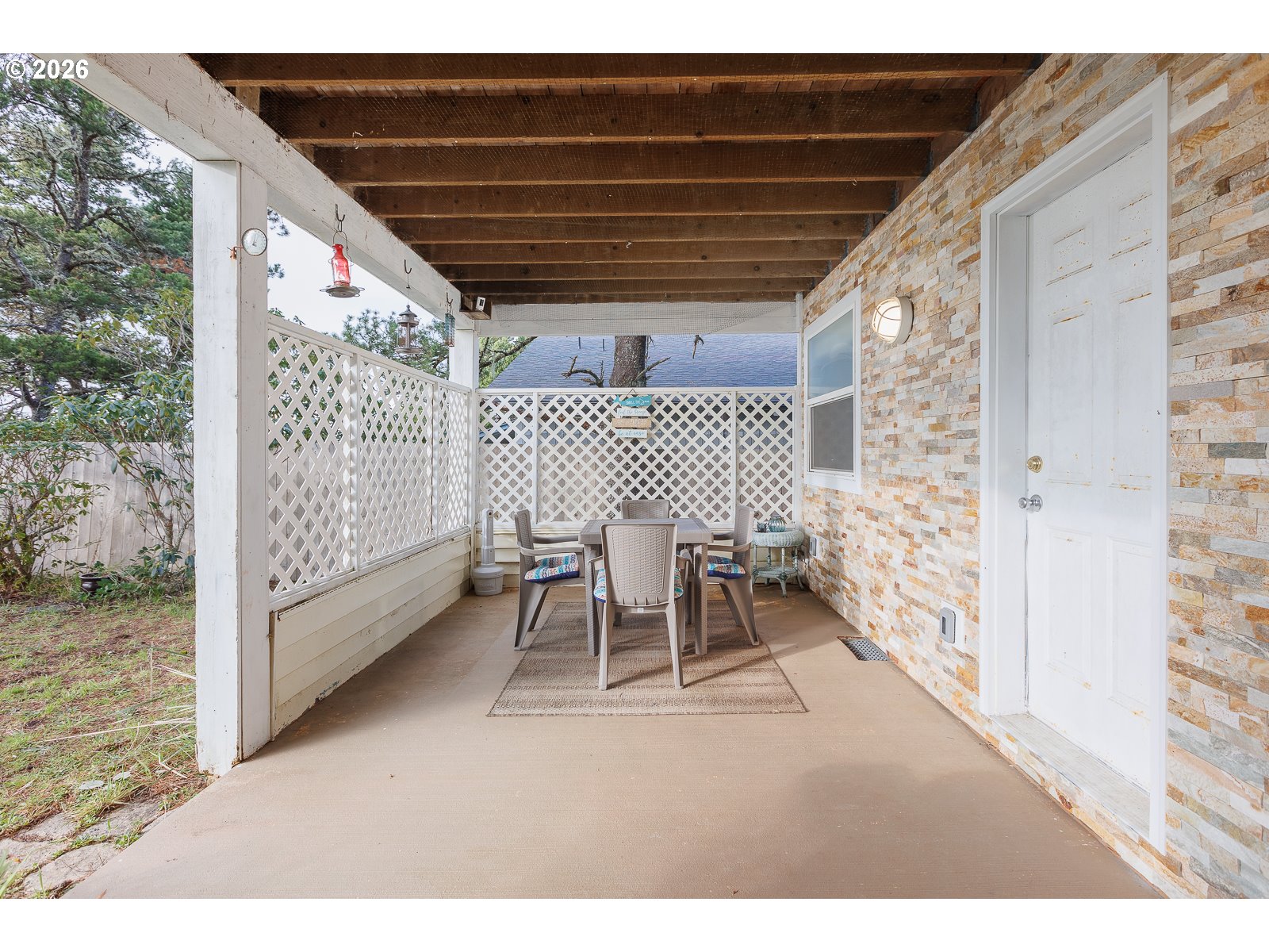 - Experience superb coastal living and STR Investment Potential with this active vacation rental overlooking Crestview Golf Course in Waldport. Offering a spacious gathering place, a full-time coastal retreat, or a turn-key nightly rental, this home offers flexibility and income opportunity. Sold fully furnished, ready for you to enjoy immediately.Nestled among the trees and backed by the fairway in a peaceful setting just a short drive to the beach, hiking trails, crabbing and fishing adventures. A private driveway entry leads to ample parking and an oversized tandem 4 car garage with extra tall doors. The welcoming covered front porch opens into the main-level living space featuring soaring ceilings, comfortable seating areas, and a cozy gas fireplace that creates the perfect atmosphere for relaxing after a day at the beach.A well-equipped kitchen with granite counters connects to the dining area where large windows frame views of the backyard and golf course. Just outside, the covered rear deck invites you to enjoy quiet moments while surrounded by nature.The spacious main-level primary suite with a charming window seat, offers a walk-in closet, large vanity with dual sinks, and an ensuite bath featuring a soaking tub and separate shower. A guest powder room and laundry room with sink and storage are conveniently located on the main level.Upstairs, a generous family room highlights beautiful west-facing views across the golf course. The second bedroom offers comfortable space and its own built-in window seat, and the third bedroom is equally spacious. Both the family room and third bedroom open to an enclosed Sun Room with inviting seating and sweeping views.With multiple living areas, indoor and outdoor gathering spaces, and an unbeatable location near the coast, this home offers the perfect setting to relax, entertain, and create lasting memories—while also providing the opportunity for continued vacation rental income.