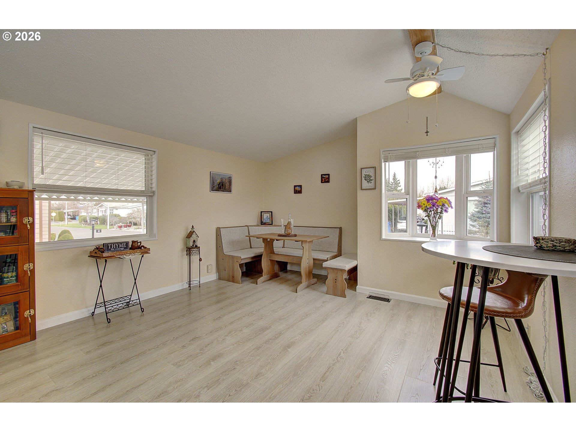 - Welcome to Creekside Estates — one of Clark County’s premier 55+ communities in Vancouver, WA. This immaculate double-wide offers 3 bedrooms and 2 baths with vaulted ceilings and tons of natural light, plus an enormous kitchen with a large island, eating area with a cozy booth, and all appliances included. Recent updates include fresh interior paint including a kitchen refresh with professionally painted cabinetry, new flooring and carpet, a new $13,000 deck with transferable warranty, home leveling and new vapor barrier, HVAC with a quiet heat-pump for cooling, upgraded electrical and plumbing, and resealed windows with blinds included. All bedrooms are generously sized and feature walk in closets. The exterior is pristine and features a huge double-sized carport and a workshop with 220V electric — perfect for hobbies, projects, or extra storage. Creekside Estates also offers top-tier amenities: a large party room, heated pool and spa, workout room, active clubhouse with lots of activities and a library. Clean, move-in ready, and perfectly situated in a friendly 55+ park — schedule your showing today.