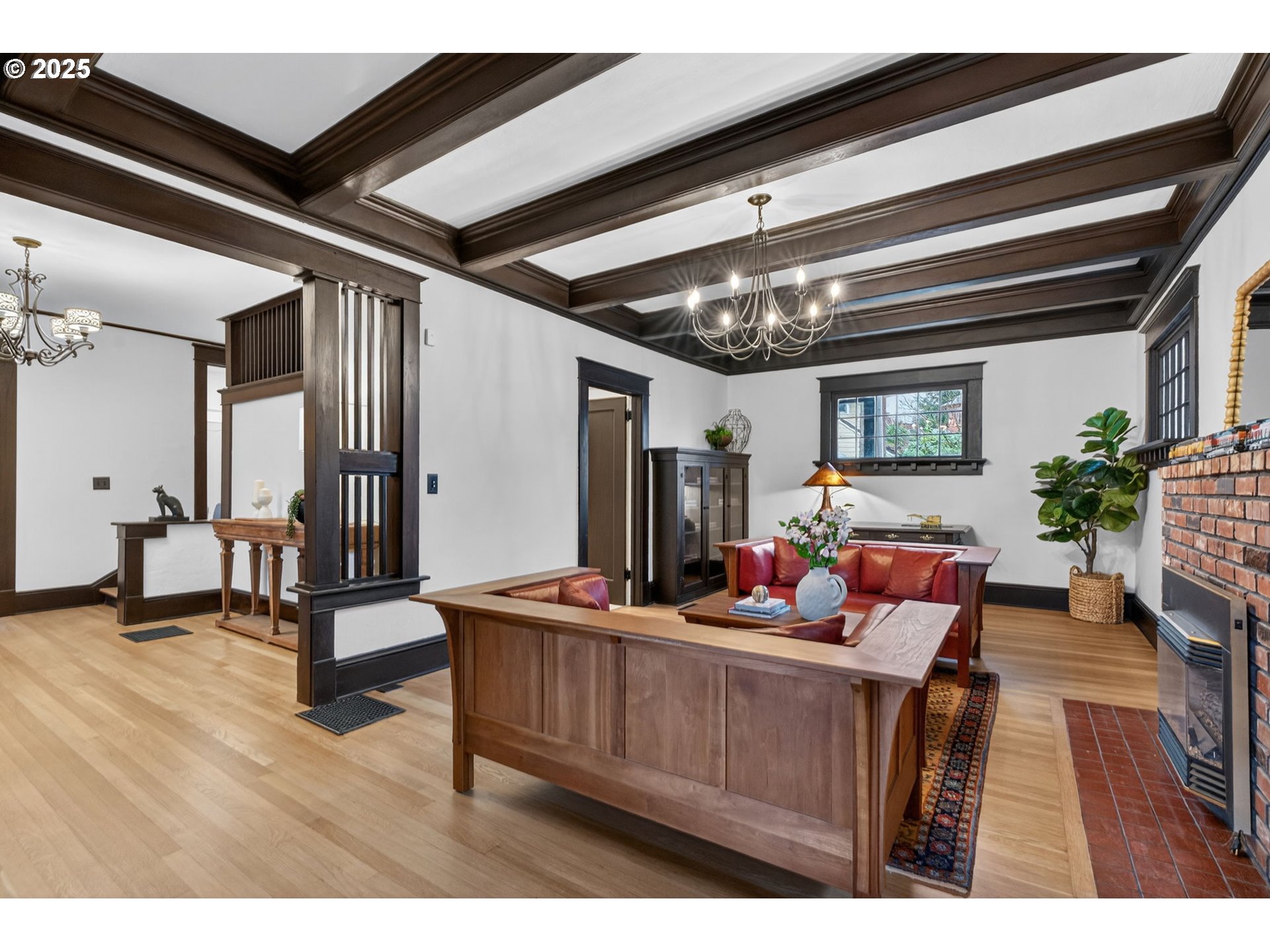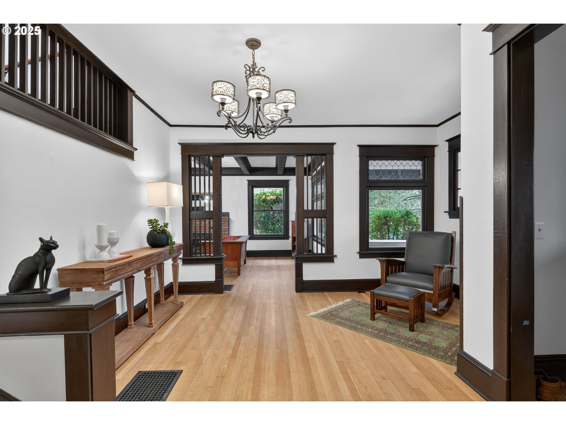 - OPEN HOUSE SATURDAY 11-1 & SUNDAY 2-4! Located in historic Ladd’s Addition, this distinguished 1908 residence embodies the timeless character of a Craftsman-influenced Portland Foursquare. Its front-gable roofline, wide overhanging eaves, and broad covered porch reflect early-Portland craftsmanship, complemented by original millwork and multi-pane windows highlighting its graceful façade. Set on a distinctive unique lot with rare, wide frontage for the neighborhood, the property offers a sense of privacy, lush mature landscaping, and the beauty of a designated Portland Heritage Tree #287. A spacious, detached three-car garage offers room for vehicles, storage, and versatile use. Inside, beautifully maintained period features include rich woodwork, leaded glass, original hardwood floors, beamed ceilings, and classic built-ins. Bright, spacious rooms flow effortlessly from the welcoming entry through the living and dining areas, with large picture windows framing tree-lined street views. The upper level features four comfortably sized bedrooms, a full bath, and a sunroom ideal for reading, office use, or creative pursuits. The expansive finished lower level adds even more versatility with generous bonus/living space, a full bathroom, and direct exterior access. With its quiet, friendly, village-like atmosphere and proximity to neighborhood markets, local eateries and more, Ladd’s Addition offers an unmatched blend of history, charm, and convenience. A truly inviting place to live. [Home Energy Score = 1. HES Report at https://rpt.greenbuildingregistry.com/hes/OR10241927]