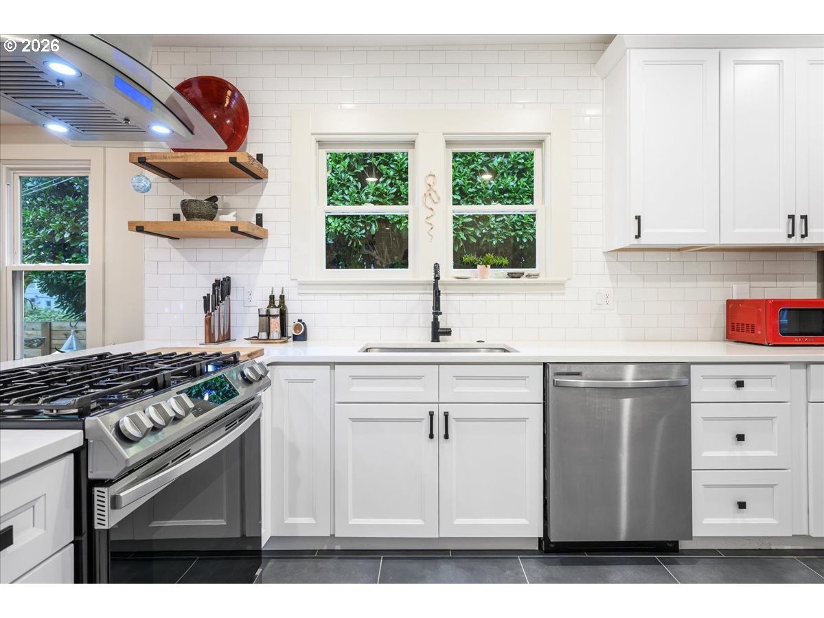 - OPEN FRI 1/9 6–8PM & SAT/SUN 11-1.This truly special 3BD/3BA Craftsman bungalow on a spacious corner lot is an urban oasis in the heart of vibrant SE Portland, just blocks away from Division’s restaurants/shops and within amile of Mt. Tabor. The light-filled main level features hardwoods, an open kitchen/dining/livinglayout, custom window coverings, and a cozy gas fireplace, flowing beautifully for everyday modern living and entertaining. The renovated kitchen offers abundant counter space, full-sizepantry, and new appliances. The spacious upstairs primary suite includes a walk-in closet, doublesinks, and oversized shower. The full-height basement with exterior entry and freshly paintedfloor provides flexible bonus space with potential ADU options. Outside, retreat to a covered entertaining deck with privacy screens, flanked by a professionally landscaped, fenced yard with native plantings, raised vegetable garden beds, dog run, and private sauna. Rare secure parkingincludes a dedicated pad plus room for multiple vehicles and RV/boat/trailer storage behind anautomatic, secure gate. Extensive updates include roof, plumbing, electrical, furnace, paint, and more. All appliances included. [Home Energy Score = 1. HES Report at https://rpt.greenbuildingregistry.com/hes/OR10199893]