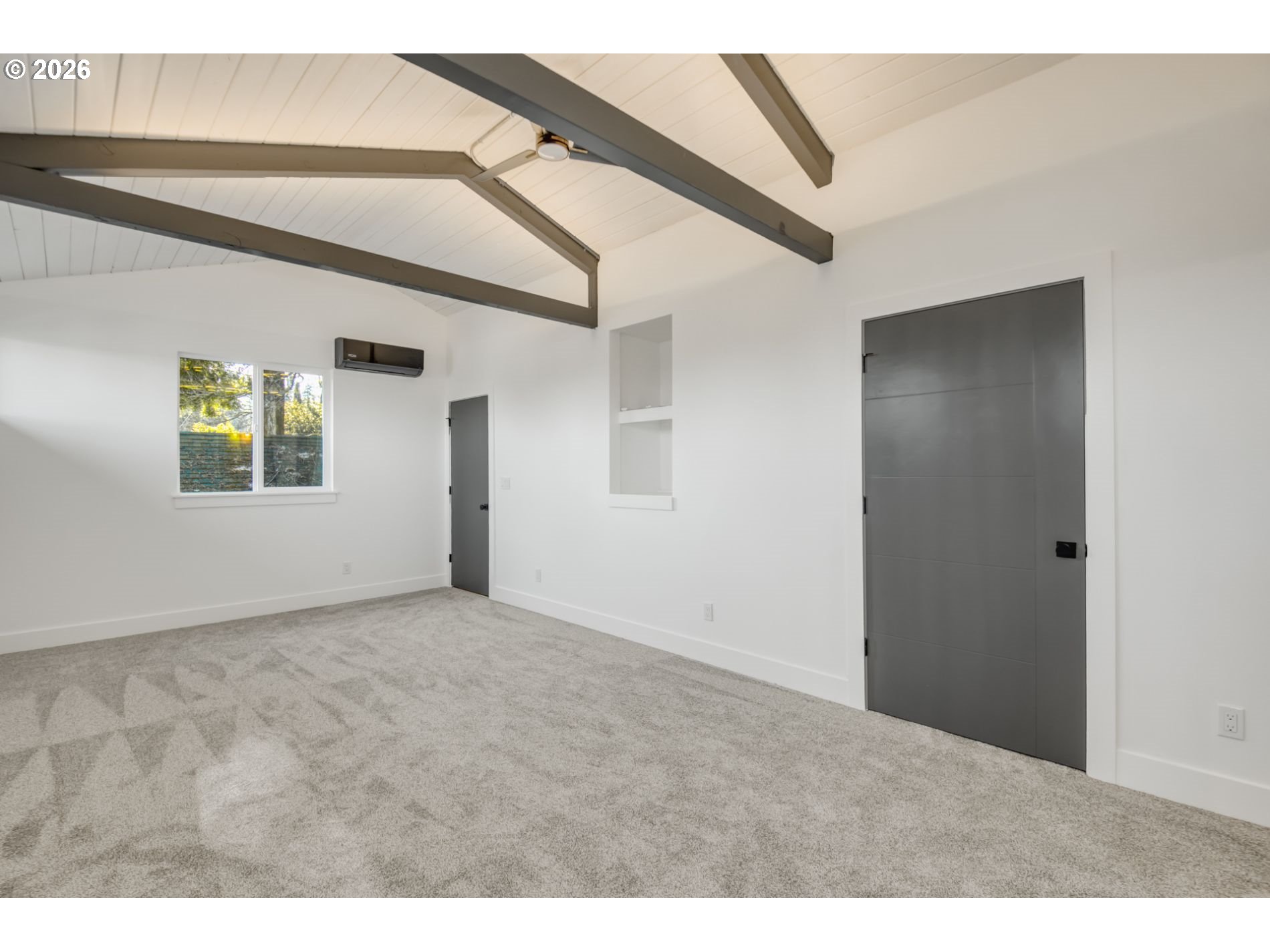 - Must-see, top-to-bottom mid-century modern inspired renovation! This stunning home features new: roof, siding, windows, Minisplit for primary bedroom, cabinets, light fixtures, gas fireplace, appliances, 200amp panel, tile in bathrooms, furnace and AC unit, carpet in bedrooms. Enjoy an open floor plan designed for entertaining, with beautiful mid-century–inspired finishes, plus covered front and back patios. The primary suite is truly one of a kind, and the living room is an absolute showstopper. Fresh landscaping and new fencing complete the exterior. The garage is prepped for a future bathroom, wet bar, and separate laundry room. This one-of-a-kind property is an entertainer’s delight and a must see.