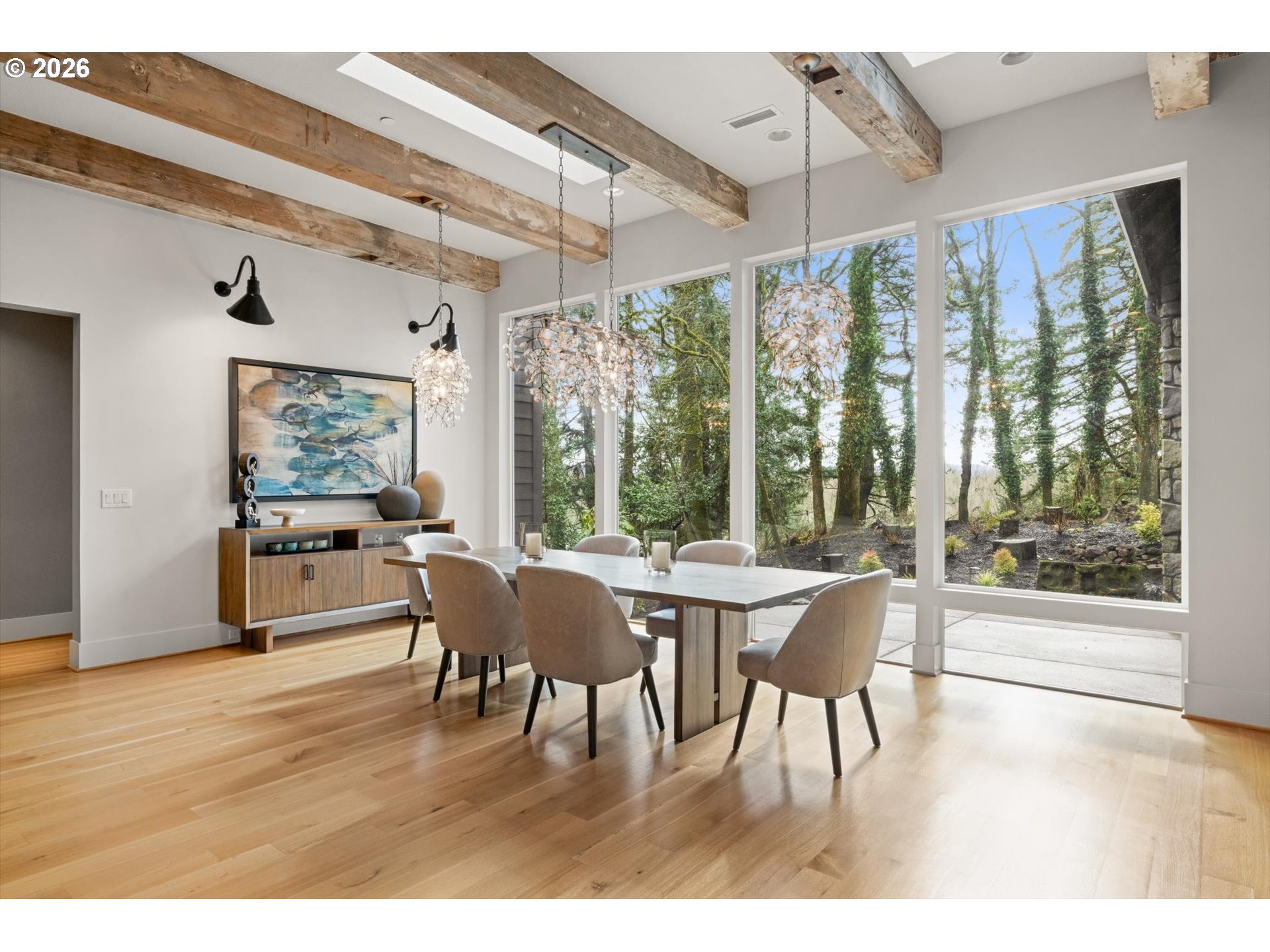 - Discover timeless craftsmanship and luxurious living in this impressive 5-bedroom, 4-bath residence—5,461 sq ft on 2.06 private acres in sought-after Camas. Minutes from downtown, scenic trails, and the Steigerwald Wildlife Refuge, the home blends peaceful seclusion with everyday convenience.Interior highlights include vaulted ceilings with exposed beams, rich hardwood floors, and floor-to-ceiling windows that fill the home with light. The gourmet kitchen features designer appliances, marble counters, a walk-in pantry, and refined finishes. Three gas fireplaces provide warmth and ambiance, while the main-level primary suite offers comfort and privacy.Practical and thoughtful touches include a central vacuum system, generous bedroom sizes, and versatile living areas ideal for entertaining or multigenerational living. Outdoors, enjoy naturally landscaped grounds with a gas fire pit, a large driveway with ample parking, and a heated detached workshop with a half bath—perfect for hobbies or a home business.Situated in the top-rated Camas School District, this exceptional property combines style, space, and comfort in one of Southwest Washington’s most desirable communities.