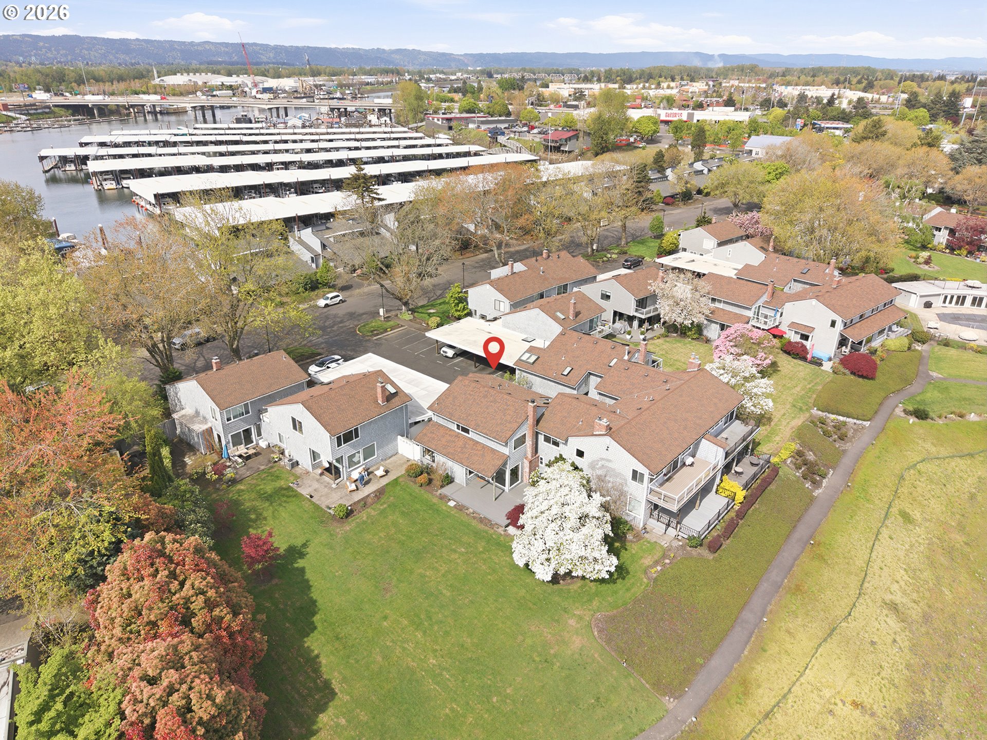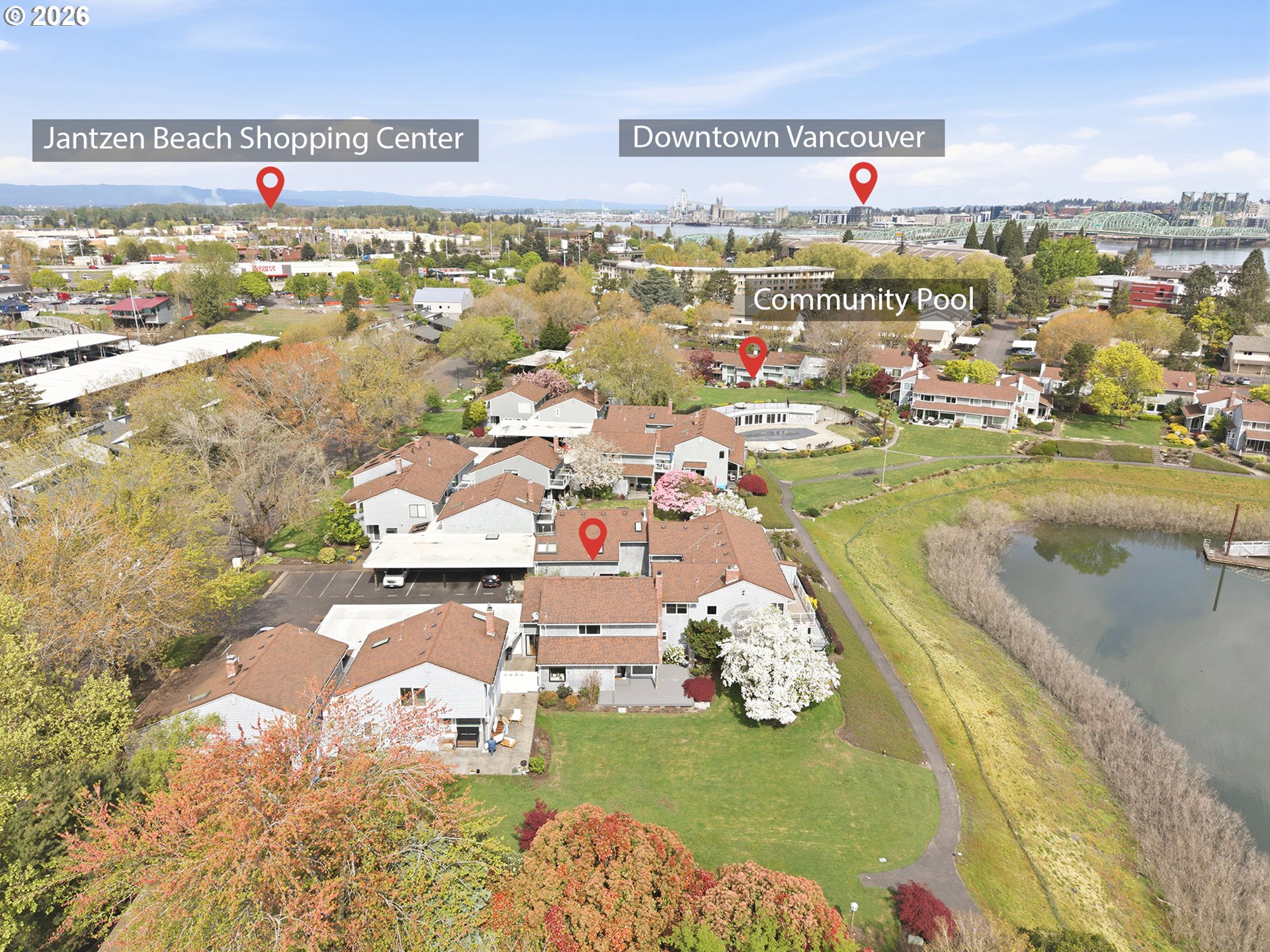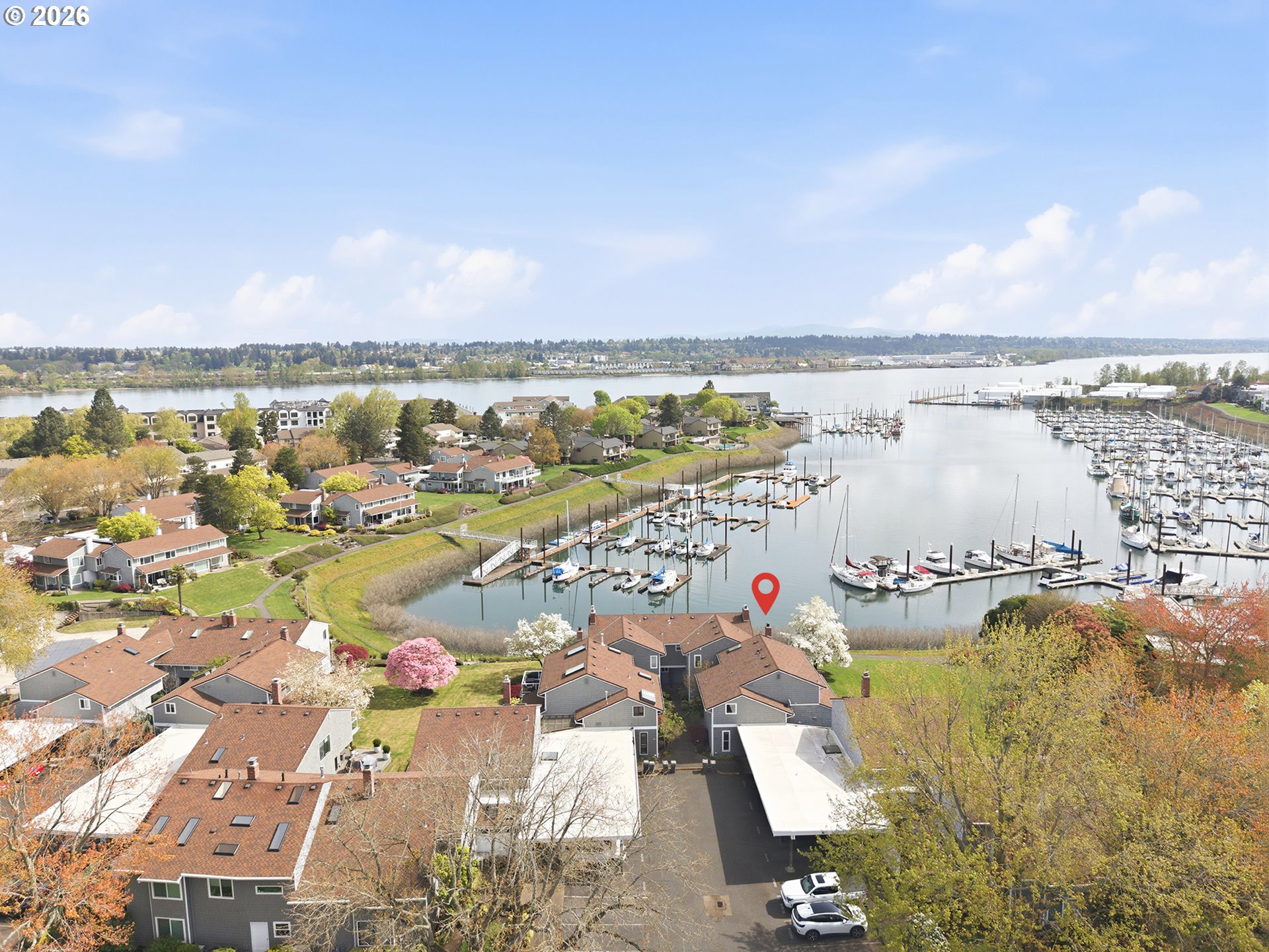 - Welcome to island living with direct views of Hayden Bay! This corner (B) unit is a private waterfront home and has been beautifully done with tile and hardwood floors throughout, and large picture windows to take in the amazing views from the majority of the home. There is a spacious kitchen with all Jenn-Air appliances as well as a large island that has extra storage and power. Off of the living room and kitchen you have a beautiful partially covered deck space with new trex deck and views of the bay with a walking path that will take you directly to the community pool and around the bay. You have the option to have the primary on the main, or a secondary living space, as well as a primary on the second floor that has a large walk-in closet with extra storage under the built-in vanity. On the second floor you have the two bedrooms, a full bathroom, and a bonus room that could be used for an office, storage, hobbies, or whatever you'd like! There is an abundance of storage throughout the home, and on the exterior you have a lightly used, shared passthrough with locking gates on either side and a small storage shed. The ring camera and ring doorbell that are currently at the home are included with the home as well. The RiverHouse Home Owners are an active HOA that take pride in their community, and it shows. You also have great proximity to nearby shopping, restaurants, PDX, the Vancouver Waterfront, and fun activities. Come take a tour and picture yourself living the island life! [Home Energy Score = 5. HES Report at https://rpt.greenbuildingregistry.com/hes/OR10247612]