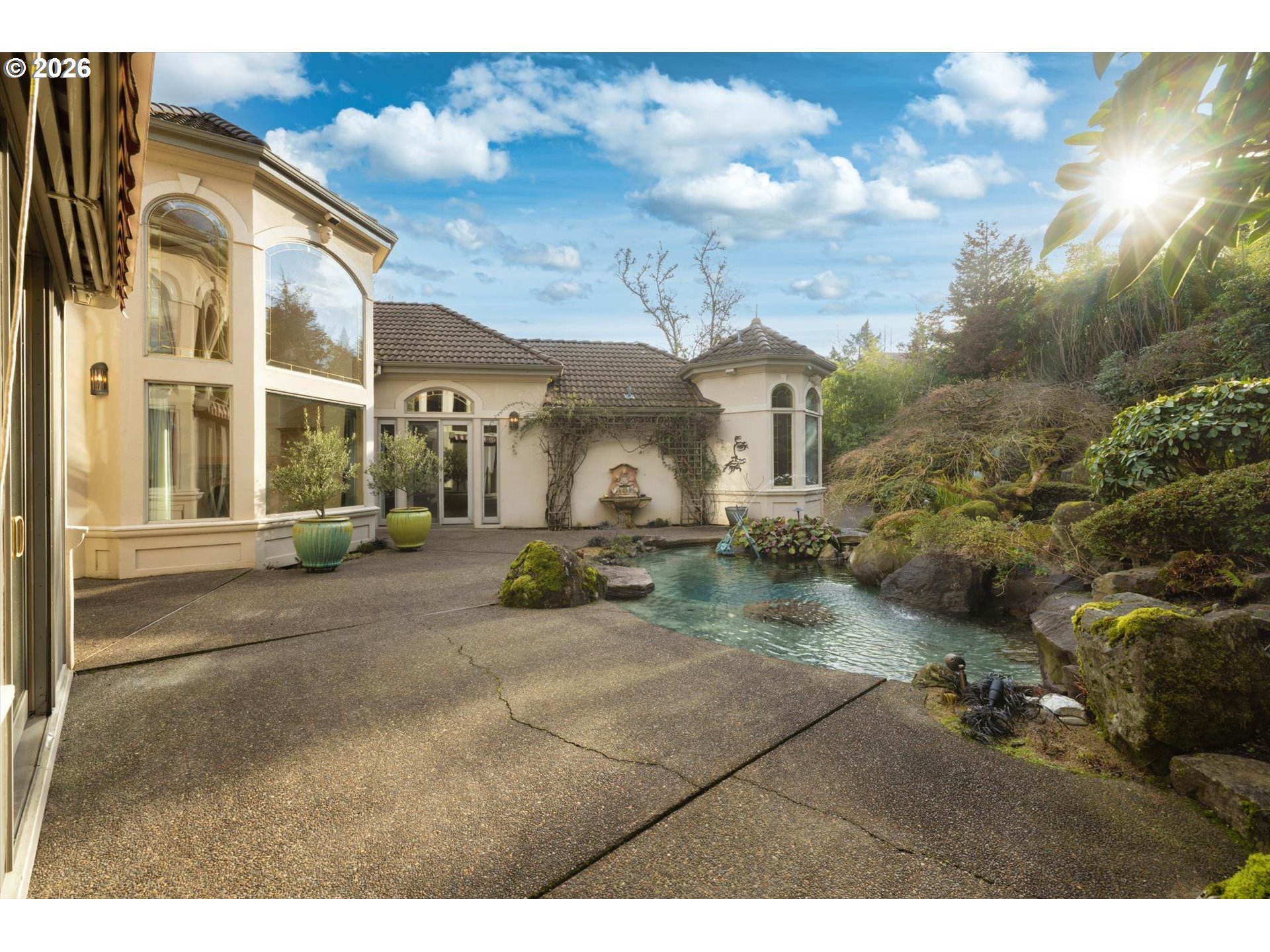 - Perched on a private Lake Oswego cul-de-sac, this architecturally inspiring 4,963-sq-ft residence is surrounded by renowned Kurisu International landscaping featuring sculpted rockwork, a cascading waterfall, and a tranquil dipping pool. Built in 1994 and celebrated as a Street of Dreams home, the design blends intellect and imagination with expansive, sun-filled living and dining rooms, a private study, and a gourmet kitchen ideal for entertaining. The luxury “Best of Show” primary suite showcases spa-like finishes and curated art niches, while a loft and two adjacent bedrooms complete the upper level. Offering 3 bedrooms and 2.1 bathrooms, the home also features an exceptional oversized garage accommodating up to five cars, extending approximately 60 feet deep—perfect for large RV or collector storage—making this property a rare fusion of design, function, and setting.