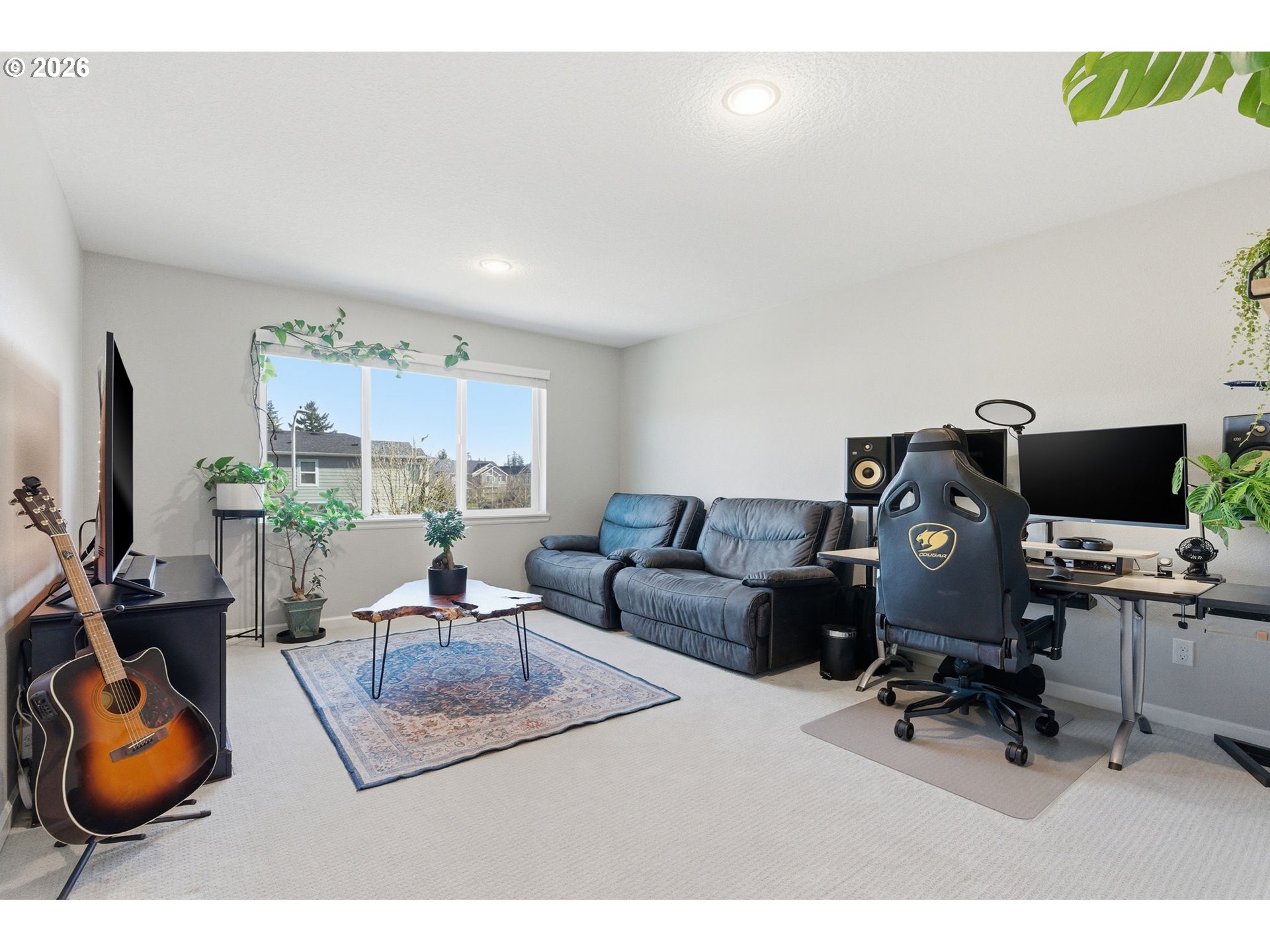 - Set against peaceful greenspace with Rood Bridge Park just beyond the backyard, this 2,716 sq ft home offers a rare blend of privacy and connection to nature. Built in 2017, the great room concept creates a warm, welcoming space to gather, highlighted by a cozy gas fireplace and a spacious kitchen with a large island ideal for entertaining. The low-maintenance backyard features turf for effortless outdoor enjoyment, while the HOA maintains the front yard for added ease. Upstairs, generously sized bedrooms are thoughtfully spread out to provide privacy, complemented by a large bonus room and an additional loft reading nook. Modern conveniences include two EV chargers in the garage, making this home both functional and future-ready. Located in the Riverstone community, this home delivers comfort, space, and a true park-side lifestyle.