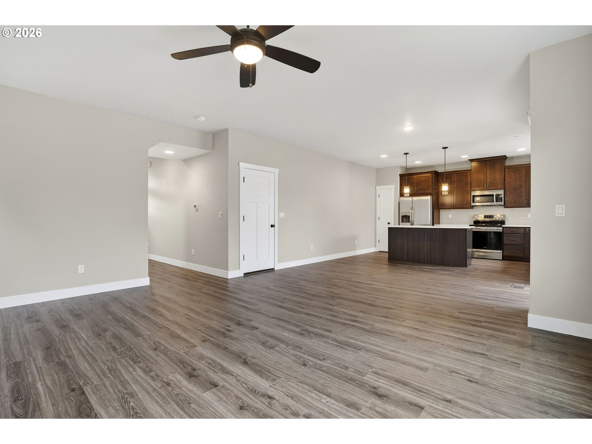- Move in ready home built in 2019 & currently thoughtfully refreshed. This 3-bedroom, 2.5 bath, with a flex space loft combines modern finishes & offers flexible living spaces designed for today's lifestyle. Step inside & discover brand new laminate flooring & carpet throughout along with fresh interior paint. The main level features an open concept connecting the living room, dining area & kitchen which makes it ideal for everyday living as well as entertaining! The kitchen features quartz countertops, stainless steel appliances & abundant cabinetry. Moving to the upstairs you will find a versatile loft space which provides the perfect bonus area for a home office, media room, playroom or second living space. The spacious primary suite offers a private retreat with an en-suite bath & walk in closet. Two additional bedrooms, a full bathroom & laundry room are also featured on the upper level. Enjoy year-round comfort with both a built-in fireplace & central A/C. Step out on the back patio & enjoy a fully fenced backyard ideal for play, pets or relaxing. Schedule a tour today & see if this home in the desirable Regan Hill Community is the one for you!