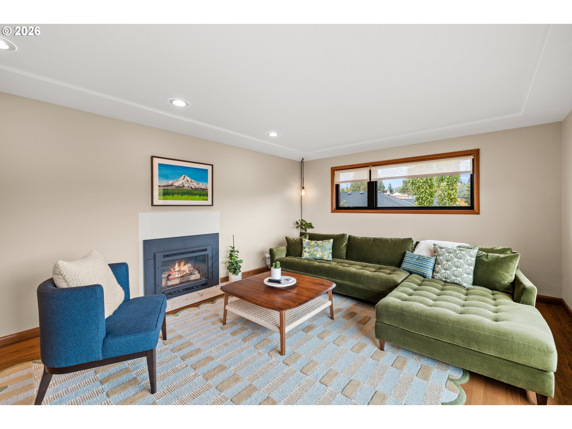 - This 1955 classic offers true one level living with a lower level for recreation, hobbies, play area and storage. Clean lines,expansive windows and gentle updating make this South Burlingame home easy to love. Generous east-facing living and dining areas capture morning light and frame a peek-a-view of Mt. Hood, with custom remote-controlled blinds for effortless privacy. The kitchen features solid-surface countertops, stainless steel appliances, abundant workspace, and a casual dining nook. The primary suite includes double closets and an ensuite bath with direct access to a private, enclosed hot tub—also reachable from the backyard deck. Two additional main-level bedrooms provide excellent space for sleeping, work, or play. Extensive updates include new Andersen Fibrex double-pane windows with custom hardwood trim throughout the main level, fresh interior and exterior paint, and an upgraded laundry room with new marmoleum flooring, washer/dryer, and generous storage. The private backyard is designed for year-round enjoyment, offering a covered deck, sunny patio, and terraced garden—ideal for gardening, entertaining, or quiet relaxation. The lower level retains original mid-century flooring and offers flexible, open spaces. The family room, complete with a wood-burning fireplace, is perfect for a home theater, library, or media space. A large adjacent flex room (10' x 31') will accommodates exercise equipment, hobbies, or just additional living area. This level also includes an office, a spacious mechanical/storage/workshop room, an additional storage room, and a half bath. All this is within a short distance to shopping, parks, Tryon Creek State Natural Area, Willamette Park and Boat Ramp, Lewis & Clark College/School, major hospitals, and abundant eateries. Less than 5 miles to downtown Portland, with easy access for westside commutes. This property has the rare combination of quality, location,and versatility. It's move-in ready and designed for modern living. [Home Energy Score = 3. HES Report at https://rpt.greenbuildingregistry.com/hes/OR10226313]