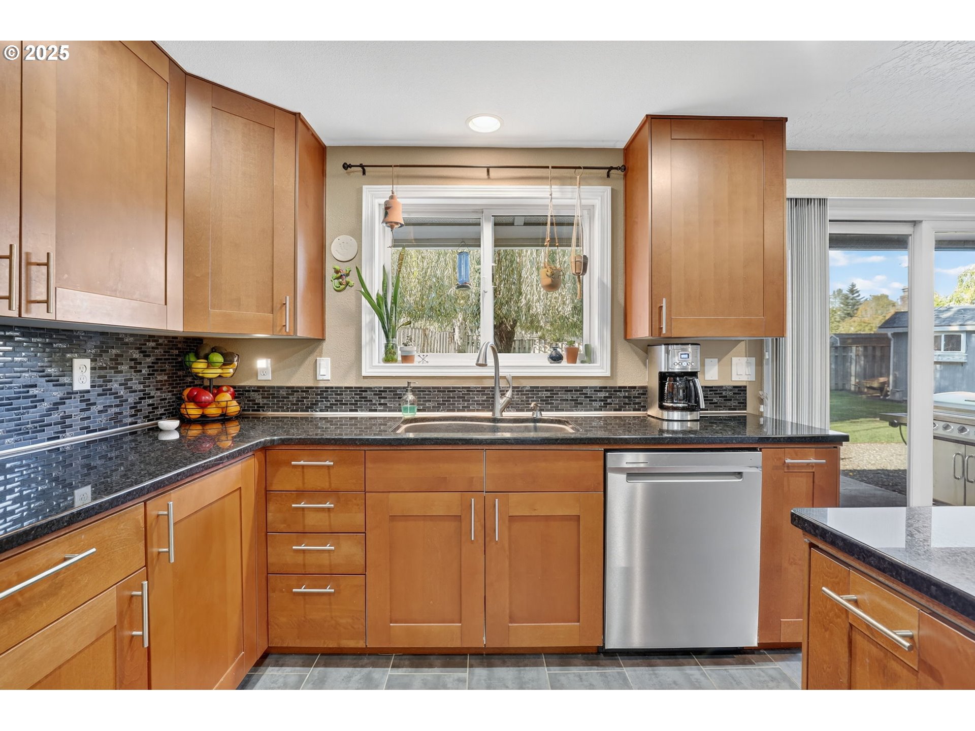 - Welcome to a well-maintained single-level home in the desirable Sweetbriar neighborhood. The 3-bedroom, 2-bath layout centers around an open great room and a gourmet kitchen with stainless appliances, gas range and hood, and extensive cabinetry offering both functionality and modern appeal. Engineered hardwoods, updated vinyl windows, and a newer roof showcase the owner’s pride and care throughout. The large lot provides excellent outdoor living with a spacious backyard suited for entertaining, gardening, or relaxation, plus RV or extra parking space. A shed and gas BBQ hookup add everyday convenience. Located on a quiet cul-de-sac (SE Stott Ct) near parks and walking trails, this home offers a private setting yet remains just minutes from I-84, shopping, schools, and dining. The primary suite opens to the backyard, and two secondary bedrooms share a well-appointed hall bath. A rare combination of location, layout, and condition—ideal for those seeking quality single-level living with generous outdoor space.