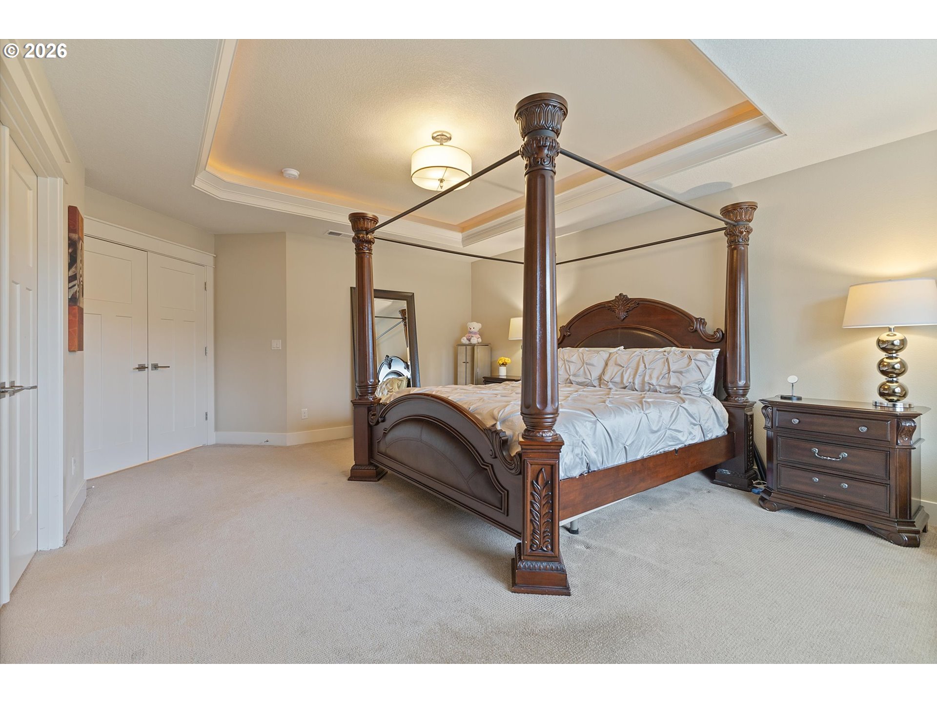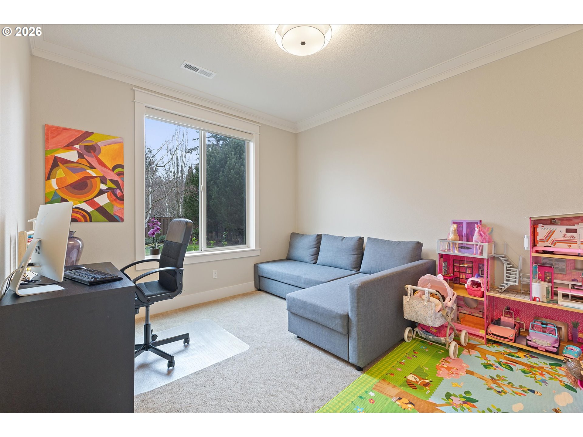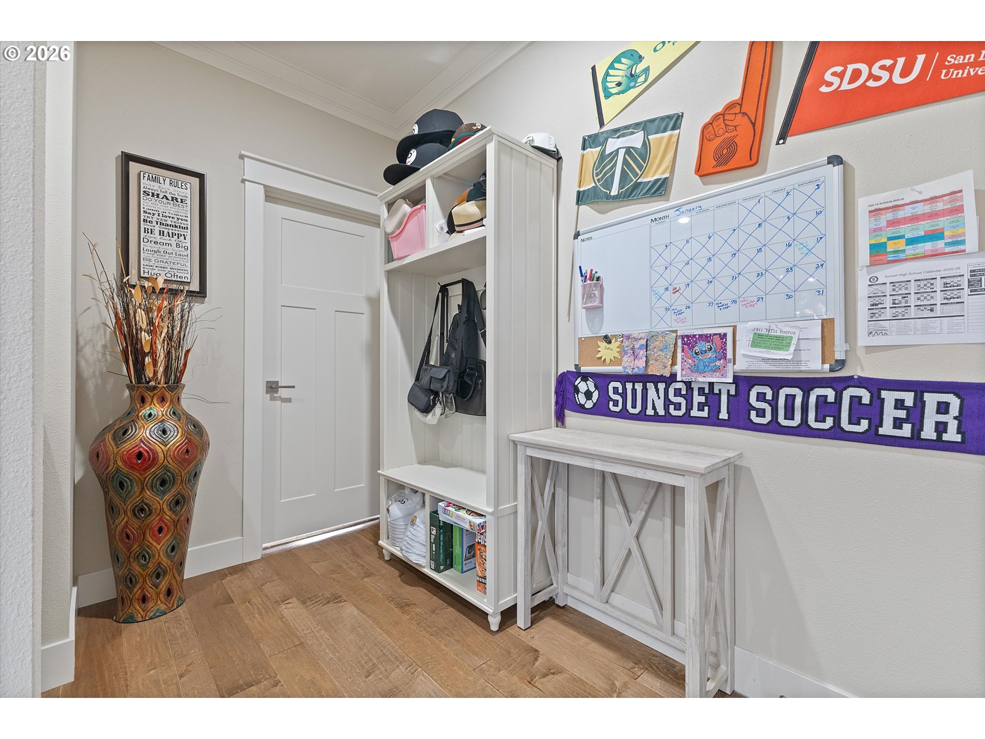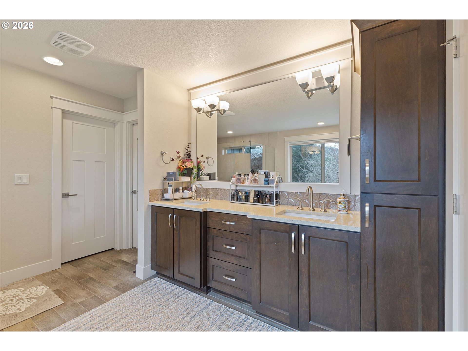- This special home backs up to open space, with wooded views. There are upscale finishes throughout the thoughtfully laid out floor plan. The entry and dining room feature high box beam ceilings and extended engineered hardwood flooring, creating a warm, elegant first impression. The kitchen offers a nice layout with extensive tile and premium finishes, opening to a great room with a full-height tiled fireplace and custom built-ins.Bathrooms include extensive tile work, a freestanding soaking tub, and a frameless glass shower. The bonus room includes a wet bar, and additional custom built-ins are found in the hall and bonus areas. A private guest suite on the main level adds flexibility. Easy outdoor living with the patio, firepit, and tree-lined green space beyond the lawn. Energy Performance Score provided by Energy Trust of Oregon. Upgraded light fixtures in places.