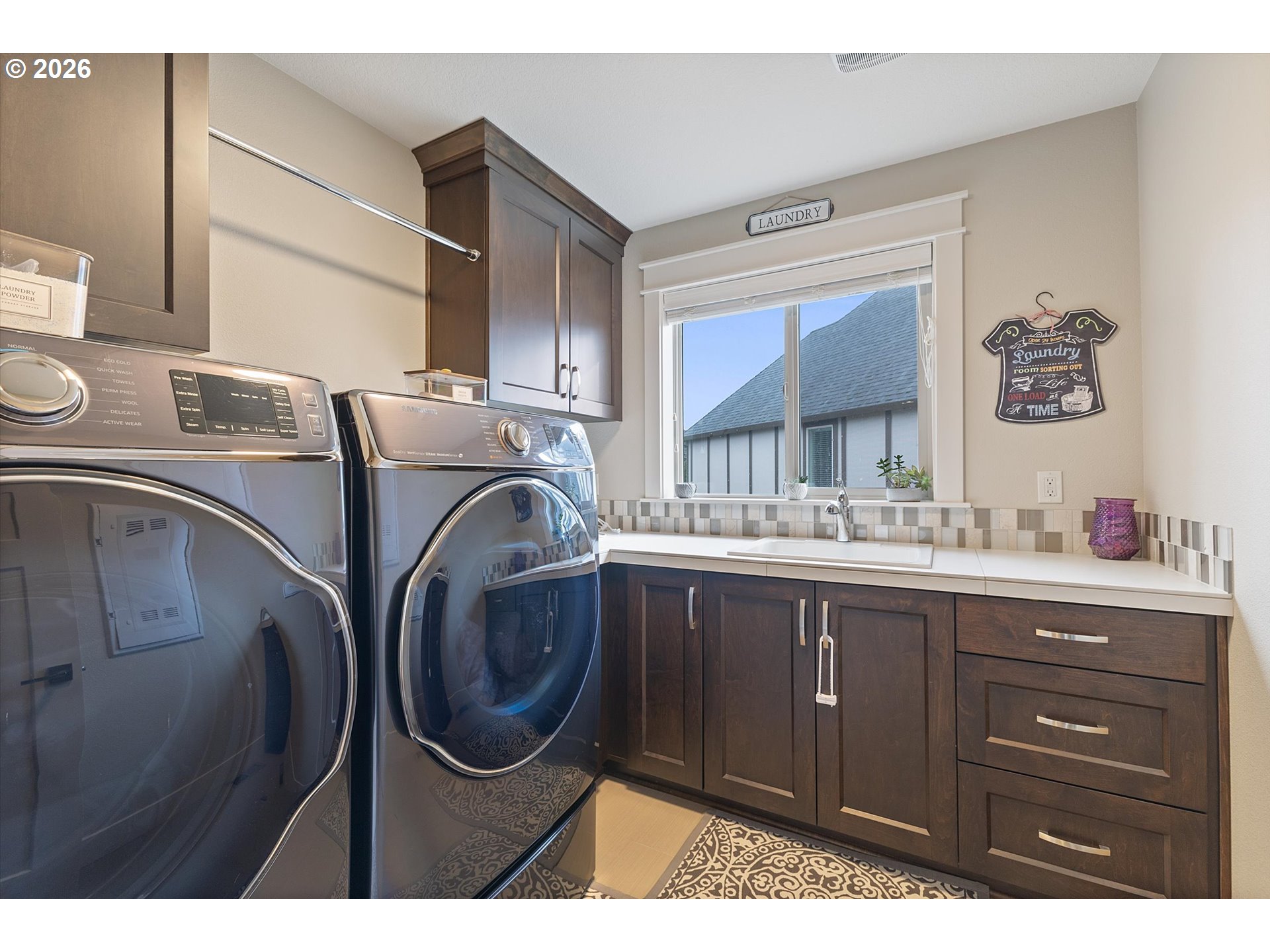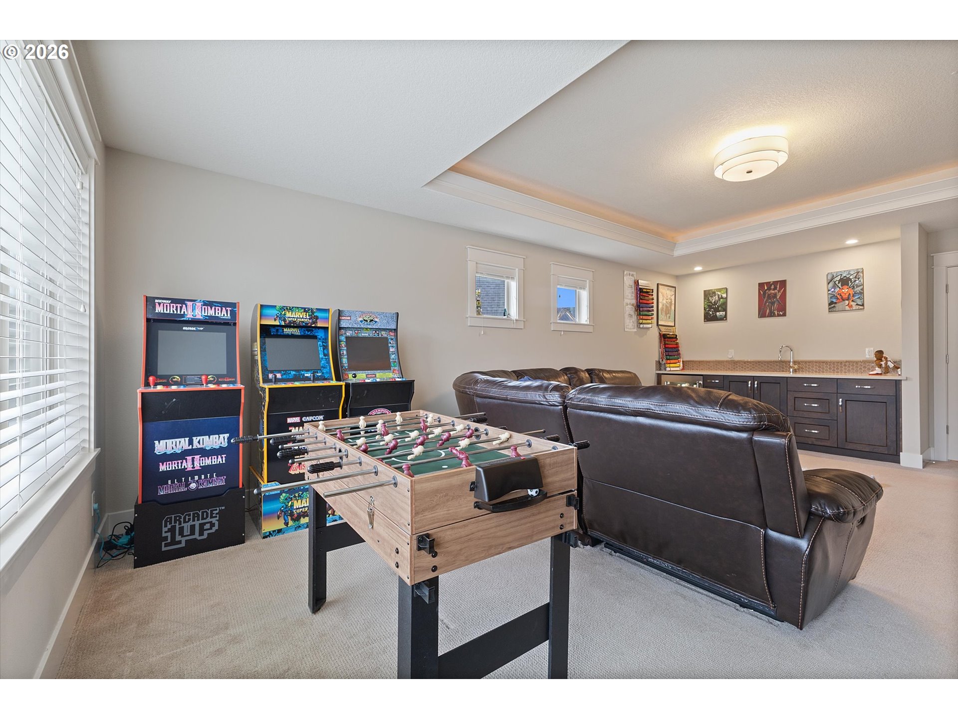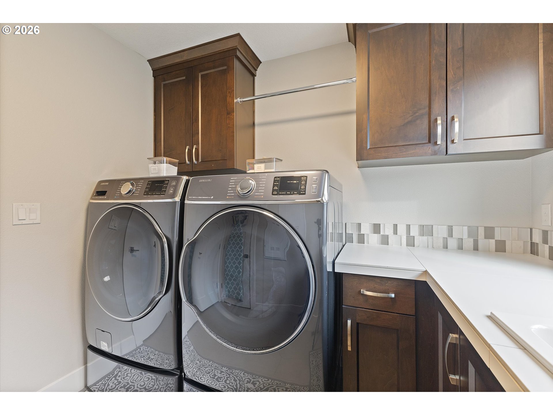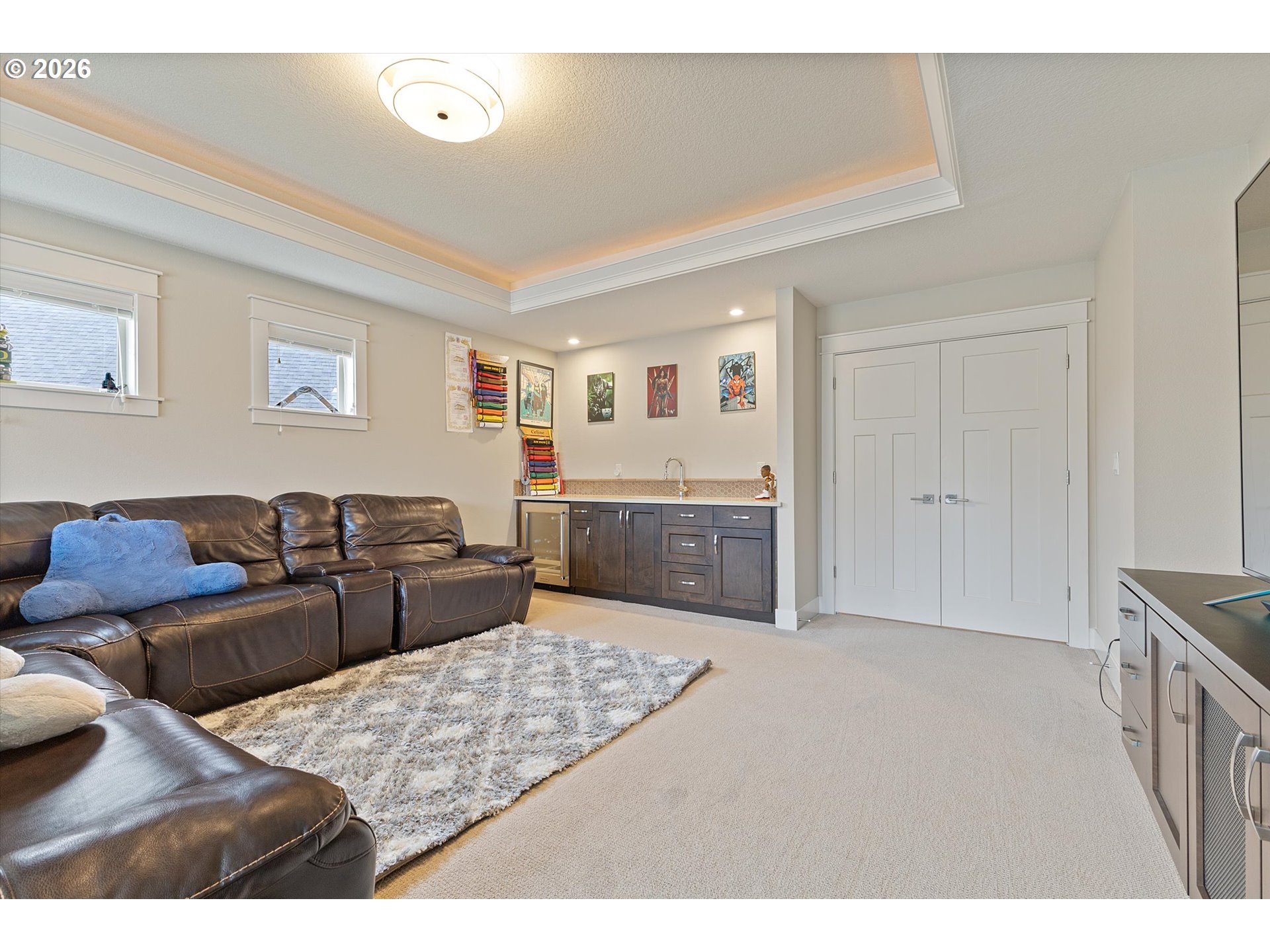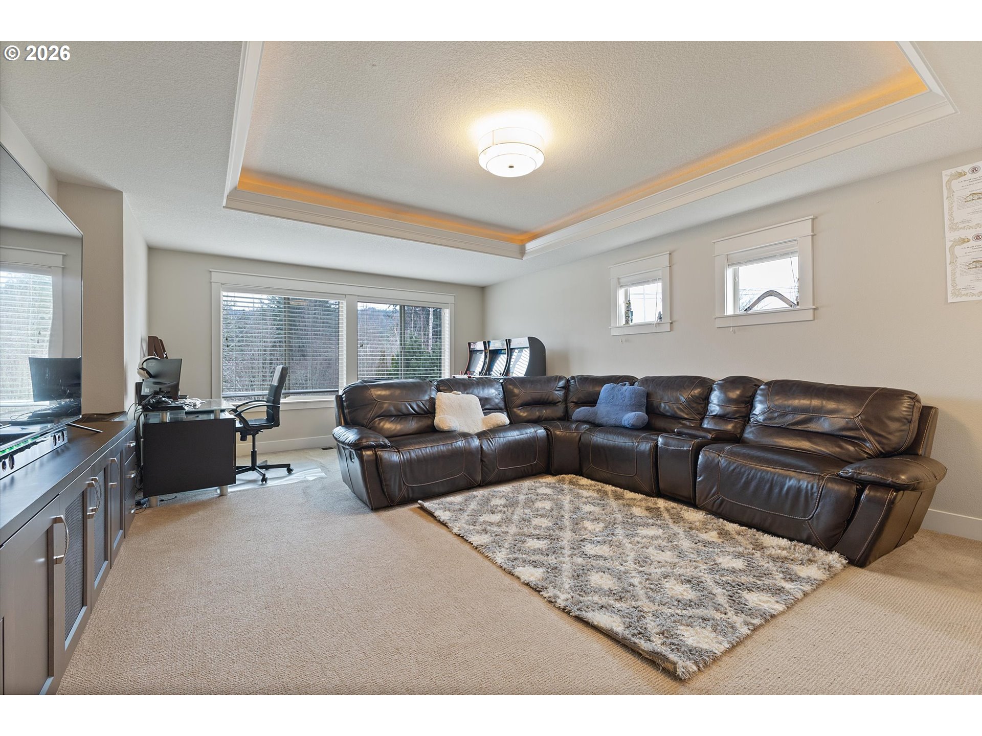 - This special home backs up to open space, with wooded views. There are upscale finishes throughout the thoughtfully laid out floor plan. The entry and dining room feature high box beam ceilings and extended engineered hardwood flooring, creating a warm, elegant first impression. The kitchen offers a nice layout with extensive tile and premium finishes, opening to a great room with a full-height tiled fireplace and custom built-ins.Bathrooms include extensive tile work, a freestanding soaking tub, and a frameless glass shower. The bonus room includes a wet bar, and additional custom built-ins are found in the hall and bonus areas. A private guest suite on the main level adds flexibility. Easy outdoor living with the patio, firepit, and tree-lined green space beyond the lawn. Energy Performance Score provided by Energy Trust of Oregon. Upgraded light fixtures in places.