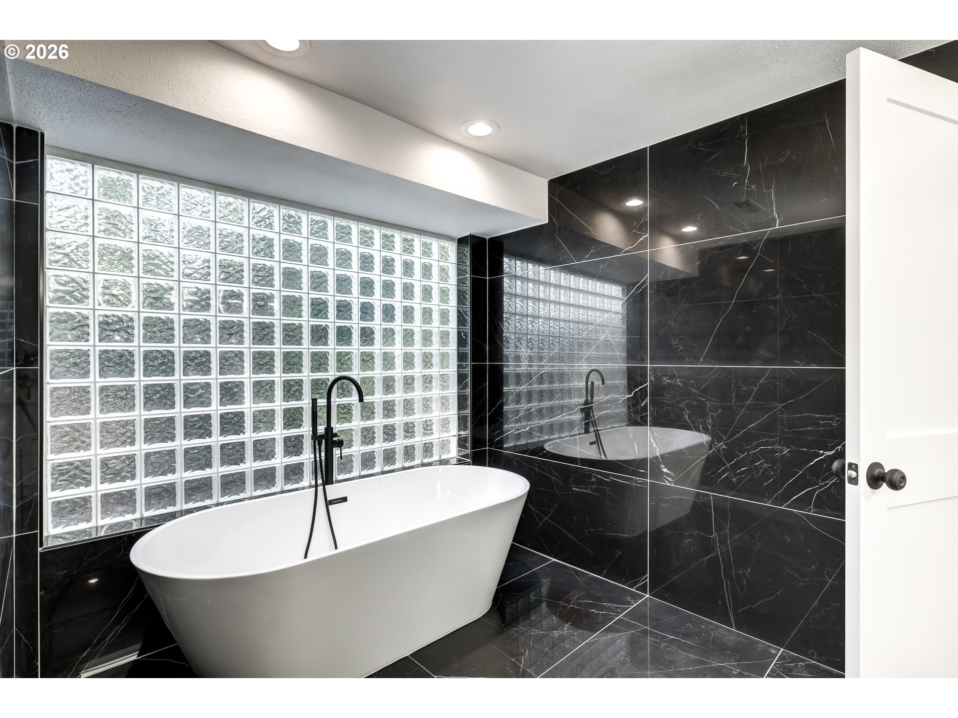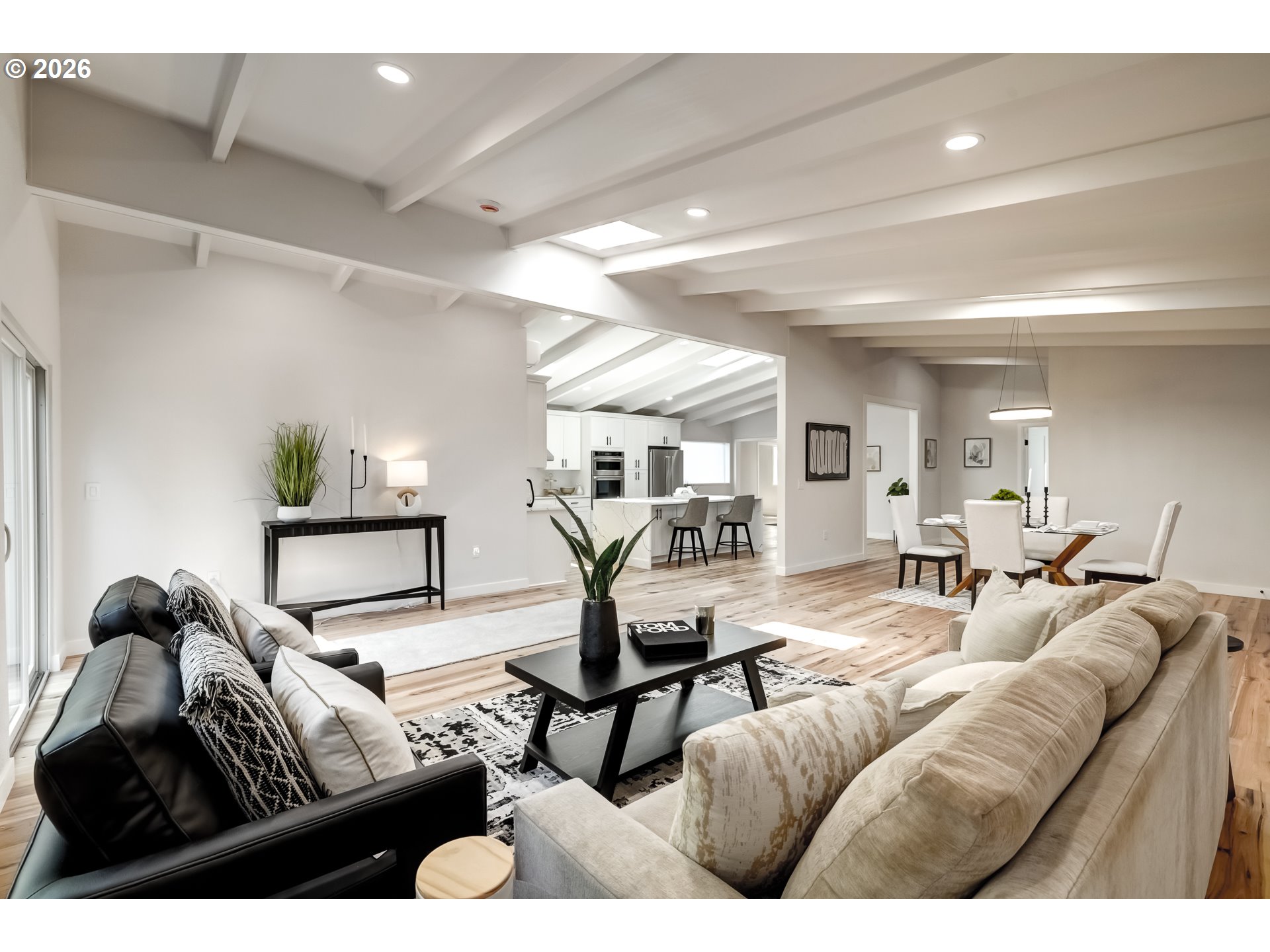 - Step into luxury living in this beautifully high end remodeled modern home, featuring 5 bedrooms + office & 4 bathrooms. Thoughtfully designed for both comfort & convenience, main level living with engineered hardwood flooring and high ceilings throughout. Big windows look into the beautiful, private, landscaped .37 acre fenced level yard. Beautiful new gourmet kitchen with waterfall island and Kitchenaid appliances, opens to living room with high ceilings. Spacious light and bright formal living and dining rooms with skylights. Office, primary suite and 2nd bedroom all on the main floor. 3rd bedroom, the other primary suite and 5th bedroom or bonus room with closet on upper level. Both primary suites with walk in closet and freestanding bathtub. Multiple storage areas. 4 full bathrooms. Amazing outdoor space in front of the home as well as in the back yard. This home comes with all new appliances, including washer/dryer and freestanding refrigerator. High end remodel, inside & out completed in 2025. New HVAC, new plumbing, new tankless water heater, new engineered hardwood flooring, new carpet, new interior and exterior paint, new kitchen cabinets, Quartz countertops and waterfall island, faucet fixtures and hardware with new kitchenaid Stainless Steel appliances, new bathroom vanities with tile shower and tub, new dimmable light fixtures, partially new fence, new landscaping and sprinkler. Electrical upgrades with EV charger ready. Exceptional Raleigh Park location, walk to Jesuit & OES, convenient to Nike and 15 min to downtown PDX. Unincorporated Washington County taxes with Portland 97225 address.