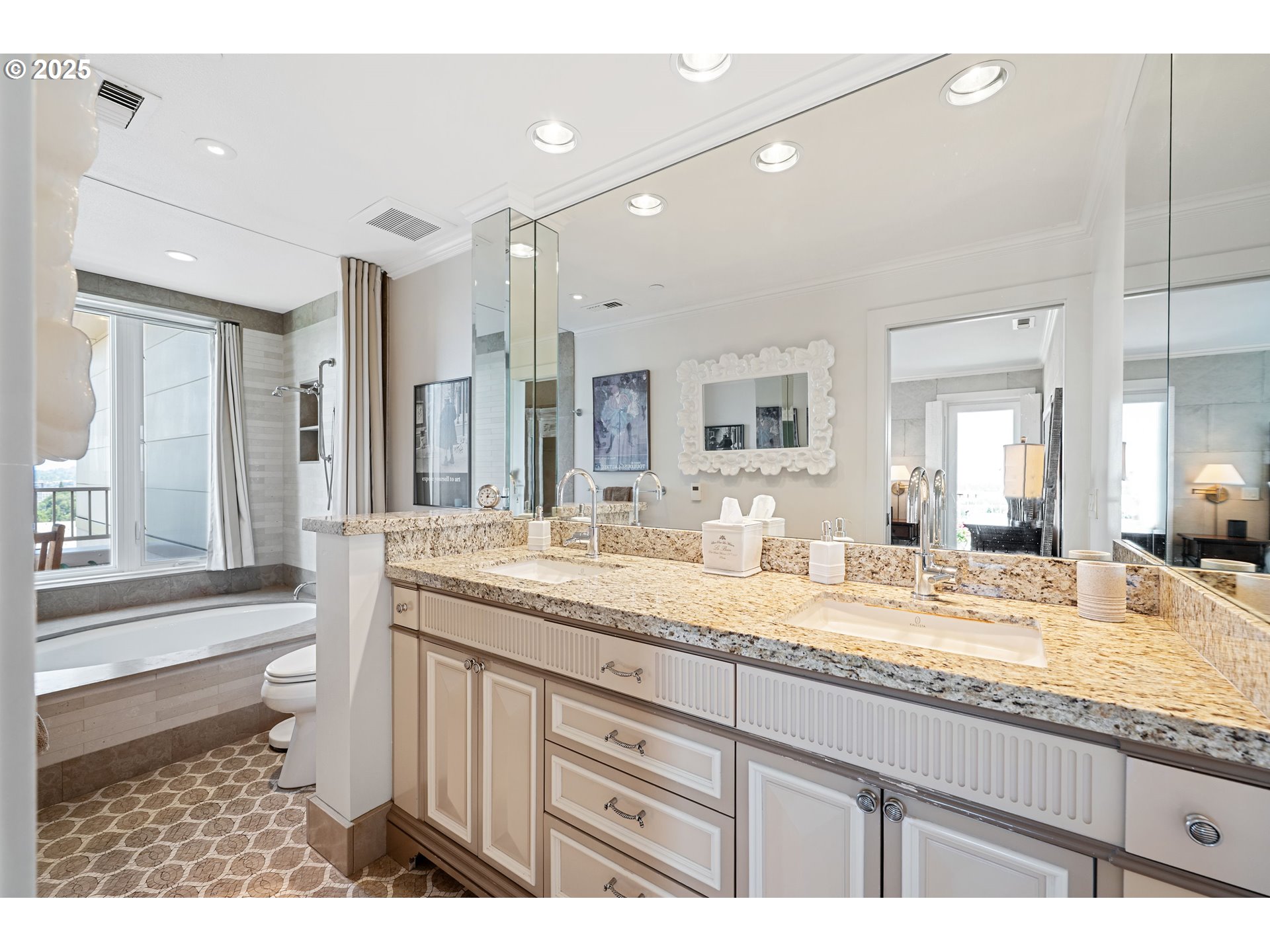 - Timeless Elegance and Panoramic Views. Located above Westover corridor in Portland’s Nob Hill neighborhood, this 2-bedroom TOP FLOOR condominium home offers expansive views of the city skyline and 4 mountains. With thoughtful updates and quality finishes, the home combines modern comfort with classic style. The open-concept living area is filled with natural light from large windows and opens to a private balcony, creating a smooth transition between indoor and outdoor spaces. The kitchen is equipped with high-end appliances, custom cabinetry, pantry and adjoining family room. The primary suite includes a walk-in closet, a well-appointed bathroom with heated floors and two private balconies. The second bedroom offers flexibility with a built-in Murphy bed & custom cabinets—ideal for guests or a home office. Just steps from NW 23rd Avenue, this home is close to some of Portland’s best restaurants, shops, parks, and walking trails, offering a convenient and comfortable urban lifestyle with a peaceful backdrop.