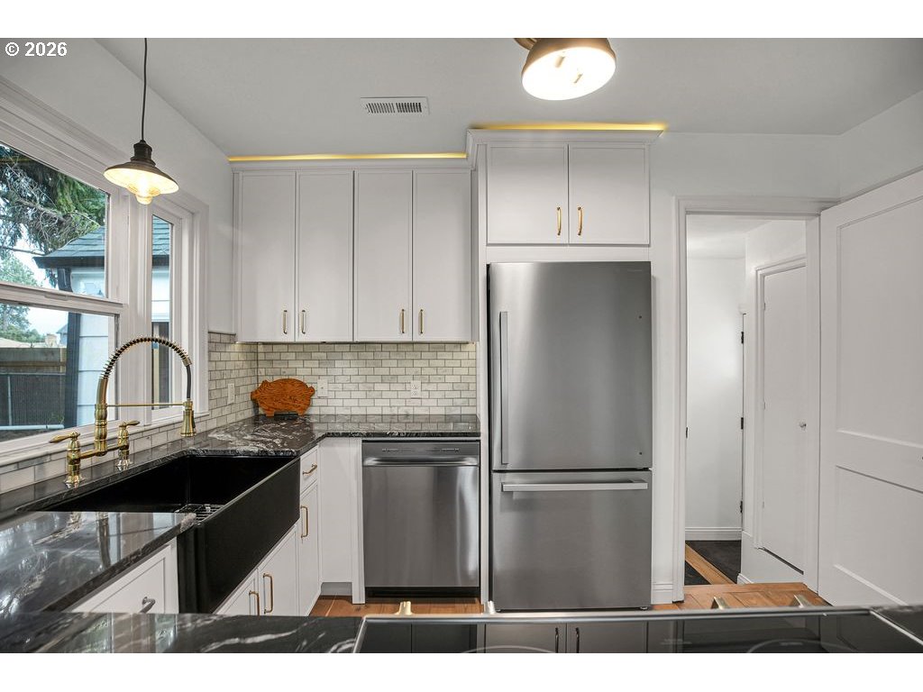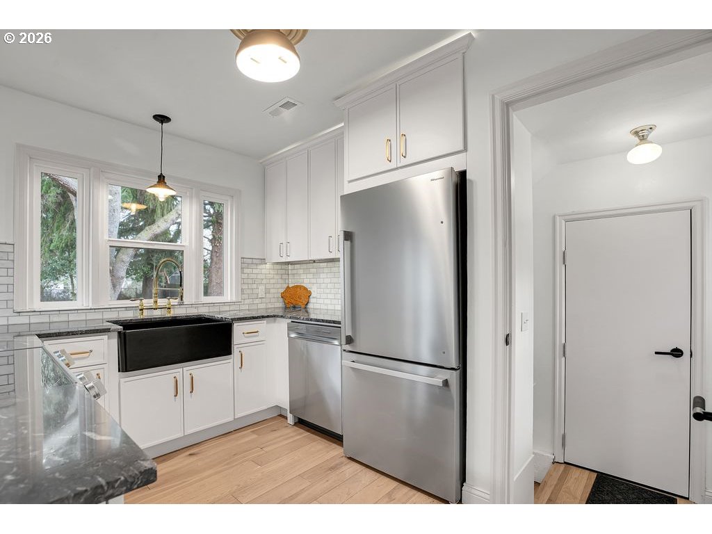 - Discover the ideal balance of historic architectural integrity and contemporary updates in this meticulously remodeled 1948 Cape Cod/Mid-century modern. Situated in one of Portland's most sought after neighborhoods, this residence offers a turnkey lifestyle for the buyer who appreciates both vintage charm and modern efficiency. The main level welcomes you with an abundance of natural light through an expansive picture window, highlighting a centerpiece fireplace that anchors the living space. The professional-grade kitchen flows seamlessly into the dining area, where French doors offer a transitional bridge to the expansive outdoor living space. The primary bathroom features custom title work, radiant heated floors, and a heated towel rack for chilly PNW mornings. The fully finished basement significantly expands the homes footprint, providing a versatile secondary living area and added convenience of a brand-new full bathroom. This space is perfectly suited for a guest suite, home office, or media with a separate entrance. The property sits on a deep lot with a small paved patio. Moments away from the Dekum Triangle, Woodlawn Park, and the University of Oregon(Concordia)campus. Steps to local places including Breakside Brewery, Tough Luck, Ranch Pizza and P&Q Market with effortless commutes to Downtown Portland and PDX airport. You don't want to miss this one!! [Home Energy Score = 5. HES Report at https://rpt.greenbuildingregistry.com/hes/OR10239540]