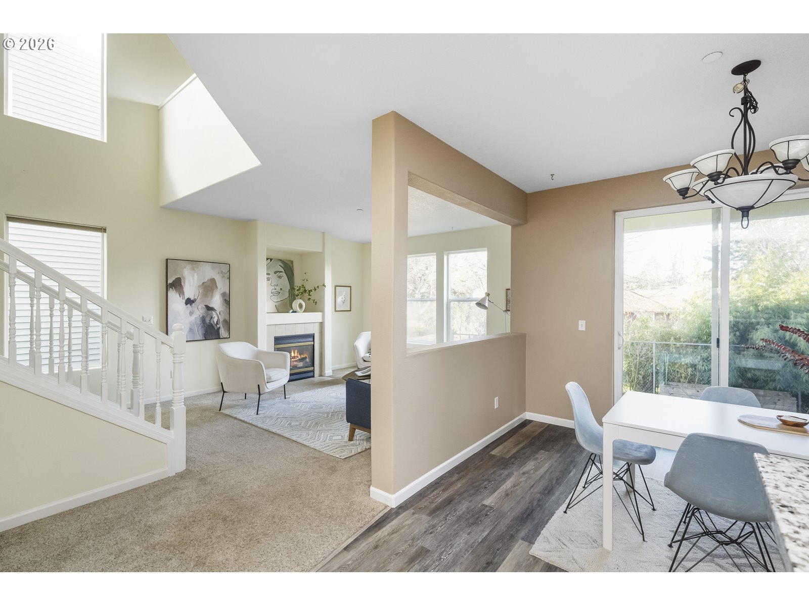 - Tucked away on a quiet, dead-end street and bordering a beautiful protected greenspace, this Milwaukie home is the kind of place that instantly feels like a retreat. Inside, you’ll find a spacious, light-filled layout designed for both everyday living and easy entertaining. The main floor welcomes you with a spacious living room anchored by a cozy gas fireplace—perfect for movie nights or rainy Northwest afternoons. Just beyond, the dining area opens to the back deck and low-maintenance, fenced yard through sliding doors. Artificial turf makes upkeep a breeze and raised beds are ready for your garden. The kitchen is both stylish and functional, featuring granite countertops, a pantry, and a convenient eat bar for morning coffee or quick meals. A half bath and a mud/laundry room connecting to the attached two-car garage round out the main level. Upstairs, the home truly shines with a large primary suite complete with a walk-in closet and full bath with walk-in shower; plus two additional bedrooms and another full bath. A spacious family or bonus room adds flexibility—think playroom, media space, or home office. And the cherry on top? Paid-off solar panels that help keep utility costs refreshingly low. Peaceful setting, great layout, and smart efficiency—this one checks all the boxes. OPEN: Saturday (1-24) from 1-3:00 and Sunday (1-25) from 12-2.