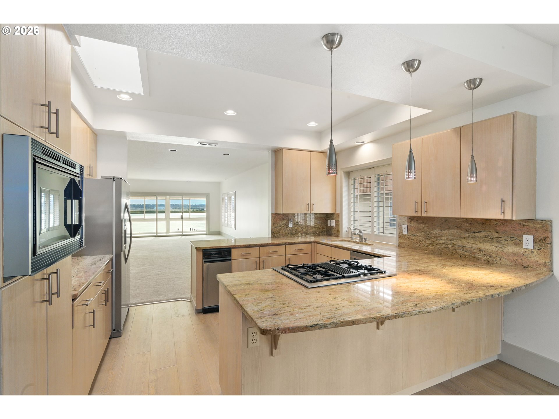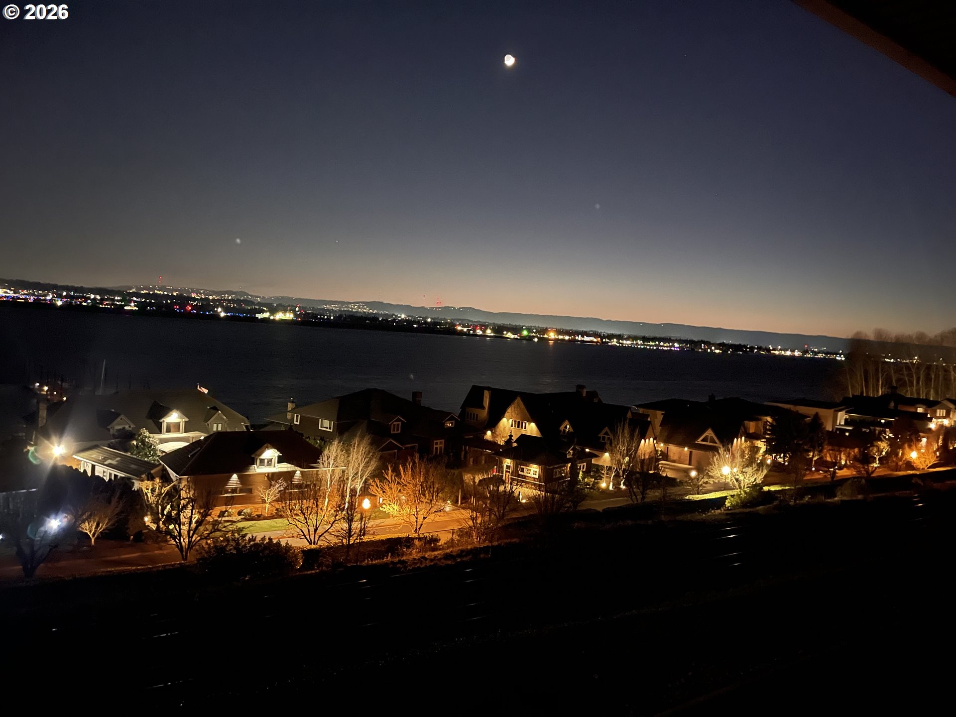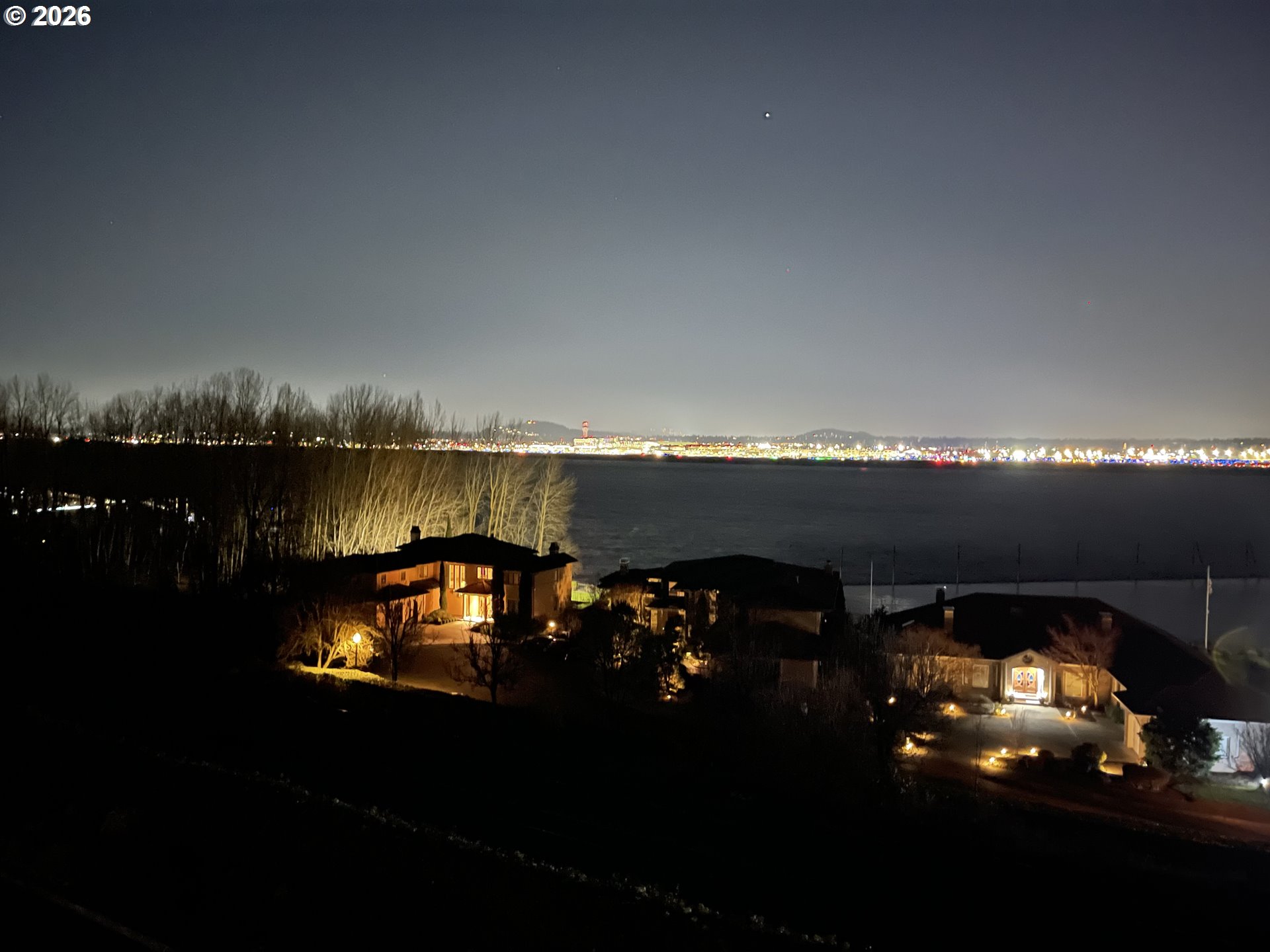 - Spectacular unobstructed views. This luxury condominium boasts views of the Columbia River and the lights of Portland plus the Portland Airport. Enclosed deck/balcony with sliding windows. A view from almost every room. High ceilings, Granite countertops in kitchen. Great room syle dining and living room. Two gas fireplaces. Stylish upscale Remodeled Owner's Bath including a free standing jetted tub and walk-in shower. Double sinks and custom cabinets. Custom walk-in closet, separate laundry. Attached two car garage.