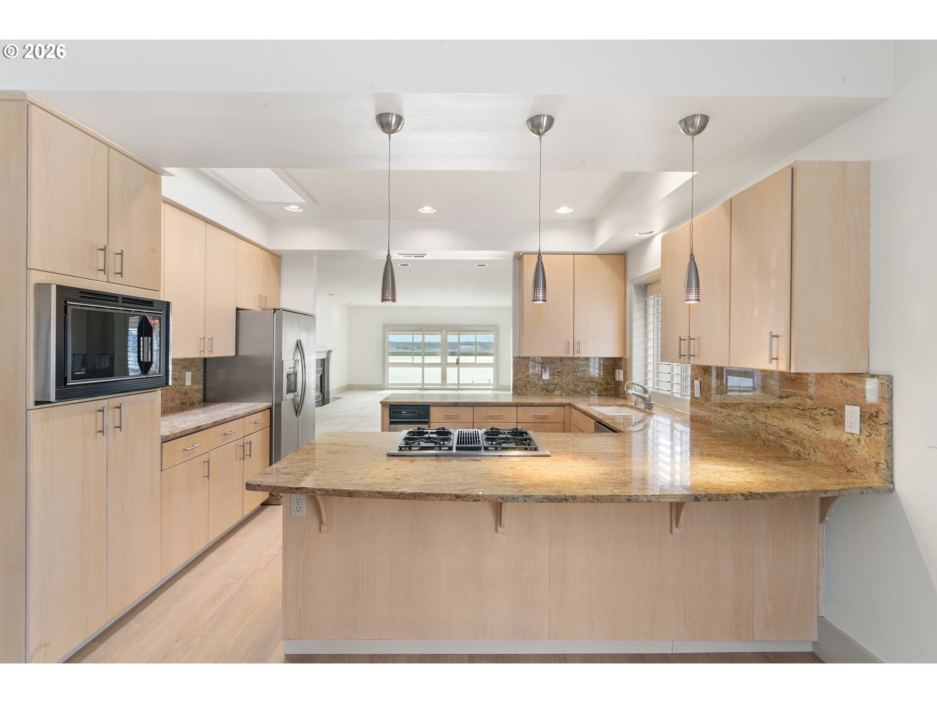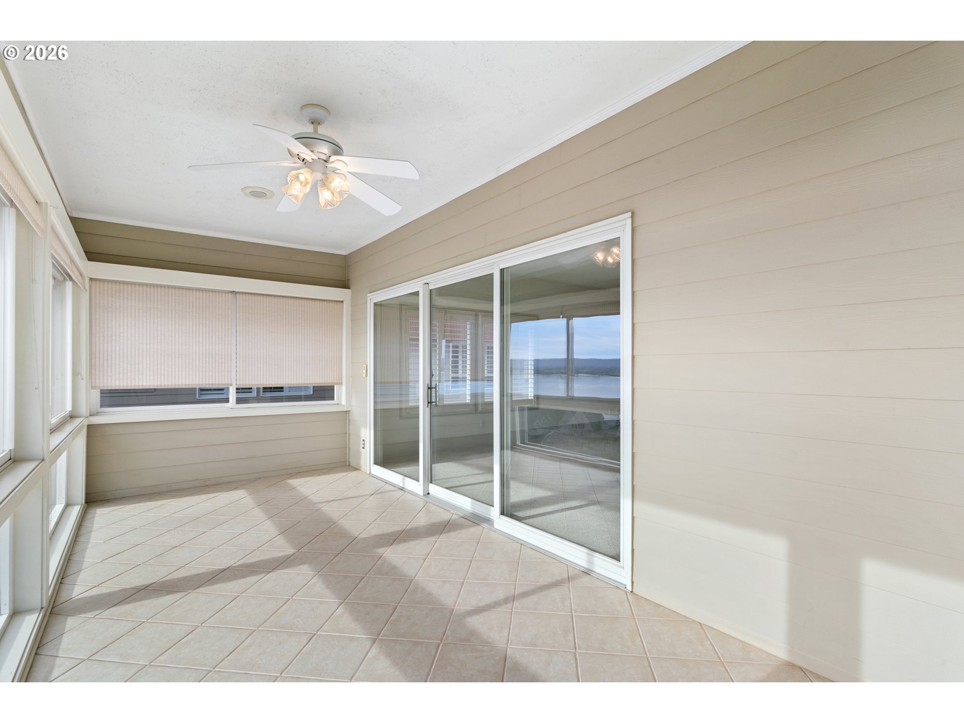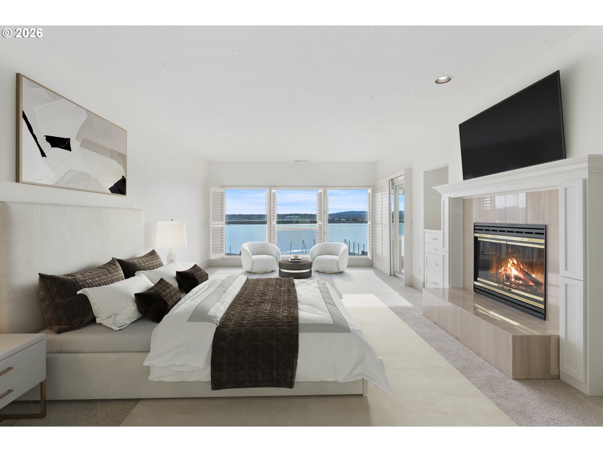 - Spectacular unobstructed views. This luxury condominium boasts views of the Columbia River and the lights of Portland plus the Portland Airport. Enclosed deck/balcony with sliding windows. A view from almost every room. High ceilings, Granite countertops in kitchen. Great room syle dining and living room. Two gas fireplaces. Stylish upscale Remodeled Owner's Bath including a free standing jetted tub and walk-in shower. Double sinks and custom cabinets. Custom walk-in closet, separate laundry. Attached two car garage.