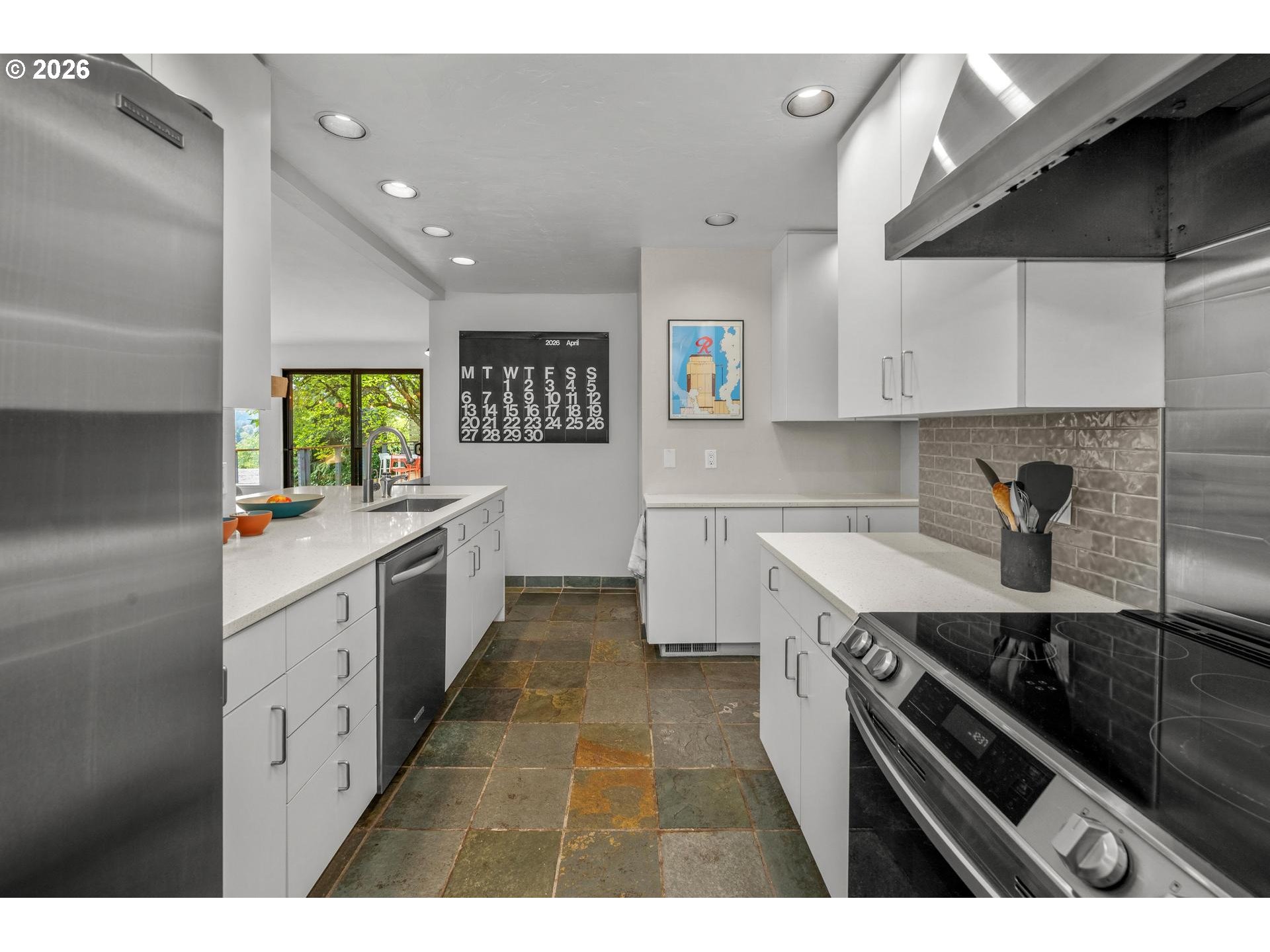 - Beautifully renovated and move-in ready, this stunning one-level home in Southwest Portland’s Carson Heights offers modern comfort with timeless charm. Enjoy brand-new living room hardwood floors, upgraded insulated windows, and a stylish sliding glass door that fills the space with natural light. The gourmet kitchen, featuring stainless steel appliances, a new induction stove, quartz countertops, and slate tile floors, seamlessly connects to a vaulted family room with a sleek contemporary Jotul gas stove - a relaxing environment! Step outside to a private backyard complete with a spacious deck, a flat grassy area, and serene territorial views. Impeccable updates continue throughout with updated baths, built-in features, Nest thermostat, newer washer & dryer, a durable metal roof with copper gutters, and a new A/C system for summer comfort. Over $40,000 in upgrades ensure this home is both functional and beautiful. Located just minutes from Tryon Creek State Park, Lewis & Clark College, Lake Oswego, and downtown Portland, you’ll have access to the best of nature and city living. Don’t miss this rare opportunity to own a thoughtfully updated home in a highly sought-after neighborhood! OPEN SAT 12 -2 PM.