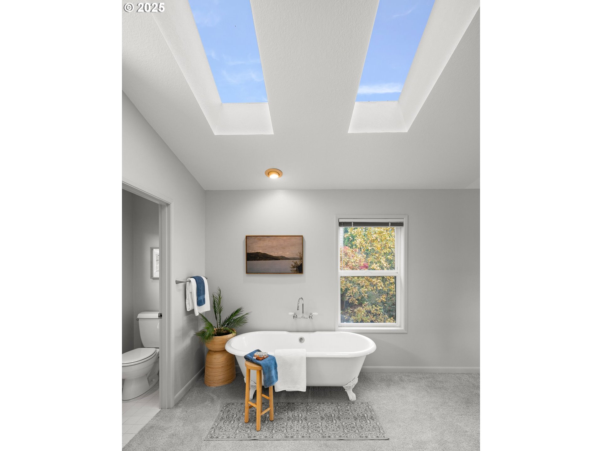 - **OPEN HOUSE SAT & SUN 11/8-9 10-12** Grand South and East-Facing Views from the main and upper floors of this close-in SW mid-century! Enjoy the newly-refinished hardwood floors, fresh interior paint and wood-burning fireplace. Updated kitchen with recycled glass countertops, stainless steel appliances and built-in desk. Spacious primary suite boasts views of Mt. Hood, the Willamette River and Sellwood Bridge with balcony for sunrise coffee dates, a clawfoot soaking tub, double vanity and big walk-in closet. Clean, unfinished walk-out basement with windows and high ceilings for woodshop, art space and storage plus a one-car garage. Private yard with deck in rear, sunny raised beds in front. Systems updates include 200-amp panel, newer electric water heater, 2019 high-efficiency gas furnace and copper plumbing throughout home. Quick access to I-5, I-405, Hwy 26 and transit. Close to downtown, PSU, John's Landing shopping and restaurants, South Waterfront, the Willamette River, Marquam hiking trails and OHSU. [Home Energy Score = 2. HES Report at https://rpt.greenbuildingregistry.com/hes/OR10242505]