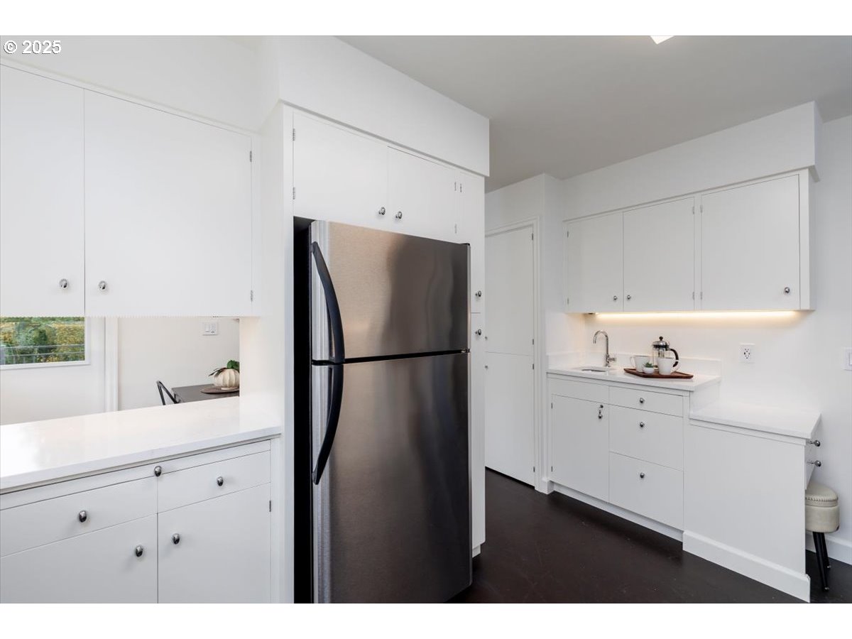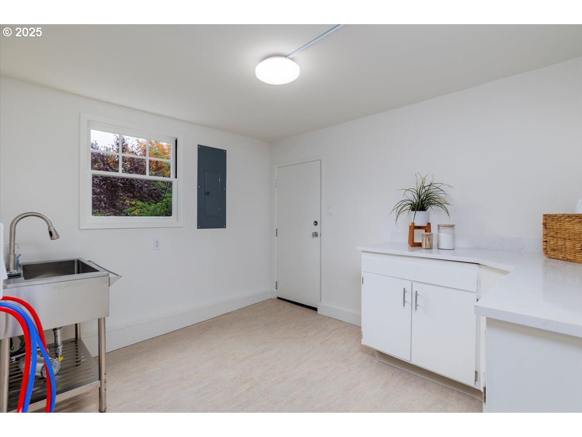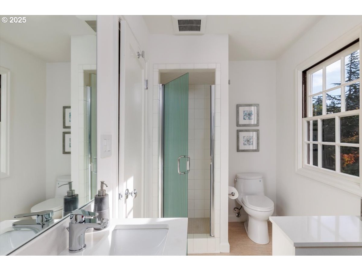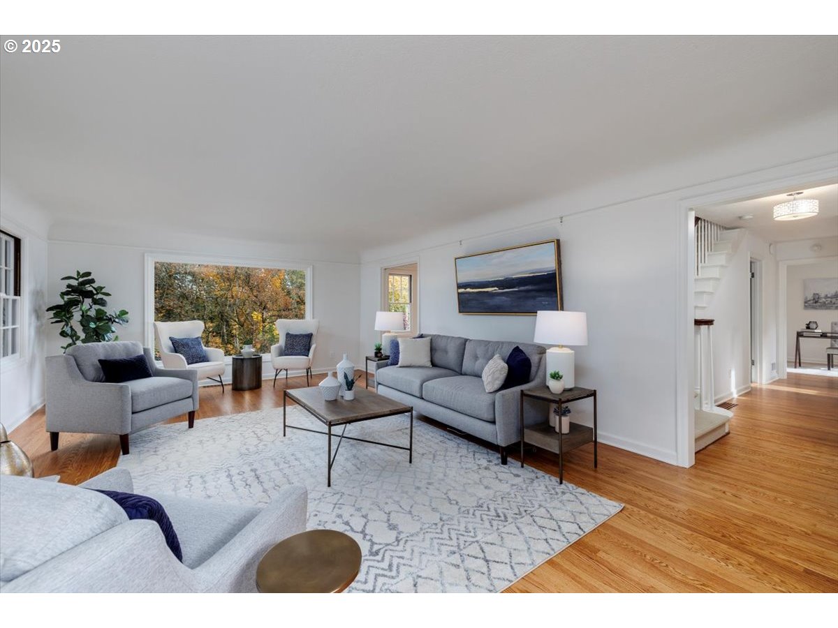 - Timeless elegance brought to life in this stunning Portland Heights home blending Mid-Century & Traditional. Newly updated, this home has been meticulously maintained & improved to enhance its original splendor! Freshly painted interior – walls, cabinets, trim, doors, shelving – top to bottom. New 96% Furnace & AC, plus mini-split HVAC on the lower level. New tankless water heater. New PEX plumbing throughout. New electrical panel with generator hook-up. Light and bright living all day long! Fabulous living room has lots of windows, a wood-burning fireplace that is the focal point of the room, and plenty of space to gather. Formal dining room with built-in corner cabinet. Gleaming, newly refinished hardwood floors throughout main & upstairs levels. New carpet on staircases & lower level. Stylish, contemporary kitchen updated to 2025! Dual-fuel range, quartz counters, under counter lighting, throwback bread drawer, pantry, plenty of storage and eat-in nook with walk out to deck to complete the space. Main level home office with built-in shelves & bright window. Relax in the generous primary bedroom suite with walk-in closet & dedicated bathroom. Two more spacious bedrooms and a full bathroom complete the upstairs. The larger bedroom has built-in bookcases and window seat, walk-in closet with vanity & sink. Spacious lower-level family room with wood-burning fireplace and access to outdoor living space. Unfinished bonus room under garage provides space for working out, wine storage or man-cave. Ample 2 car garage & new driveway. Private, terraced backyard has new bricked-concrete patio and restored decks. Easy care landscaping, mature trees & beautiful perennial flowering plants. Portland Heights is a stately neighborhood boasting vintage homes and community amenities like nearby parks, public tennis courts & trails as well as excellent schools. Ideal location offers easy access to Portland City Center, medical facilities, shopping, dining & more. Welcome Home! [Home Energy Score = 1. HES Report at https://rpt.greenbuildingregistry.com/hes/OR10242300]