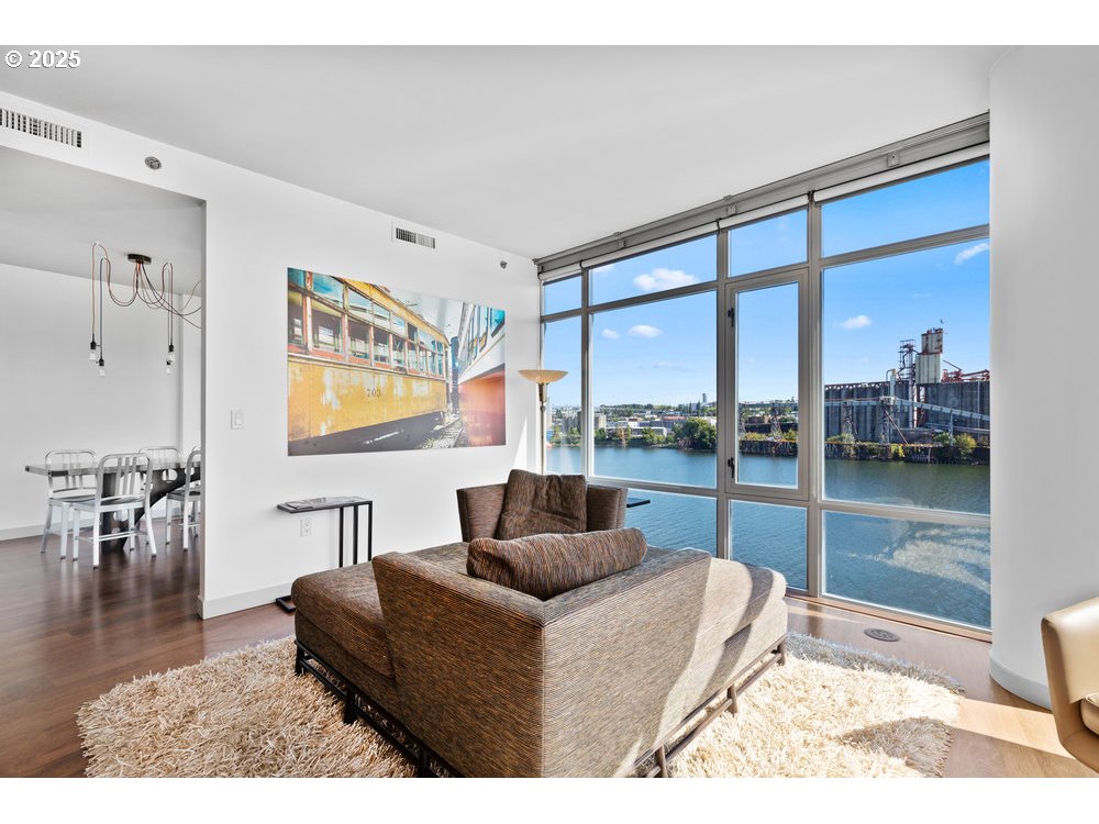 - RIVERFRONT UNOBSTRUCTED VIEWS for under $1m. This is a rare blend of luxurious design, spacious comfort, and unbeatable location—welcome to one of Portland’s most sought-after panoramic waterfront condos. Nestled directly on the Willamette River, Unit 602B boasts floor-to-ceiling windows that frame breathtaking city and river views, professionally designed interiors, and custom finishes throughout. With 2 bedrooms and 2 bathrooms, this home offers an oversized living space perfect for entertaining or unwinding in style. Thoughtfully planned with ample storage, it’s as practical as it is elegant. Enjoy the true lock-and-leave lifestyle with 24-hour concierge and security, along with amenities that rival luxury resorts: a fully equipped fitness center, relaxing sauna, and access to a well-established HOA/condo community. With a Bike Score of 92 and a Walk Score of 93, enjoy direct access to riverfront strolls, shops, restaurants, and all the charm the Pearl District has to offer. Savant System installed including Bowers & Wilkens and Krell electronics ($50k value). Financially strong HOA. 2 secure parking stalls and dedicated storage included—a rare find in downtown living.