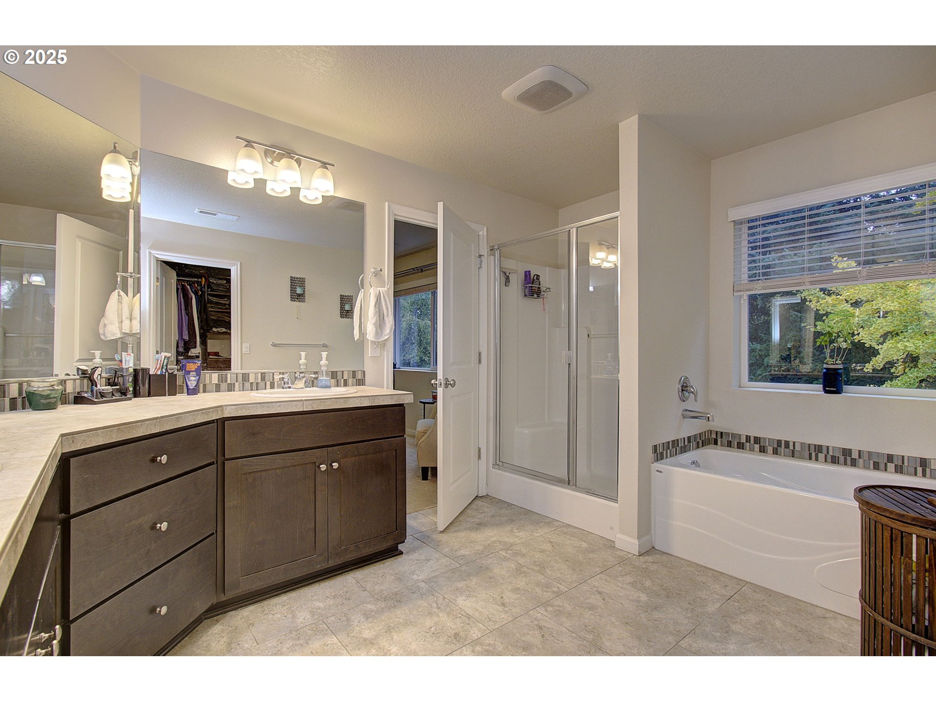 - Welcome to your own private retreat. Built in 2018, this spacious 4-bedroom home with a large bonus room offers the perfect balance of space, modern finishes, and outdoor living.Inside, the open living area features vinyl plank flooring, a cozy gas fireplace, and picture windows framing views of the beautifully landscaped backyard. The kitchen combines style and function with granite countertops, subway tile backsplash, and custom cabinetry that provides abundant storage.Upstairs, the primary suite overlooks the backyard and includes a relaxing bathroom with dual sinks, a soaking tub, walk-in shower, and a sizeable closet. Three additional bedrooms and a large bonus room offer flexible space for guests, work, or entertainment.Step outside to your backyard oasis: a fully fenced retreat with a covered patio surrounded by lush landscaping, perfect for morning coffee or evening gatherings. Solar panels add valuable energy savings, making this home as practical as it is peaceful. Located in a small, quiet community with easy access to local amenities, schools, and downtown Vancouver, this home is ideal for anyone seeking the comfort of newer construction with plenty of space inside and out to enjoy and make their own.