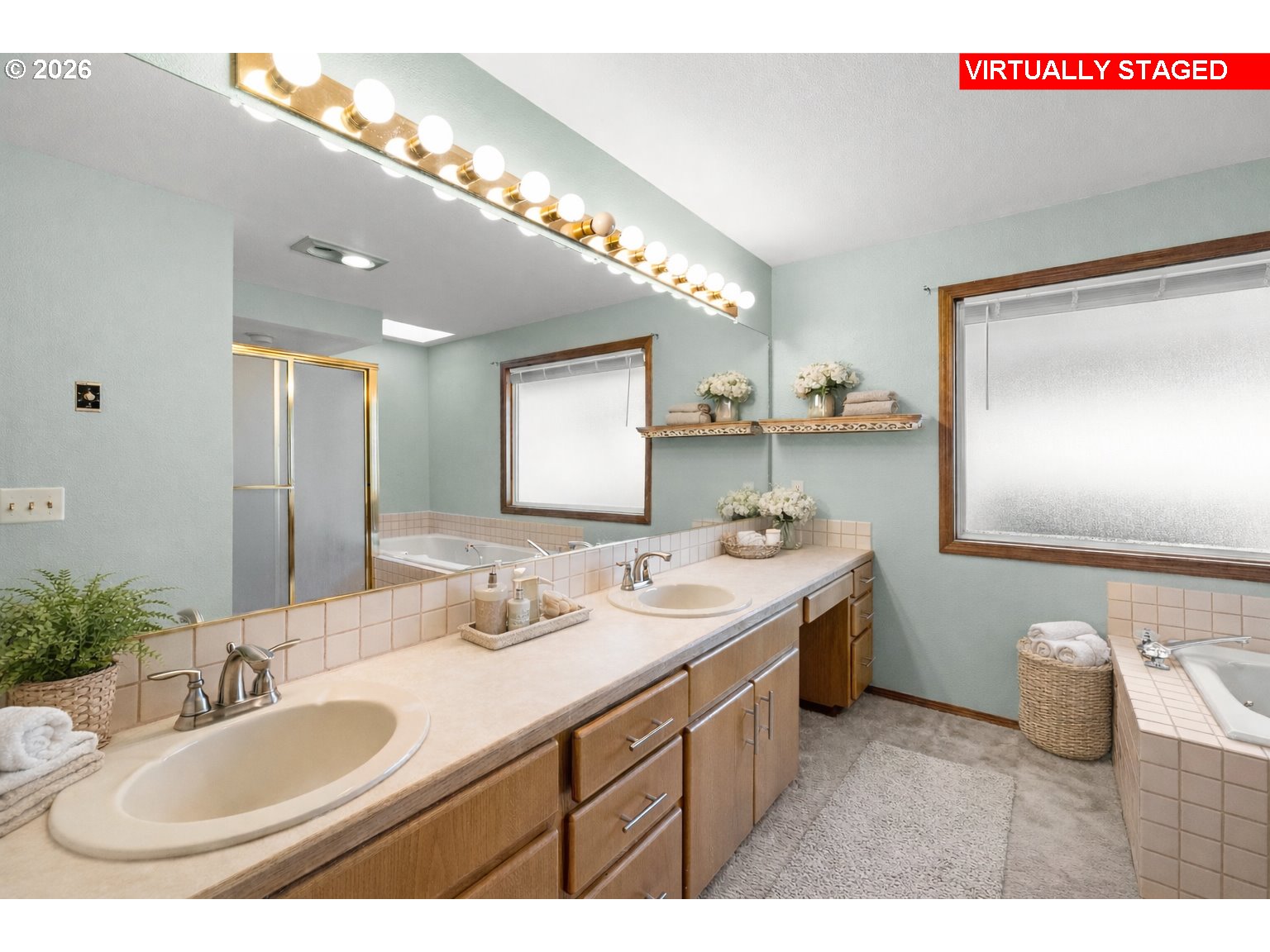 - Open House Saturday, Feb 7th from 11 am-1 pm. Welcome home to this highly desired 3 bedroom Englewood floor plan with over 2000 sq ft of one-level living in 55+ Summerplace. Gorgeous green space views from the upgraded kitchen, family room and primary bedroom suite. The kitchen includes stainless appliances, granite counters, barstool seating and a dedicated breakfast nook. The kitchen flows seamlessly into the spacious family room, where a walk-out slider leads to a covered patio with peaceful views that will make you smile. The primary suite includes double closets, en-suite bathroom, double sinks, soaking tub and a separate walk-in shower. The thoughtfully designed split-wing layout provides privacy, with the third bedroom easily serving as a guest room or home office. The living room provides entertaining options with a vaulted ceiling and gas fireplace, while the dining room showcases beautiful custom cabinetry. The hallway bath has been upgraded with a custom walk-in shower. Additional amenities include indoor laundry, solar tubes, newer A/C, furnace and roof. Custom built-in storage in the garage. With its convenient one-level layout, this home offers ease of mobility and accessibility, ideal for those seeking practicality and ample space. All this and you are part of the Summerplace community with the active clubhouse and activities. Don’t miss this opportunity! Call now to schedule an appointment. [Home Energy Score = 4. HES Report at https://rpt.greenbuildingregistry.com/hes/OR10107768]