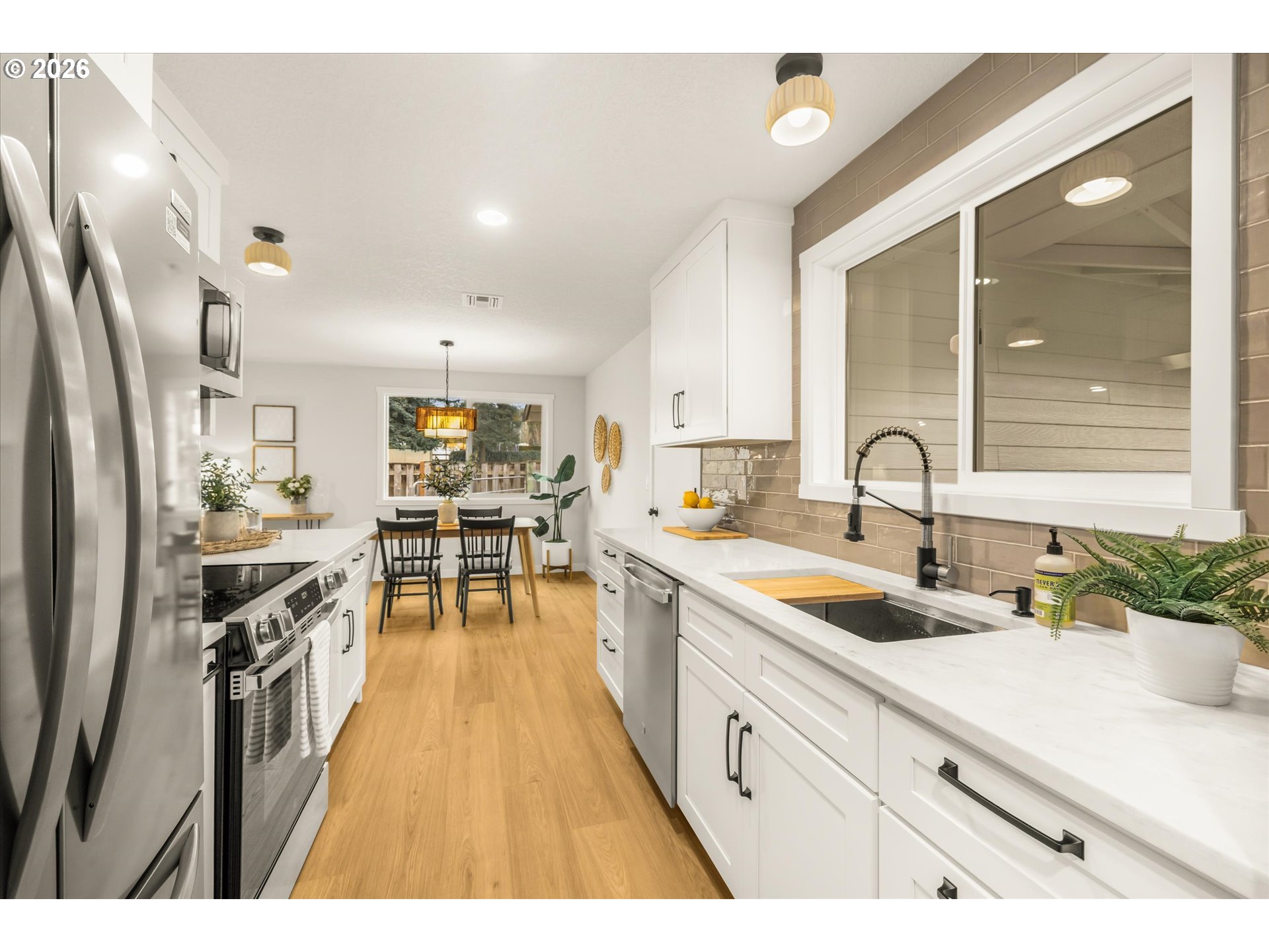 - "Welcome home to this picturesque countryside retreat in the lovely Bradley Meadows area!" This spacious property features a completely renovated move-in ready 1-level ranch home on a large 3/4+ of an acre beautiful lot, with a peaceful small creek and a charming wooden bridge, too! Exterior updates include a new concrete septic system, new roof, new siding, new stone, new gutters, new windows and doors, new landscaping and more! The interior updates feature great attention to detail and include new modern flooring throughout the great-room/living room, dining area and kitchen, and a lovely cozy fireplace is also featured in the great-room/living room, too. New modern kitchen with shaker cabinets, high-end Taj Mahal quartzite counters, modern backsplash, new stainless steel appliances, and new hardware and fixtures throughout. Stunning updated bathroom with new large vanity, quartz counters, new tiled bath with modern glass door, and a large closet. New carpet in bedrooms, updated plumbing and electrical, new heat pump with furnace and A/C, new water heater, updated fireplace/chimney, and new paint throughout. Large double garage with new garage doors and openers, and a handy tool storage/work-shop/hobby area. The backyard area features a patio, perfect for relaxing and BBQ's, while taking in the serene setting of the newly landscaped park-like yard, with a lovely view of nearby rolling meadows, too. The backyard pasture area has been recently seeded, too. Hurry to see this one!