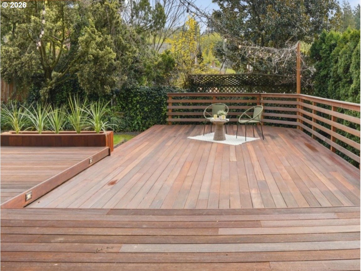 - Step into mid-century cool with a modern twist: a beautifully updated 1967 split-level filled with natural light, open gathering spaces, and effortless neighborhood charm. Perched above the street, this 5BD, 3BA home makes an impression with undeniable curb appeal, a sleek front deck, and contemporary cable railing. Huge windows flood the interior with sunlight and provide a front-row seat to the rhythm of the neighborhood—perfect for sipping morning coffee and waving to neighbors and their dogs. The main level is a cheery and open great room, connecting living, dining, and kitchen with effortless flow and inviting zones for relaxing, entertaining, and gathering. The chef’s kitchen anchors it all with a massive island and generous workspace, ready for casual breakfasts or full-on feasts. Just off the kitchen, a convenient lounge space invites the voracious reader to settle in with a book, host game nights, or linger in conversation while keeping the chef company. Downstairs, the cozy family room offers the perfect retreat for movie nights or hobbies and provides exterior access, making indoor-outdoor living effortless. Mid-century style continues in the backyard with a huge private deck adorned with string lights, mature landscaping, and a playful peekaboo upper deck, creating the perfect summer setting for entertaining or quiet evenings. All this, in the storied Bridlemile neighborhood—where tree-lined streets whisper decades of history, and the park and 10/10-rated elementary school are just steps away. Summer movie nights, community gatherings, and impromptu tennis matches bring neighbors together. If these trees could talk, they’d tell tales of generations enjoying the perfect blend of serenity and city convenience—minutes from OHSU, Beav-Hills Hwy, downtown, I-5, Hwy 217, and Sunset Hwy. A serene retreat in one of Portland’s best-kept secrets. A little retro. A lot of style. Pure mid-century cool.