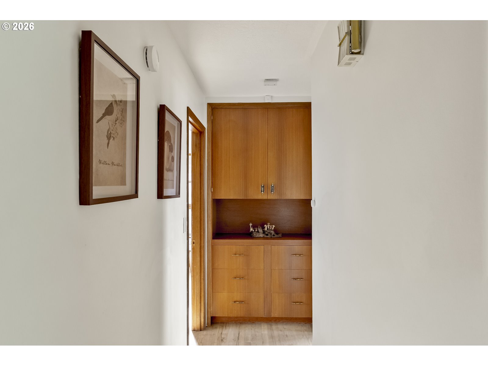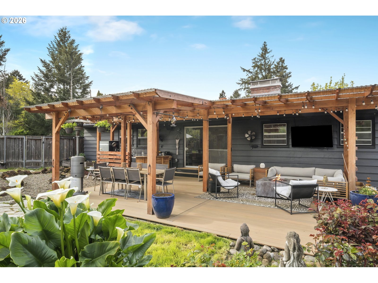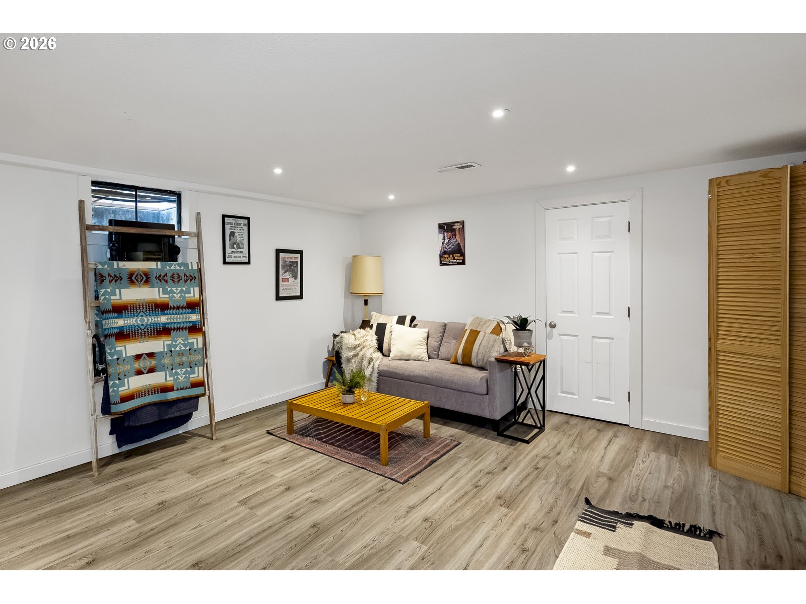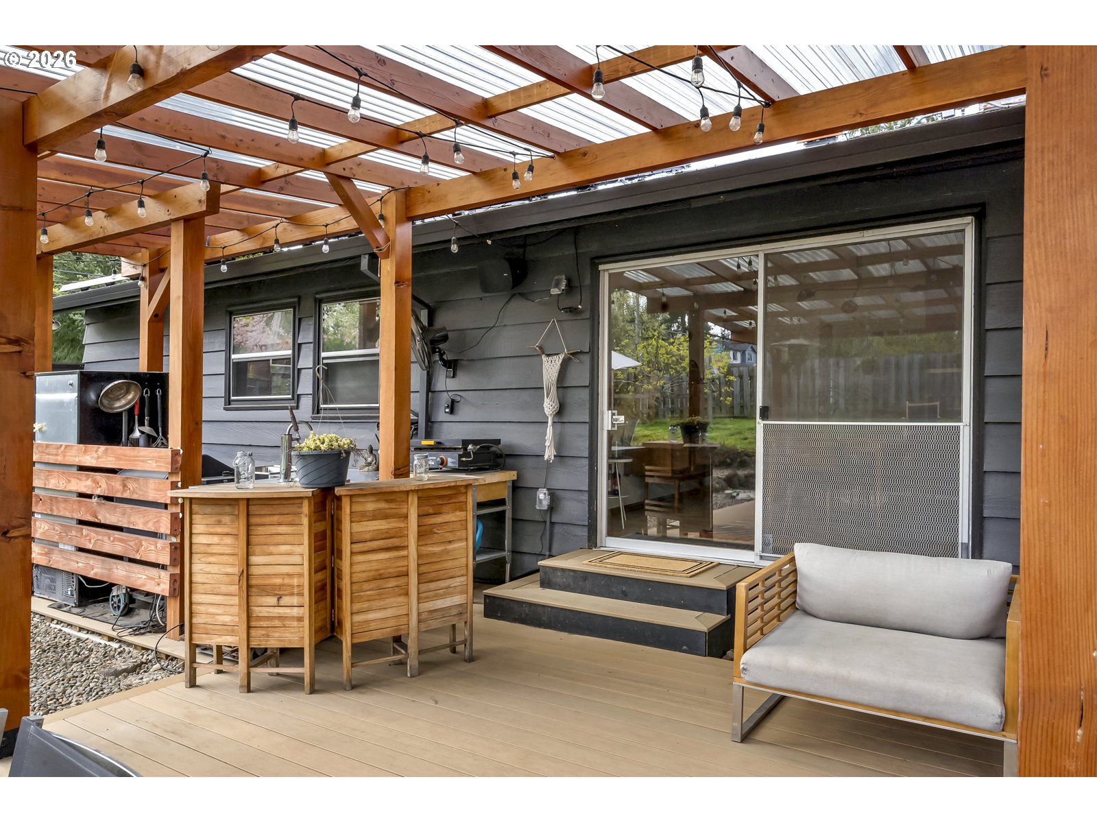 - Putting the "rose" in Parkrose Heights, this mid-century modern home has something for everyone! Multiple fireplaces and rooms flooded with light? Got it. Stunning backyard entertaining space with steam sauna? Got it. Basement ADU and a solar array? Got it. Truly too many gems to even list. Beautiful landscaping and fresh exterior paint welcomes you to the front entrance of the home. Inside, the luxuriously sized living room + fireplace greets you on your left, and the bright dining room + fireplace with sliding doors to the backyard leads ahead. The open and updated kitchen has marbled quartz counters, storage galore, an eating bar and a prep island, with no sightlines blocked from natural light. Charming built-ins are around every corner of this home, maintaining the sought-after mid-century aesthetic. A full bathroom, office, guest room, along with the en-suite primary bedroom with full bathroom rounds out the main floor. Downstairs you'll find a sprawling family room and third fireplace, with a fourth bedroom attached. A huge bonus storage/wine cellar plus separate laundry/utility room generously accommodates the basement. The fully permitted ADU has a separate and stylish entrance from the side of the house to the basement space, which includes a full living room, kitchen, bedroom+closet, full bathroom and its own washer/dryer unit. The backyard is its own oasis, with covered lounge/dining area on the trex deck; built in grill/bbq space; workshop; shed; mature garden with fruiting trees and perennial flowers; and last but not least, a full steam sauna. Yes, chef! A double garage with loads of parking and storage ensure all the toys for extracurriculars can be secured, should you choose to find entertainment elsewhere. With this home, however, the opportunities are endless!