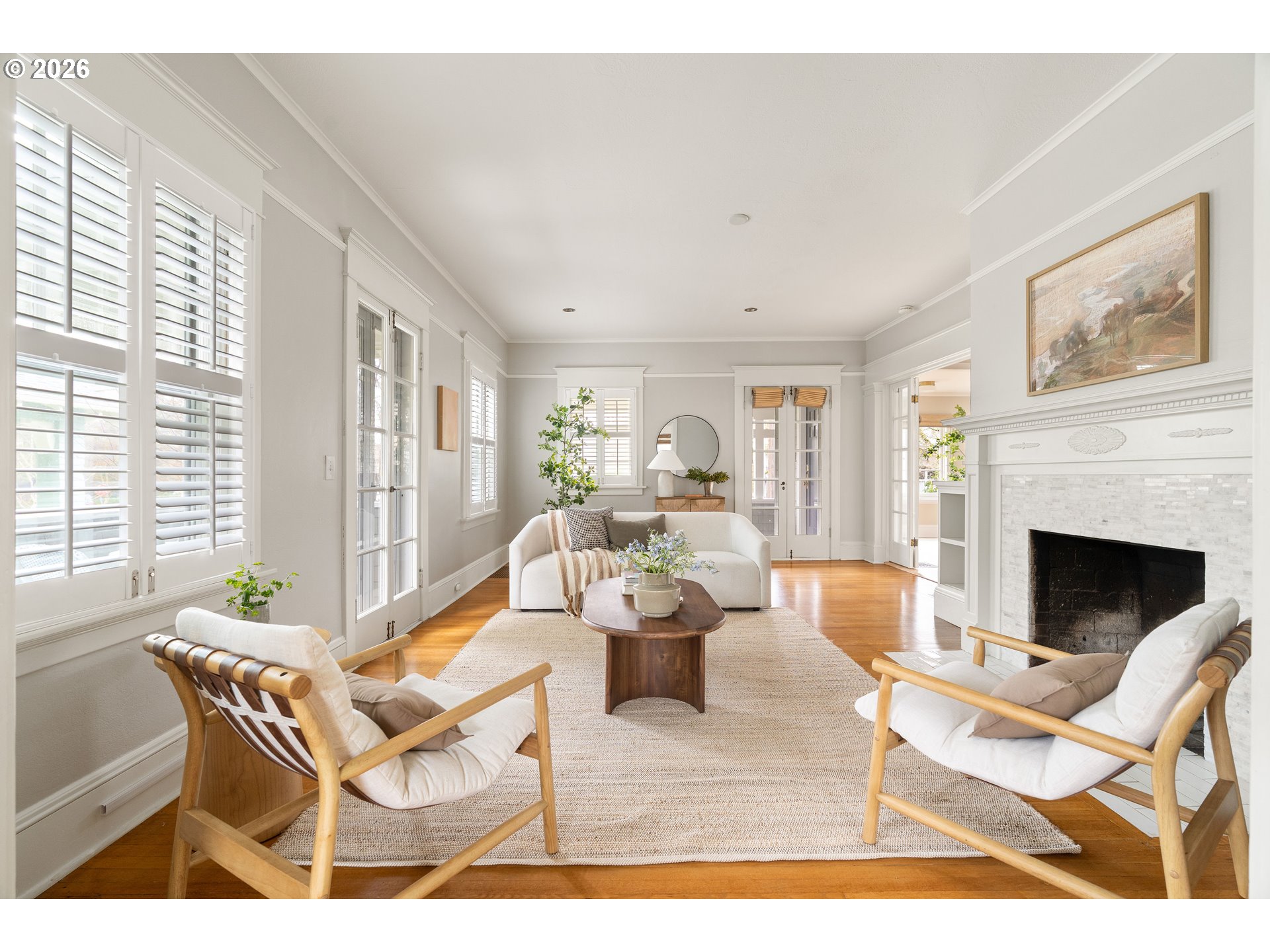 - Perched proudly on one of Irvington’s quietest streets, this elegant craftsman showcases more than a century of historic detailing designed by iconic architect Ellis F Lawrence (founder of University of Oregon School of Architecture). Wainscoting, picture molding, and rich hardwood floors showcase timeliness charm, while extensive modern-day upgrades offer ease of luxury living. The renovated kitchen features quartz countertops, Carrara marble accents and thoughtful storage. A wood-burning fireplace framed by built-ins anchors the living room while classic French doors open to the outdoors for an effortless flow.Upstairs, the primary hosts a remodeled ensuite bathroom, private balcony, and dual closet systems. Completing the second floor are two additional bedrooms and a drool-worthy designer finishes. The third floor boasts flexibility for 4th bedroom or family room, plus office space and storage.Outside, the fenced backyard provides room to run, play, and entertain with mature greenery for privacy. High-value updates offer long-term peace of mind, including a new roof with transferrable warranty (2025); basement waterproofing, drainage system, and seismic retrofitting (2021); rebuilt front porch (2021); A/C & new electrical sub-panel (2019); chimney restoration (2018); and radon mitigation system (2018). A full list of home features, updates, and enhancements is available. Located on a rare cul-de-sac, just moments from the beloved Irvington Club, vibrant dining & coffee shops, and top-rated schools including Grant High School, this home places you in the heart of one of Portland's most storied neighborhoods.