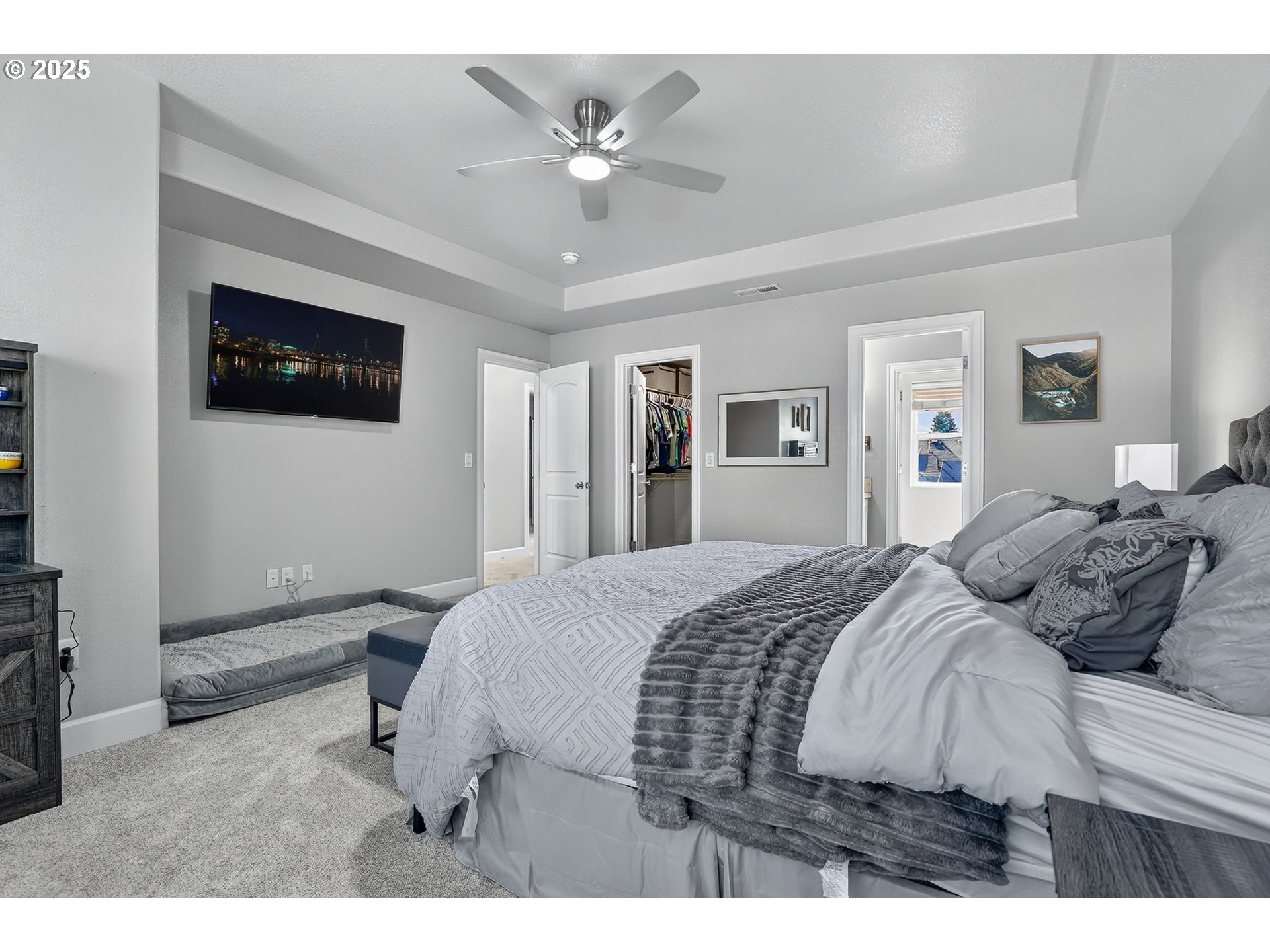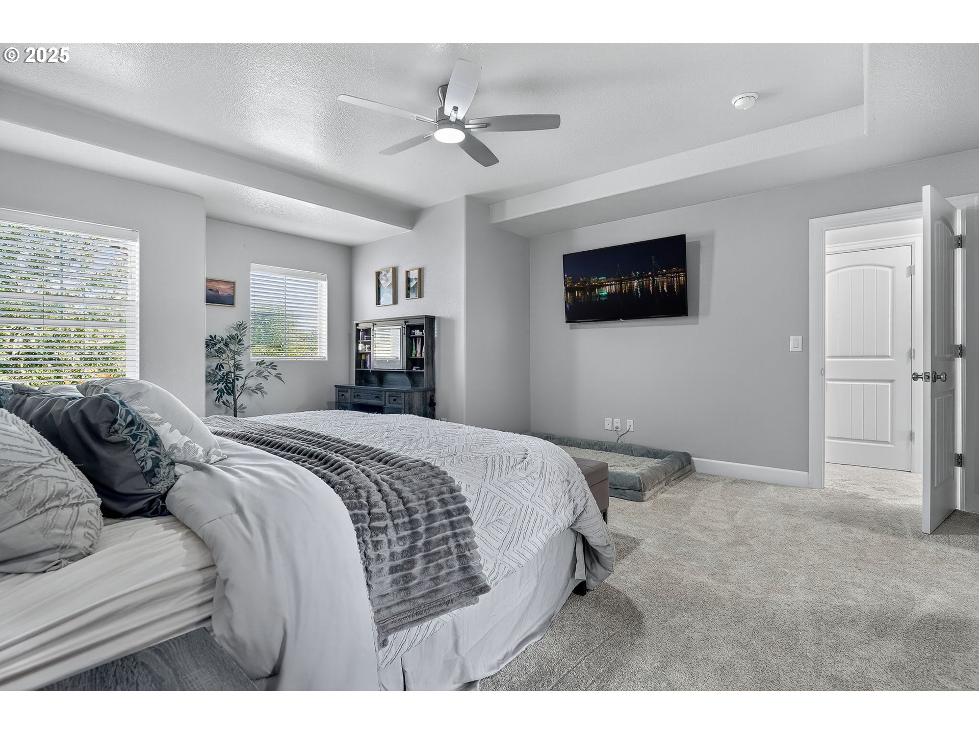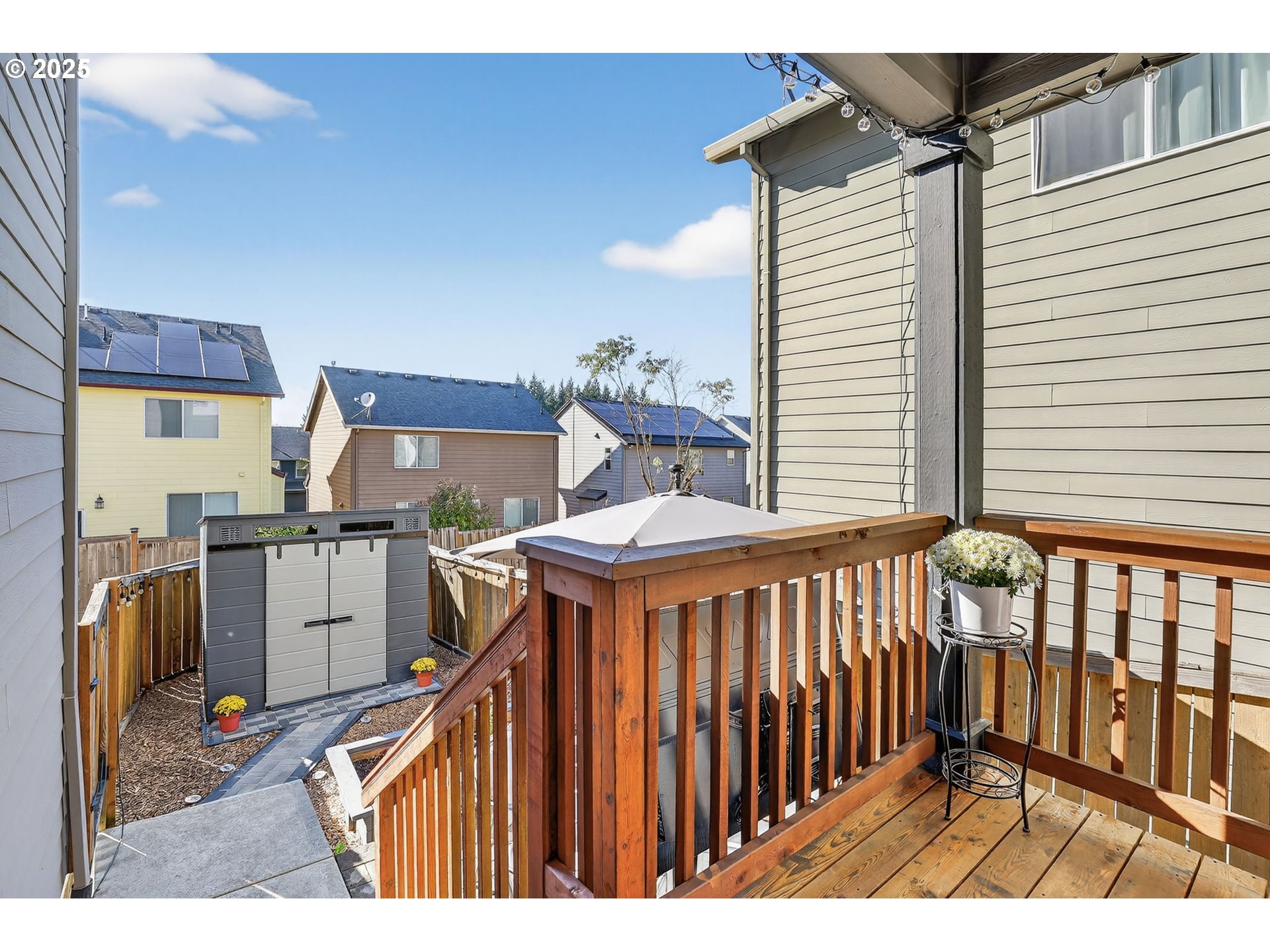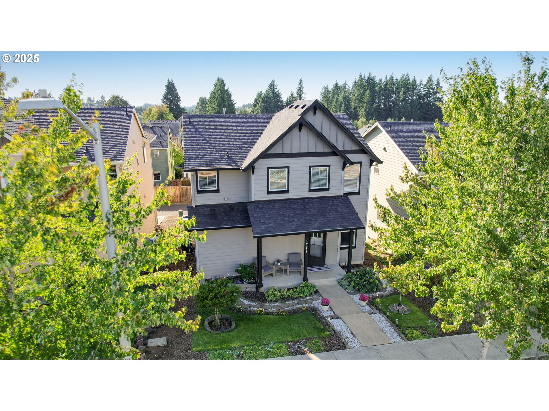 - Welcome home to this immaculately maintained traditional two-story, perfectly situated in one of Sandy’s most sought-after neighborhoods. This turn-key gem offers an inviting blend of comfort, convenience, and style. Just steps from Bornstedt Park—with its playground, splash pad, and open green spaces—you’ll enjoy all the perks of a large yard without the hassle or upkeep. Step inside to a warm and open-concept living space featuring soaring ceilings, a cozy gas fireplace, and brand-new laminate flooring throughout the main level. The spacious kitchen and dining area are a home chef’s dream, showcasing beautiful granite countertops, abundant cabinet space, as well as a central island with eat bar. All stainless-steel appliances are included—refrigerator, gas range, dishwasher, and built-in microwave, along with a pantry for extra storage. A well-appointed half bath on the main floor adds convenience. Sliding doors from the dining area open to a covered porch and backyard patio, perfect for relaxing or entertaining. The backyard also includes a handy storage shed and a thoughtfully placed garden bed for growing your favorite fruits, vegetables, or flowers. Upstairs, the primary suite impresses with a spacious layout, a large walk-in closet, an ensuite bathroom, and stunning seasonal views of Mt. Hood. Down the hall are two additional bedrooms—both generously sized and featuring their own walk-in closets, as well as a full bath and laundry area. The garage has been upgraded into a high-end home gym but can easily be converted back to a two-car garage for all your vehicles and toys. Recent upgrades include fresh interior and exterior paint, new laminate flooring downstairs, and plush carpet with new padding upstairs. 30 minutes to the mountain and 30 minutes from the city, this move-in-ready home offers modern updates, a prime location, and unbeatable charm. Call to go see it today!