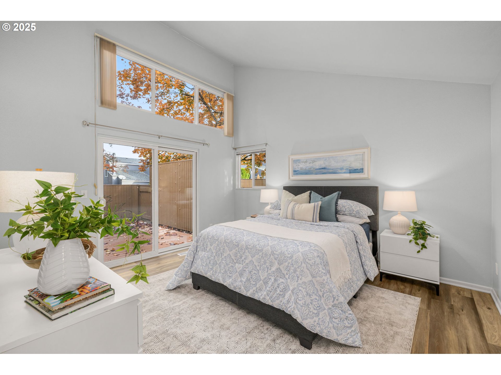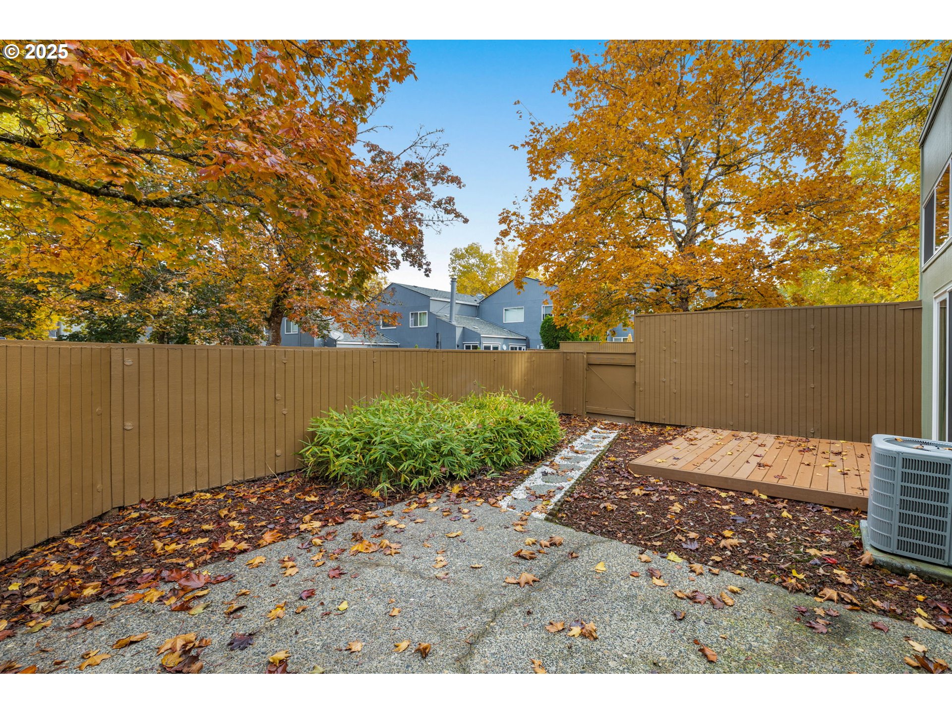 - Welcome to this beautifully updated ONE LEVEL 2-bedroom, 2-bathroom, 1337 sq ft END-UNIT condo! New Luxury Vinyl Plank throughout; updated kitchen with solid-surface counters, stainless steel appliances, gas range, and pantry. Light-filled living room/dining room with a wood-burning fireplace and sliders open to a large private patio and deck. The primary bedroom also has a vaulted ceiling, a spacious walk-in closet, an adjoining bathroom, and sliding doors to the patio and a private, fenced backyard. AC, ceiling fan, and access to green spaces and walking trails make this truly special! Located in a sought-after community set on 54 acres of lush greenery, you’ll have access to incredible amenities, including a clubhouse, pool, hot tub, saunas, tennis courts, walking paths, a pond, and abundant wildlife. Enjoy the perks of a community garden and RV/Boat storage for a small fee. The HOA covers water, sewer, and garbage, plus grounds maintenance/landscaping, making maintenance a breeze! Conveniently located just minutes from Nike, Intel, and Columbia Sportswear, and directly across the street from New Seasons Market. You’ll also find all your favorite shopping and dining destinations nearby. All appliances stay.