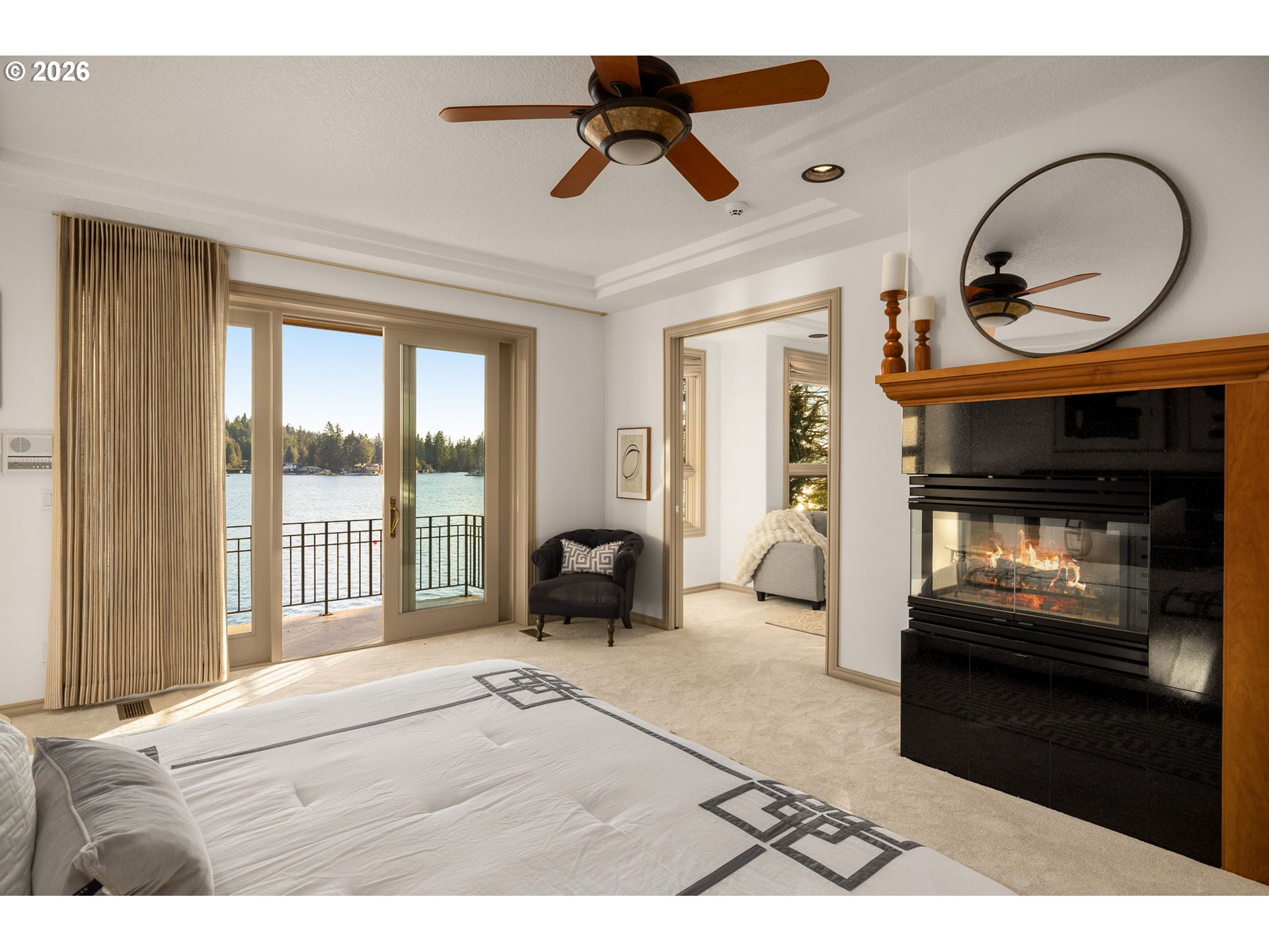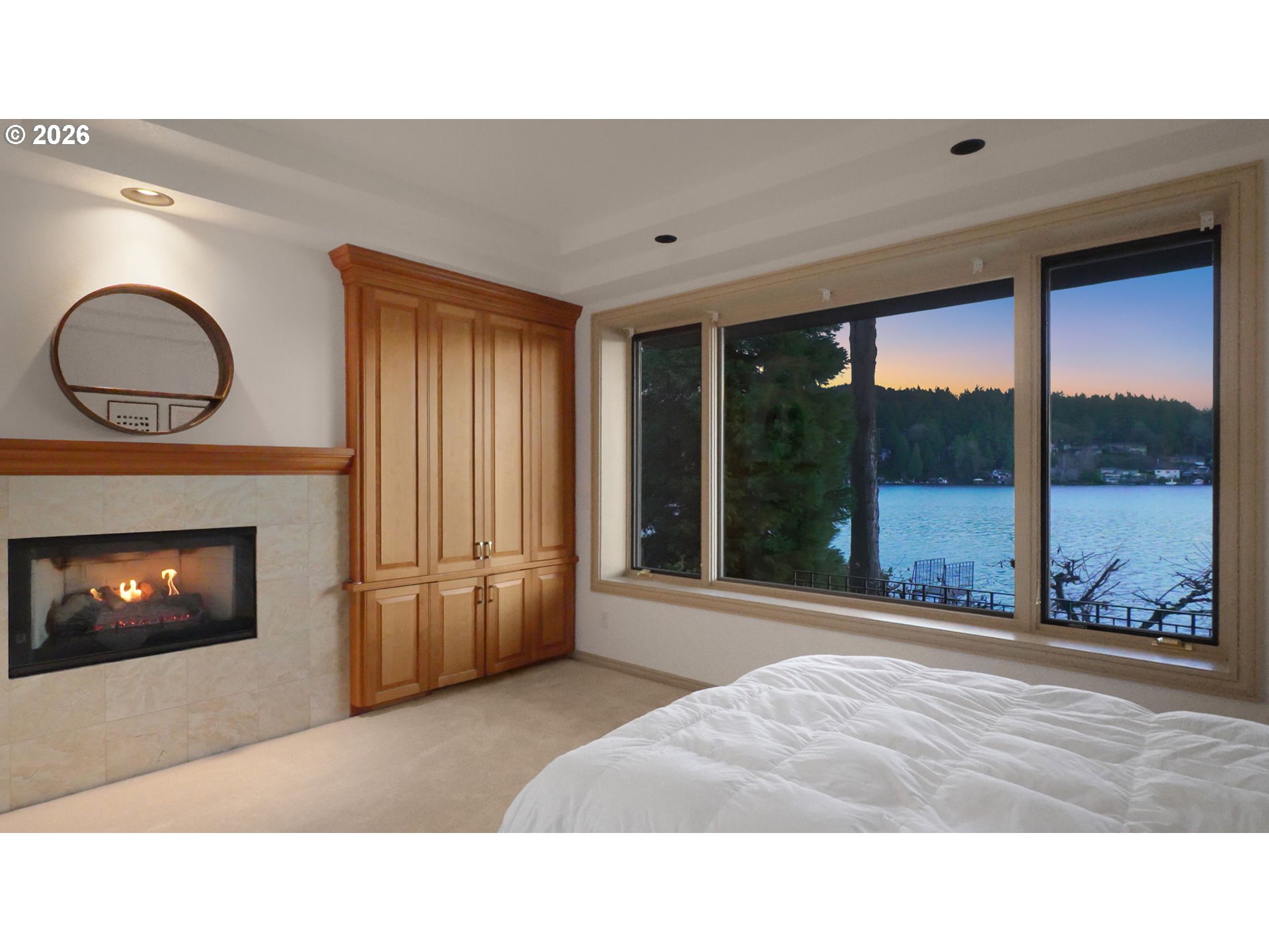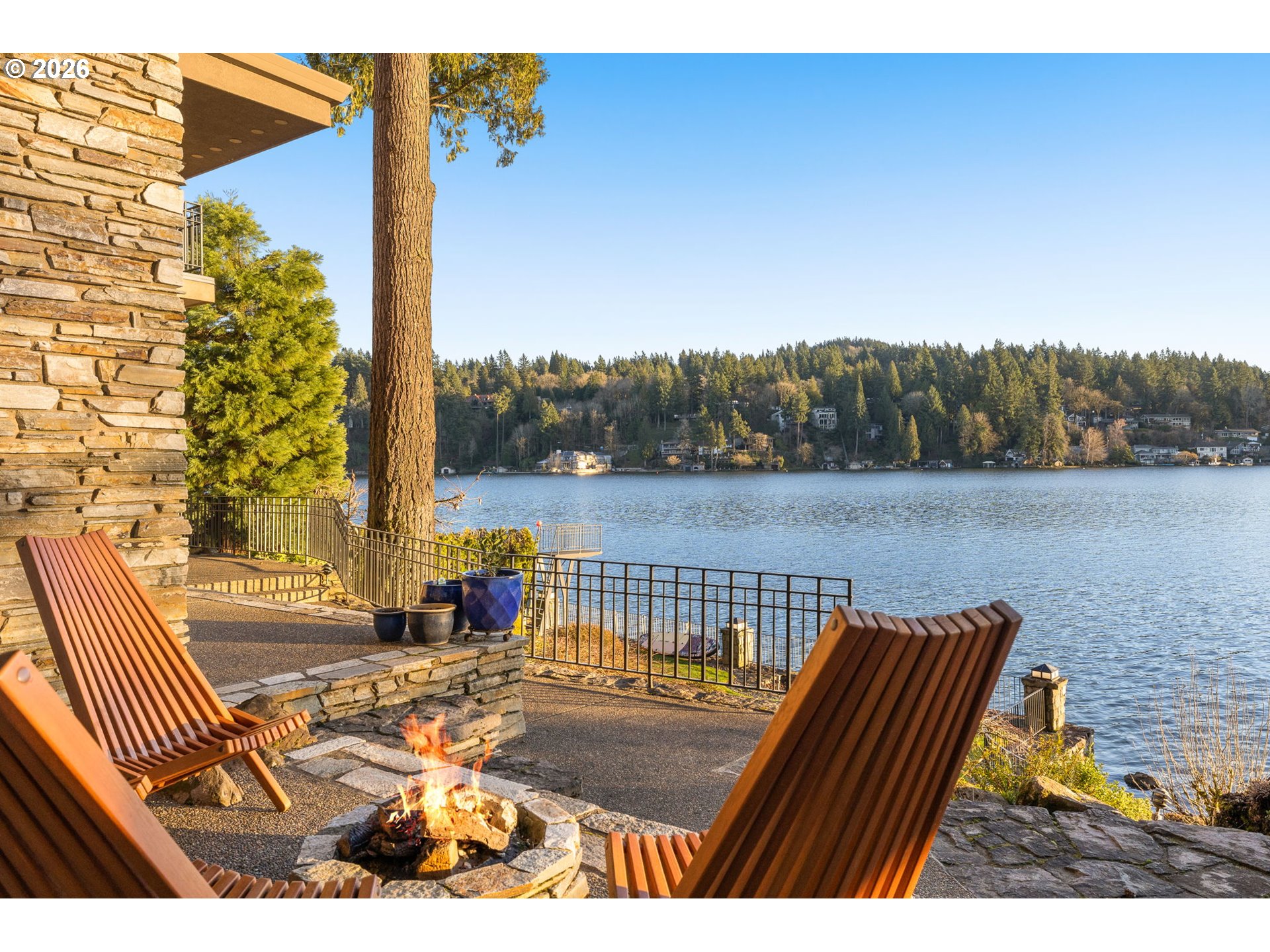 - Experience the pinnacle of Pacific Northwest luxury living in this extraordinary lakefront estate, boasting 150 feet of prime Oswego Lake frontage. Custom built with impeccable attention to design, comfort, and functionality, this oversized residence offers breathtaking panoramic lake views through three levels of floor-to-ceiling windows. A private gated bridge entry welcomes you to this secluded retreat, complete with a rare five-car garage. The gourmet island kitchen features Sub-Zero refrigeration, double Dacor ovens, andexceptional custom cabinetry, opening seamlessly to the great room with wet bar, dining area, and balcony—ideal for entertaining while overlooking the water. Formal living and dining room, with private balcony, elevate everyday living with refined elegance. The lavish primary suite is a true sanctuary, offering two private balconies, a fireplace, sitting room or office, dual walk-in closets, and a spa-inspired bath with dual vanities, dual-head walk-in shower, with additional steam shower adjacent, jetted soaking tub, and mesmerizing lake views. Sophisticated den with fireplace, wet bar, built-in desk, and balcony, plus incredible custom cabinetry throughout reflect exceptional craftsmanship. Spacious additional bedrooms including an additional bedroom suite with fireplace and custom built ins. The lower level provides outstanding flexibility for entertaining or multi-generational living, complete with a second kitchen, sauna, fitness space, and a 750-bottle climate-controlled wine cellar. Outdoor living is equally impressive, featuring lush landscaped grounds, cascading waterfall, private covered boat dock, steel high dive, and a rare natural 1930s “swimming pool” carved into the lakefront. Additional highlights include a backup generator, dumbwaiter, new carpet and fresh interior paint throughout. This remarkable property delivers unparalleled lakefront living where no detail has been overlooked.